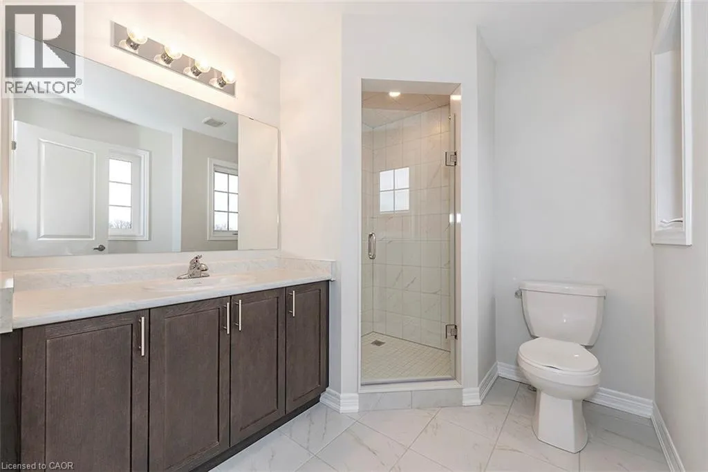 Head North on Upper Wentworth, turn left on Vickers Road, property is on the left hand side. START THE CAR!!!!! Are YOU a PERSON or perhaps A REALTOR with A BUYER CLIENT who is LOOKING FOR THE DEAL OF A LIFETIME? The WISHLIST asks FOR A NEW BUILD, FABULOUS PRICE, in a FULLY FINISHED COMMUNITY, FREEHOLD TOWNE on a PRIVATE ROAD, that just happens to be IN THE CENTRE OF EVERYTHING? Look no further, DiCENZO HOMES has the answer & is pleased to present this 1360 SqFt TOWNE in their LINDEN PARK neighbourhood. This INTERIOR TOWNE GREETS YOU with a STUCCO, STONE & BRICK GRANDE ENTRANCE with a COVERED PORCH & HIGH PEAKED ROOFLINES. Open the FRONT DOOR & find yourself walking onto HARDWOOD FLOORING leading you to a LARGE WALK-IN PANTRY (rare find in a TOWNE), continue into an OPEN CONCEPT DINING, LIVING & KITCHEN AREA. The KITCHEN is a unique design offering a âL-SHAPEDâ STYLE, with QUARTZ COUNTERTOPS that cascade into an âattachedâ MODERN QUARTZ TABLE with a WATERFALL SIDE. The KITCHEN comes with STAINLESS STEEL APPLIANCES (fridge, stove & dishwasher). Large windows will brighten the GREAT ROOM this winter & the floorplan will welcome cozy Family evenings or the perfect space to entertain. When itâs time to relax, head up the OAK STAIRS to find 3 SPACIOUS BEDROOMS. The PRIMARY BEDROOM is large enough for a KING BED, has 2 closets (one WALK-IN) & an ENSUITE with LARGE VANITY & CORNER SHOWER with FRAMELESS GLASS SHOWER DOOR. This HOME is part of our SNAP COLLECTION, FULLY FINISHED TOWNES that can be YOURS in 30, 60 or 90 DAYS! Great HAMILTON MOUNTAIN LOCATION CLOSE TO SHOPPING, TRANSIT, THE LINC, 403, REDHILL, SCHOOLS & MORE!!! At just $684,900 this SNAP HOME will not last long!!! (id:27476)