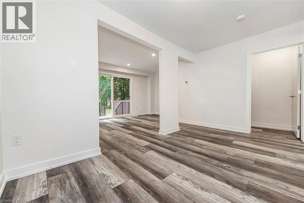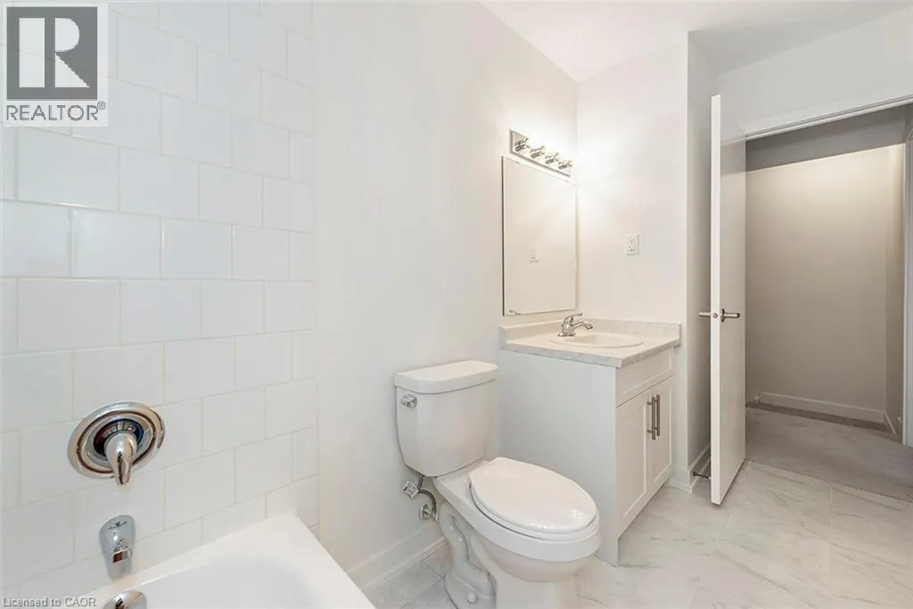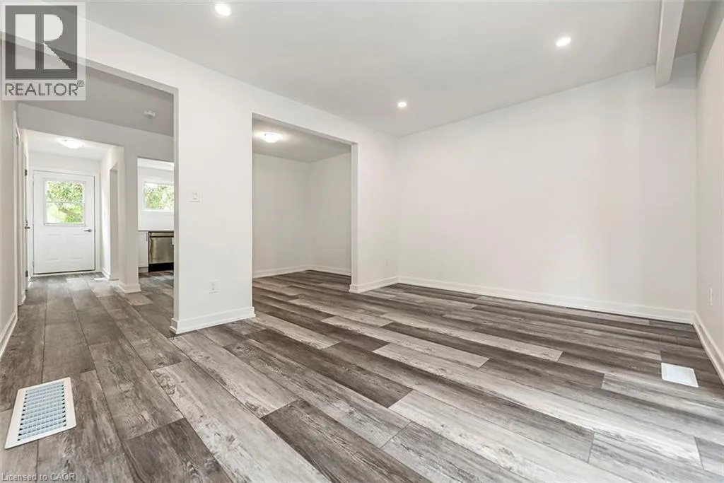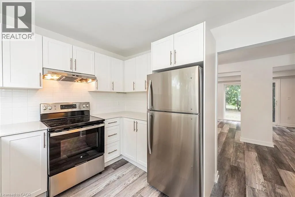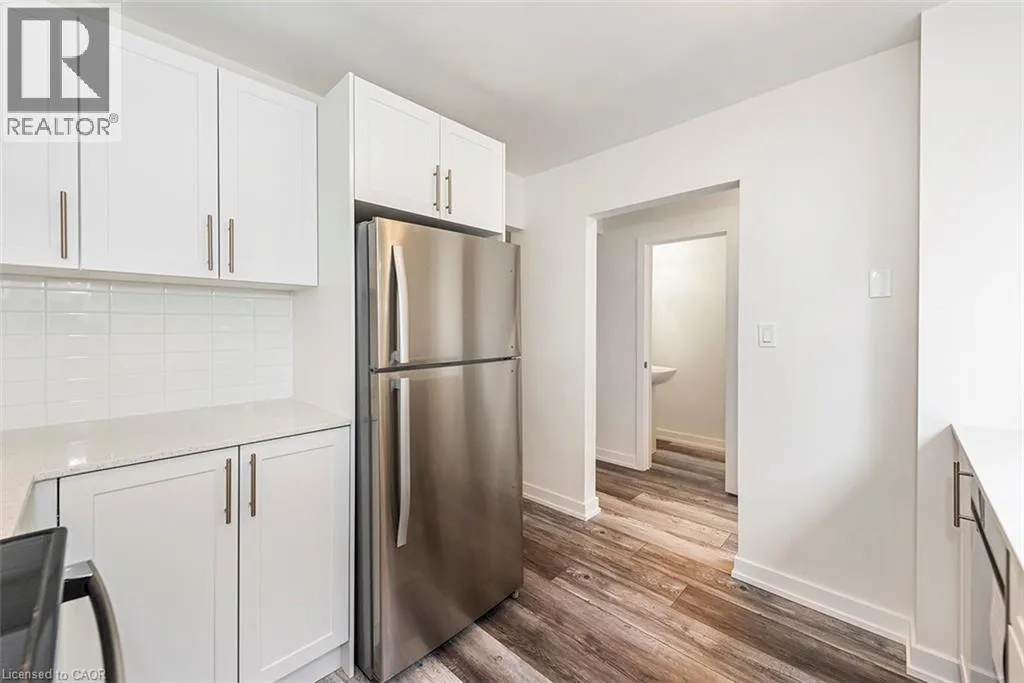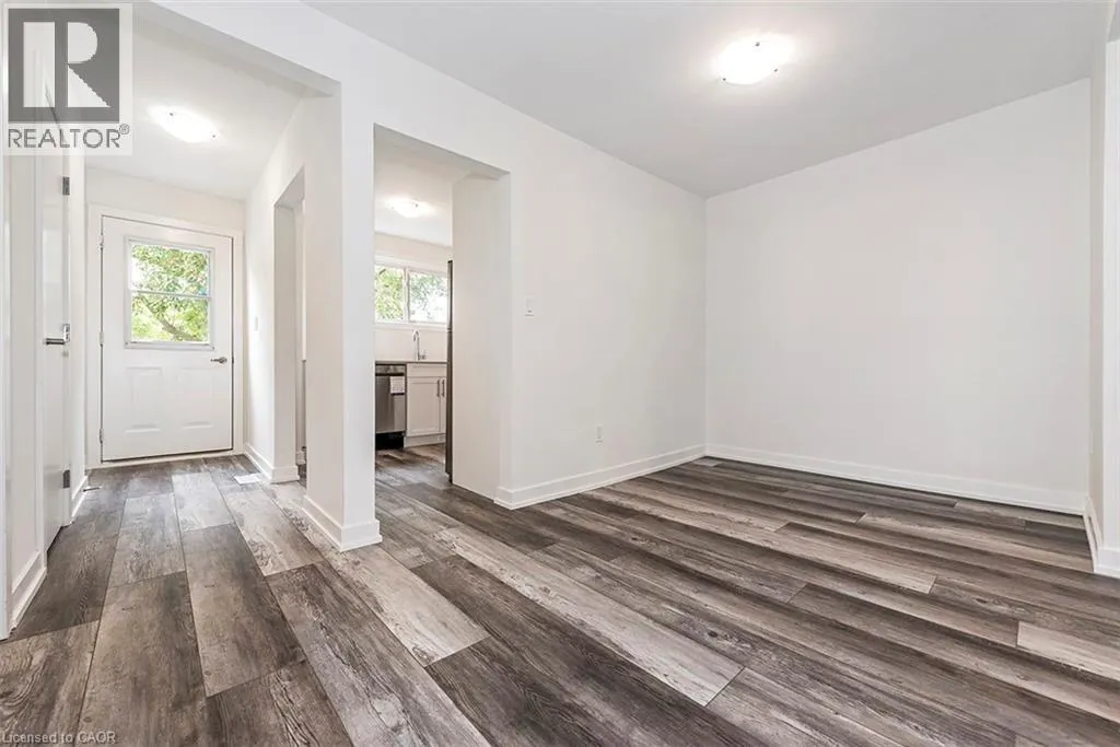 Queenston Road to Woodman Dr. N This beautifully renovated townhome is the perfect place to start your home ownership journey! Located in a family-friendly neighborhood, this gem offers a convenient lifestyle with easy access to highways, shopping, schools, and public transit. Step inside and fall in love with the brand-new eat-in kitchen, featuring stunning quartz countertops with breakfast bar and stainless steel appliances. The main floor boasts wide plank vinyl flooring throughout. The bright and inviting living room, complete with recessed pot lights, opens directly to the backyard. Upstairs, you'll find three spacious bedrooms with large closets, and a stylish 4-piece bathroom. The unfinished basement offers laundry facilities and plenty of potential for you to customize the space to suit your lifestyle-whether it's a home office, workout room, or extra living area. This townhome also comes with the convenience of one assigned surface parking spot. Don't miss out on this incredible opportunity to own a modern, low-maintenance home! ** Some listing photos are virtually staged. (id:27476)