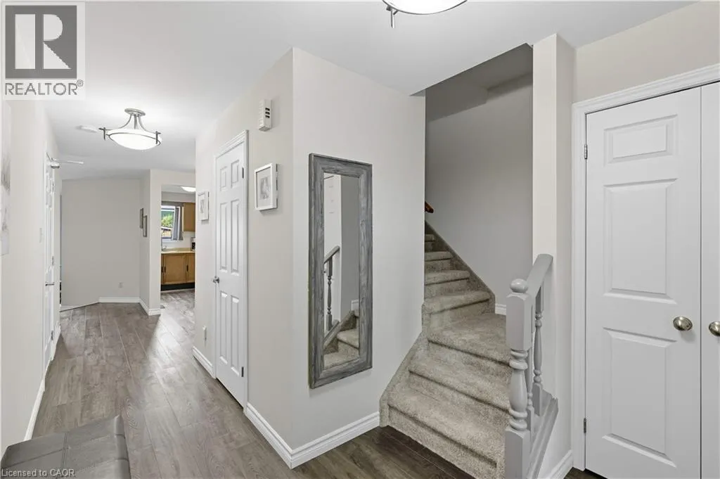GORDON DRUMMOND - DALTON GATE - MUSCOT DRIVE Welcome to 56 Muscot Dr, a thoughtfully updated 3-bedroom, 3-bathroom home in a mature, family-friendly Stoney Creek Mountain neighborhood. With new flooring throughout, a bright and functional layout, and a fully finished basement, this home offers the space and flexibility that growing families need. The backyard is an extension of your living space, featuring a charming pergola and a natural gas hookup for the BBQâperfect for hosting family and friends. Surrounded by established schools, Valley Park Recreation Centre, convenient shopping, quick highway access, and just 15 minutes to the brand new GO Train @ Centennial PKWY /QEW, this home blends comfort with everyday practicality. Please note: the property is linked to the neighbor via an underground 2x4. (id:27476)