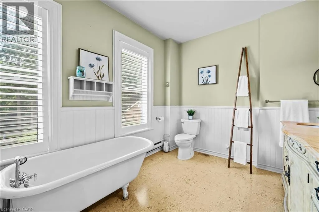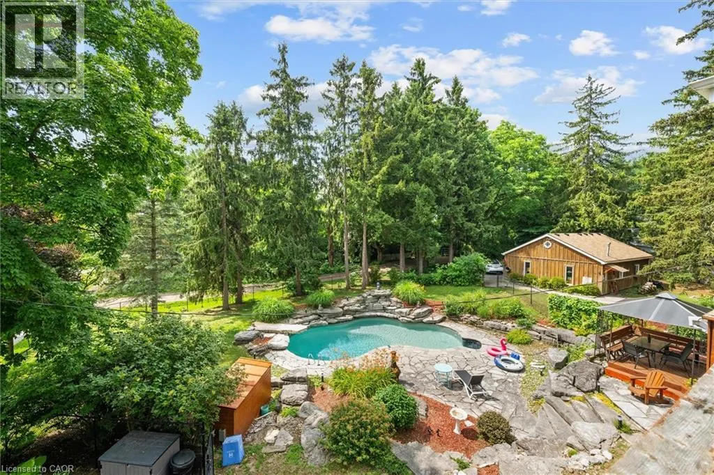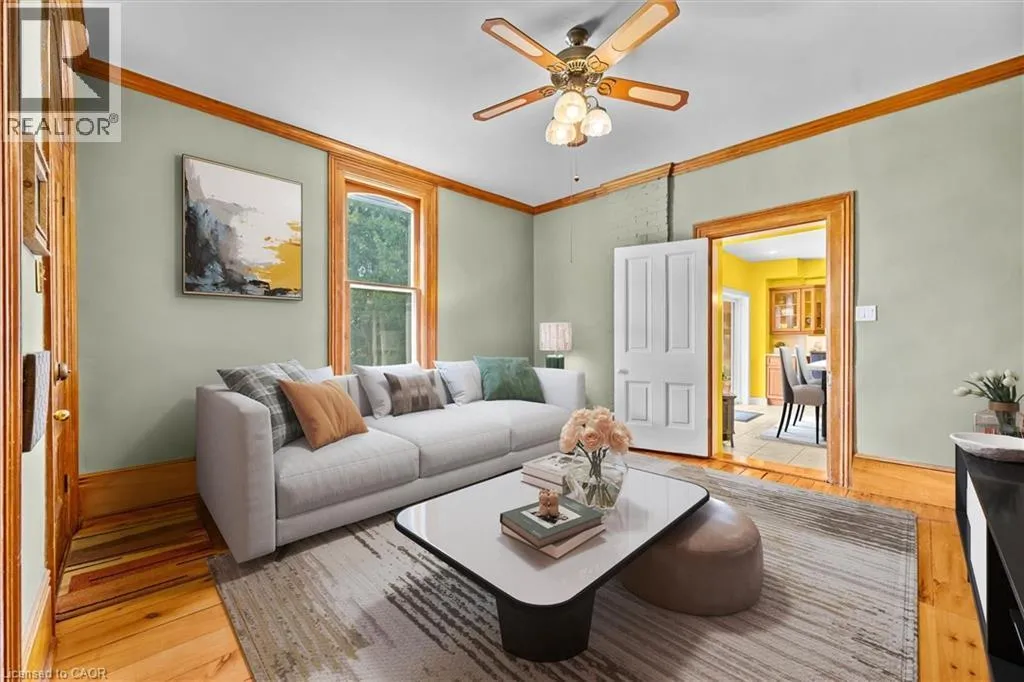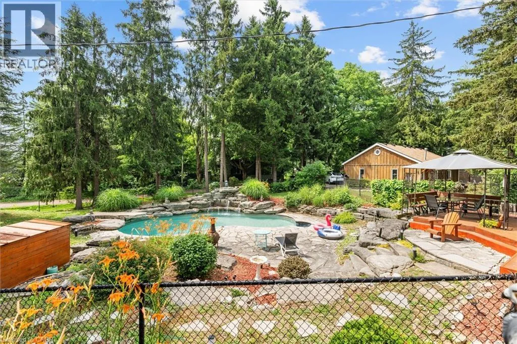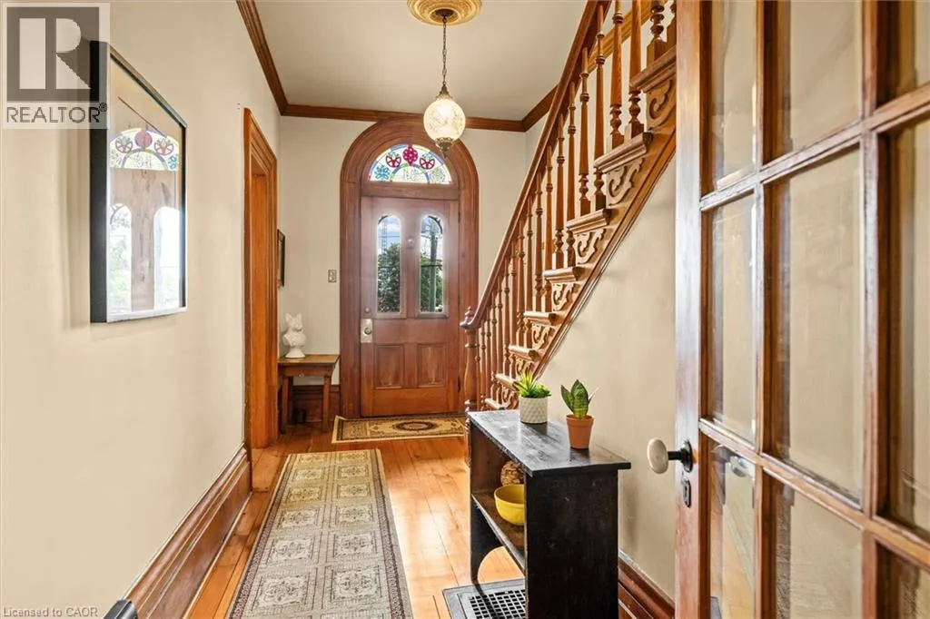 HWY 52; WEST ON JERSEYVILLE, NORTH ON FIELD Some homes catch your eye, this one captures your heart. Welcome to 34 Field Road in historic Jerseyville. A stunning 1870s Victorian where timeless character meets modern comfort featuring 10 ceilings, crown moulding, natural wood trim, and original pine plank floors. This 3-bedroom, 2-bath beauty offers over 2,600 sq ft of living space with a bright country kitchen, breakfast bar and a private backyard oasis with a saltwater pool, waterfall, flagstone patio, and wraparound decks on two levels. Inside, enjoy elegant living with a dining room separated by original bi-fold doors (the dining space currently doubles as a cozy pub ), a versatile family room, and a spacious mudroom/office with main-floor laundry. Upstairs, there are 2 sets of stairs (cool) with a primary suite that is a true retreat complete with gas fireplace, sitting area, walk-in closet, and private balcony. Bonus: heated 2-car garage/workshop and parking for 7+. Book a showing to fully appreciate this 0.5 ac property ready to welcome its next owner. (id:27476)