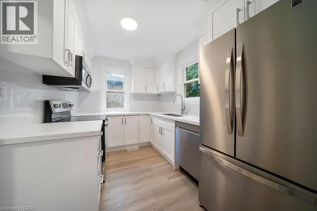 East on Brucedale from Upper Sherman. Left on East 34th Street 3-Bedroom Mountain Home for Rent Bright and updated 3-bedroom, 2-bath unit in a prime Hamilton Mountain location. Features a modern kitchen with quartz counters and stainless steel appliances. One bedroom on the main floor with full bathroom with 2 more bedrooms upstairs with a second full bath. Private backyard with deck and parking for 2 vehicles. Tenant pays own hydro and 60% of gas and water. Close to Concession Street, schools, hospital, and with quick access to the Linc, Red Hill, 403 & QEW. (id:27476)