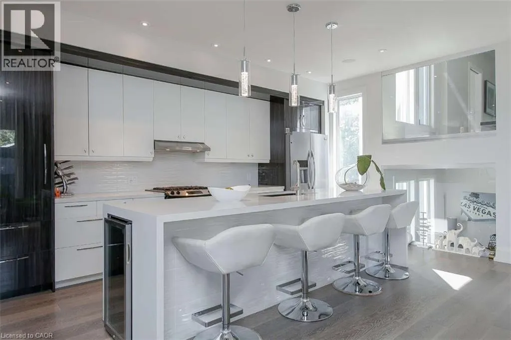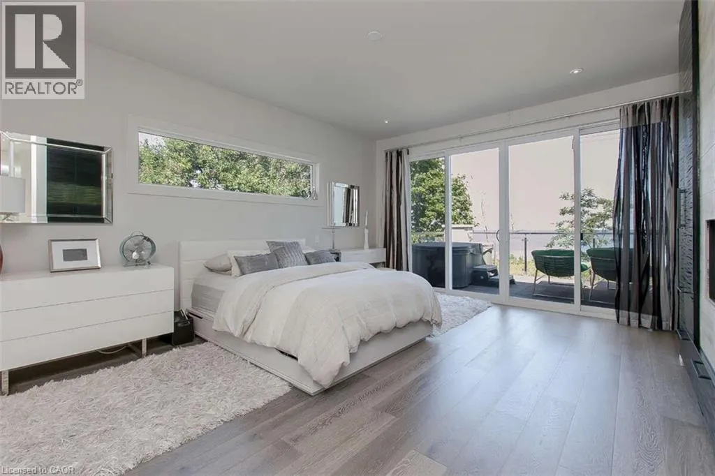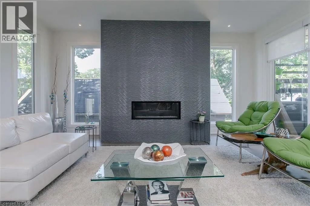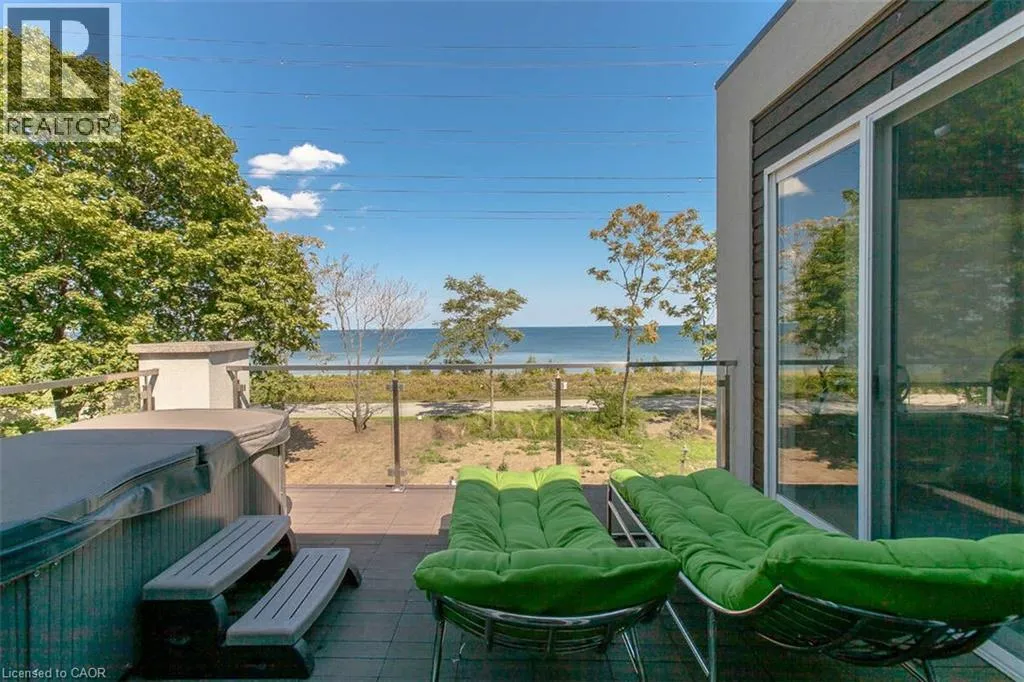 Beach Blvd & Eastport Drive For more info on this property, please click the Brochure button. Enjoy the best Hamilton Beach has to offer from this 4250+ sq ft perch, high over Lake Ontario. Panoramic lake views, pristine, minimalist modern architecture, and easy access to Niagara, Toronto & GTA. Designed for the builders' family, this home manifests the principles for which he is well known: responsiveness to the site, rigorous scale and proportions, celebration of materials and attention to detail in a cohesive living work of art. The main living area boasts a statement fireplace surrounded by European porcelain tile that mimic the texture of the lake. A private covered lake-front deck with a custom concrete gas fire pit and counter tops, custom cabinets and built in Napoleon BBQ, perfect for entertaining. A penthouse suite w/private sun deck, hot tub and spa ensuite. A floating glass and stainless steel central staircase, 7 wide-plank bleached pewter custom oak floors, Misty Cararra quartz countertops, European faucets, and a self contained private one-bedroom apartment w/11' ceilings, fireplace, kitchen, laundry and polished concrete floors that open to a private patio. This energy-efficient, chic, smart-home is fully loaded with the latest tech; Hard-wired, CAT6, a POE-4K sophisticated security system, internet and cable enhancement with CAT5/6 and RG6 in every room. In-ceiling surround sound throughout with Bluetooth links for everyone's playlists. Only the highest quality finishes were used in this architecturally astonishing custom home. Seeing is believing! Vendor financing possible. (id:27476)