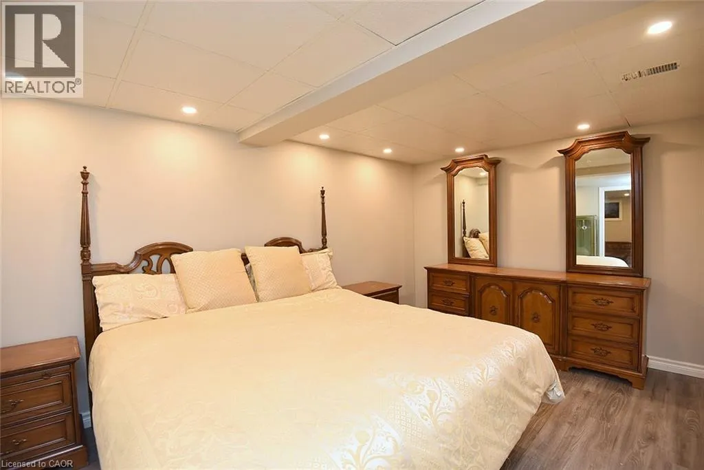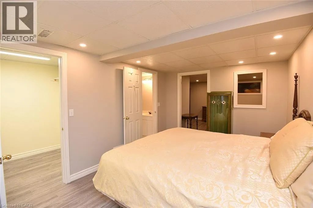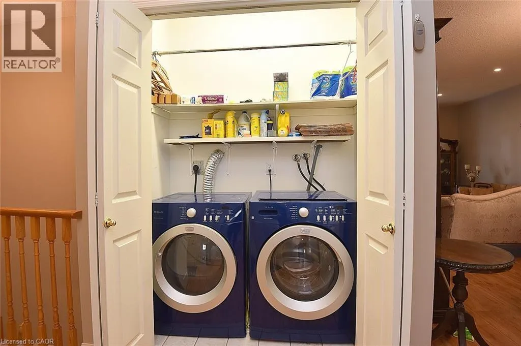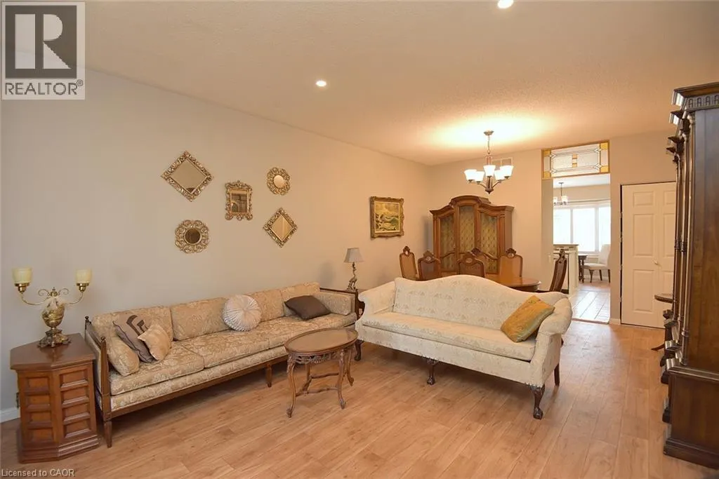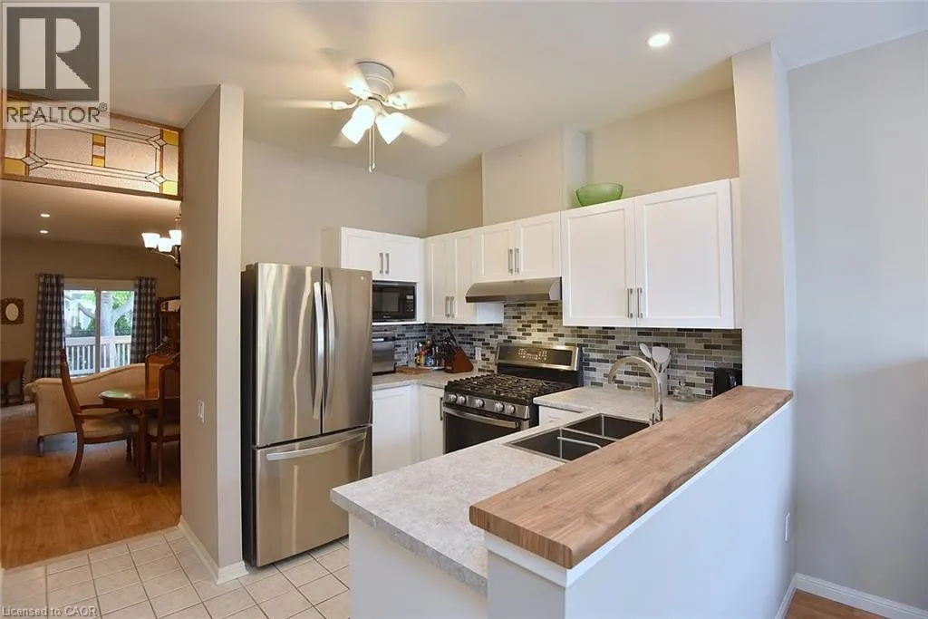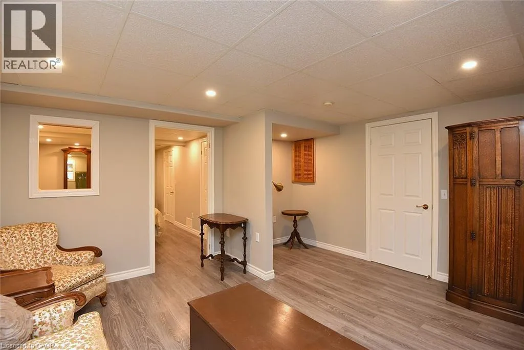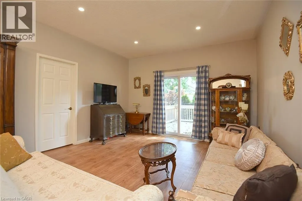 Glancaster Road, east on Twenty Rd. and left onto Silverbirch Blvd. Turn right and follow road to the Mews. Visitor parking is available. Enjoy carefree living at the Villages of Glancaster. This bungalow style townhome features an open concept layout with 1000 sq. ft. of living space complete with 9 foot ceilings. The primary bedroom features a large walk-in closet and 3 pc. ensuite bathroom. Additionally there is a fully finished basement level. The basement includes: family room (no window), second bedroom with walk- in closet (no window), 4 piece bath and storage room. Recent Improvements include: fresh paint throughout, kitchen cabinets refaced, double pantry added, double sink with faucet, kitchen laminate countertop, fridge and dishwasher, bay window and California shutters in kitchen dinette, custom front & storm doors, garage door, sliding door in living room leading to the new back deck with replaced fencing, extensive pot lights on both levels. This active community offers an onsite Country Club with saltwater pool, gym, exercise classes, organized social activities, craft club, 2 outdoor tennis courts, library, billiards, pickle ball, card games and much more. The monthly condo fee includes: lawn care, snow removal from driveways and front walkway, water & sewer, high-speed internet, cable TV, reserve fund contribution, and the use of the Country Club. RSA. (id:27476)