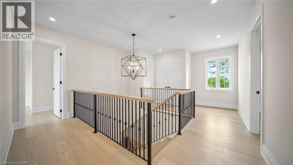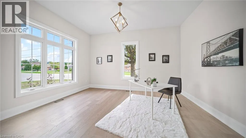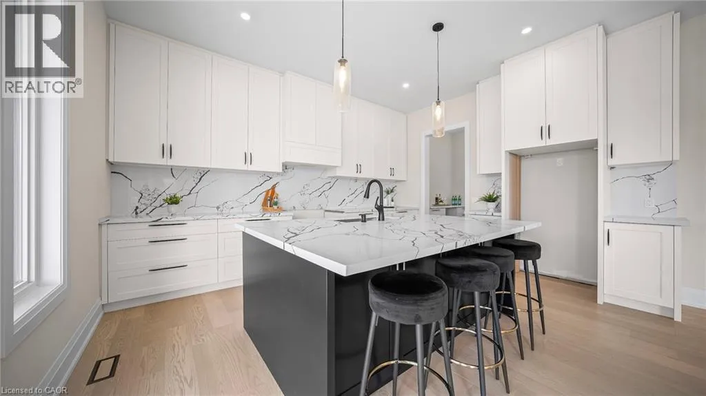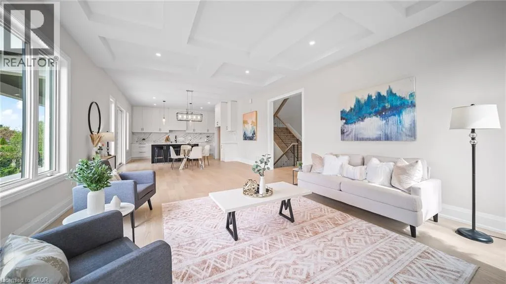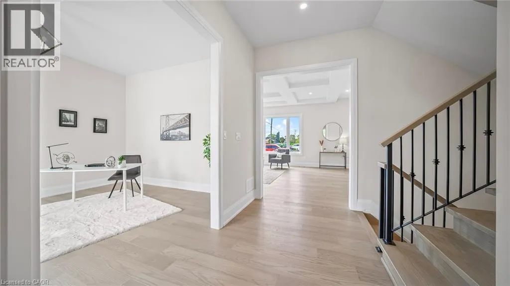Winona Rd and Barton Exquisite, stunning and exceptional custom-built 1 West Avenue in Hamilton with 4 bedrooms and 3 full baths and 2 powder rooms where contemporary design seamlessly blends with everyday comfort. Boasting over 3,000 sq. ft. of above-grade living space and an additional 1,500 sq. ft. of finished lower level, this home is thoughtfully designed for both family living and entertaining with ease. The gourmet kitchen is a true centerpiece, complete with custom cabinetry, organized drawer systems, and a spacious walk-in pantry. The expansive living area, highlighted by a coffered ceiling, modern electric fireplace, and floor-to-ceiling windows, provides an inviting setting for gatherings and relaxed evenings alike. A main-floor office with 8-ft doors offers a refined space for work or study. Sophistication continues throughout with 10-ft ceilings on the main level and 9-ft ceilings upstairs, enhancing the open, airy ambiance. The finished basement adds versatile living space, featuring a 2-piece bath and generous 9-ft ceilings. Oak staircases with wrought-iron spindles lead to the upper level, where the serene primary suite offers a walk-in closet and spa-like 5-piece ensuite. A secondary bedroom enjoys a private 3-piece ensuite, while two additional bedrooms share a beautifully appointed 5-piece bathroom. Additional highlights include upgraded lighting, rough-in central vacuum, and the convenience of main-floor laundry, elevating everyday functionality. Situated on a generous lot in a highly sought-after neighborhood, this detached 2-storey home is minutes from the QEW, shopping, future GO station, and top-rated schools. A perfect blend of luxury, practicality, and thoughtful design awaits. **No appliances included.* (id:27476)