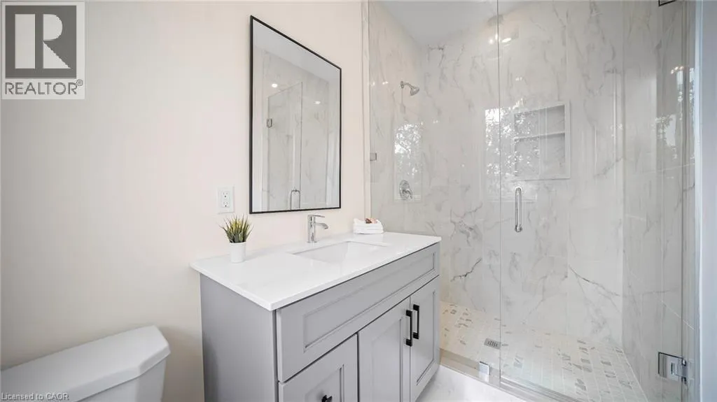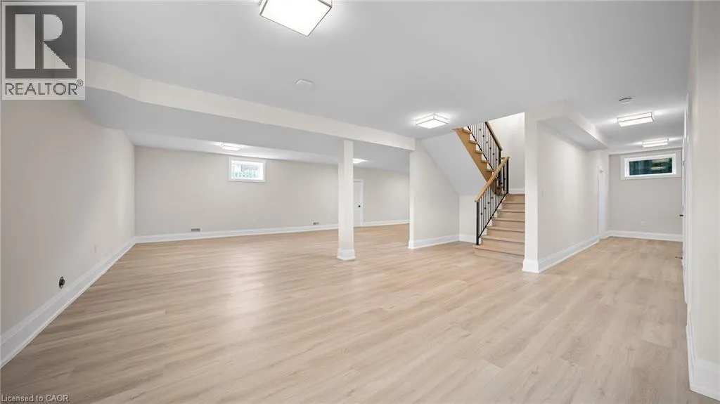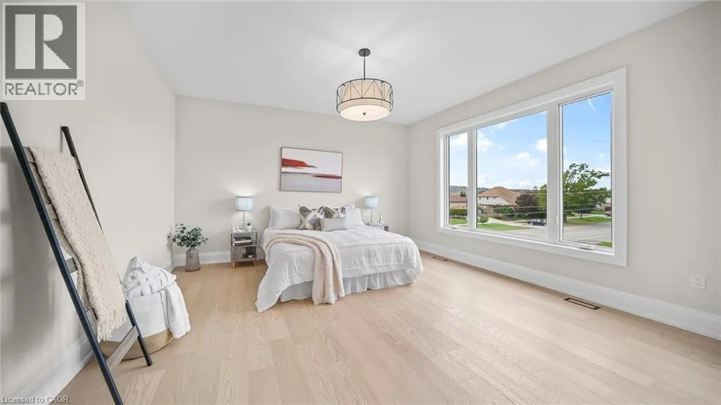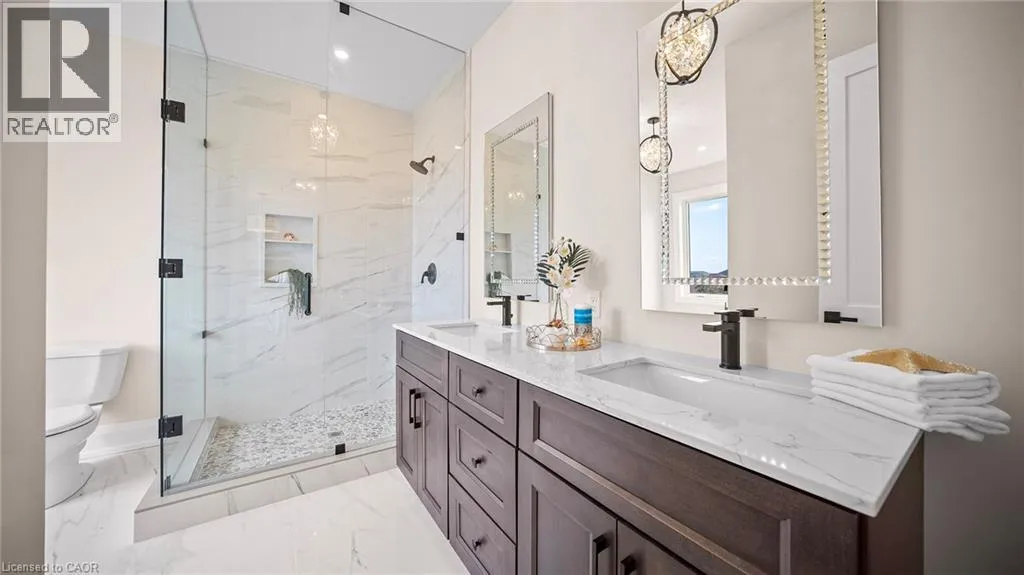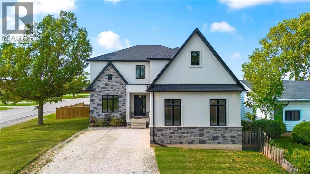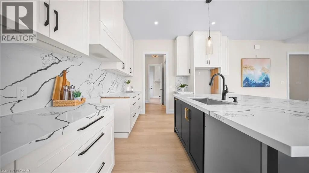 Winona Rd and Barton Exquisite, stunning and exceptional custom-built 1 West Avenue in Hamilton with 4 bedrooms and 3 full baths and 2 powder rooms where contemporary design seamlessly blends with everyday comfort. Boasting over 3,000 sq. ft. of above-grade living space and an additional 1,500 sq. ft. of finished lower level, this home is thoughtfully designed for both family living and entertaining with ease. The gourmet kitchen is a true centerpiece, complete with custom cabinetry, organized drawer systems, and a spacious walk-in pantry. The expansive living area, highlighted by a coffered ceiling, modern electric fireplace, and floor-to-ceiling windows, provides an inviting setting for gatherings and relaxed evenings alike. A main-floor office with 8-ft doors offers a refined space for work or study. Sophistication continues throughout with 10-ft ceilings on the main level and 9-ft ceilings upstairs, enhancing the open, airy ambiance. The finished basement adds versatile living space, featuring a 2-piece bath and generous 9-ft ceilings. Oak staircases with wrought-iron spindles lead to the upper level, where the serene primary suite offers a walk-in closet and spa-like 5-piece ensuite. A secondary bedroom enjoys a private 3-piece ensuite, while two additional bedrooms share a beautifully appointed 5-piece bathroom. Additional highlights include upgraded lighting, rough-in central vacuum, and the convenience of main-floor laundry, elevating everyday functionality. Situated on a generous lot in a highly sought-after neighborhood, this detached 2-storey home is minutes from the QEW, shopping, future GO station, and top-rated schools. A perfect blend of luxury, practicality, and thoughtful design awaits. **No appliances included.* (id:27476)