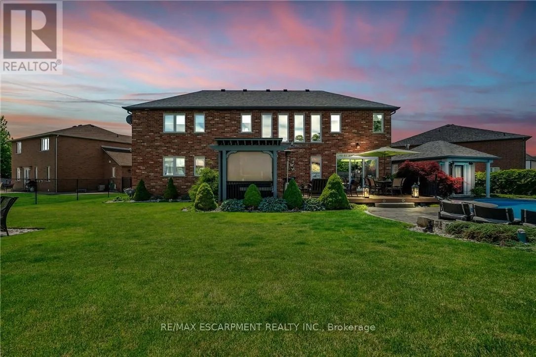 Cross Streets: Provident Way. ** Directions: Homestead Dr to Provident Way to Penfold Crt. Custom-built home with over 5000 sqft of finished living space, meticulously maintained by original owners. It offers 2 primary bedrooms, as well as a full in law suite, ideal for a multi generational family. Situated on an oversized pie shaped lot, 10 min to Upper James shopping. This stunning property boasts a wide stamped concrete drive w/ parking for 4 vehicles + oversized double car garage, 11 ft in height, w/ 9 foot high garage doors, perfect to accommodate a car lift. Main floor features a dream kitchen with custom cabinetry, quartz countertops, extra large sink & eating area with oversized patio door leading to the backyard oasis. Main floor primary bed w/ walk in closet & 6pc ensuite. Bright & spacious 2 storey family rm w/ natural gas fireplace, separate living & dining room, bed/office, 2 pc bath & main floor laundry off of the garage. The upper level offers a family room, 3 bedrooms, including 2 that offer ensuites & walk in closets. Fully finished basement has a full kitchen with dining area, rec room, bed w/ ensuite privilege to 3pc bath, office, workshop, 2nd laundry rm, + hot tub & hobby room. Gorgeous backyard featuring inground saltwater pool with new heater, stamped concrete surround, Trex decking on patio & in the covered outdoor kitchen area, outdoor speakers & oversized custom shed. 4 season sunroom is the perfect place to relax. Recent updates include pool heater 2025, roof shingles 2020, shed & sun rm shingles 2022, furnace & A/C 2023.This home must be seen! Luxury Certified. (id:27476)