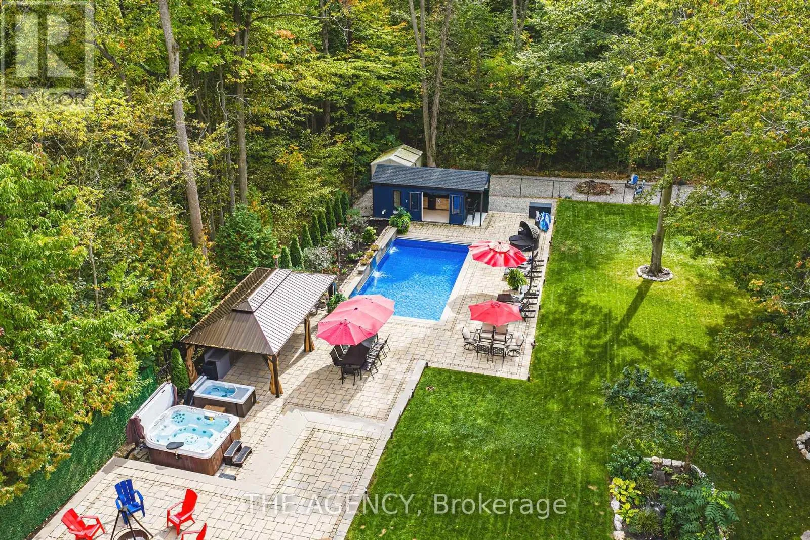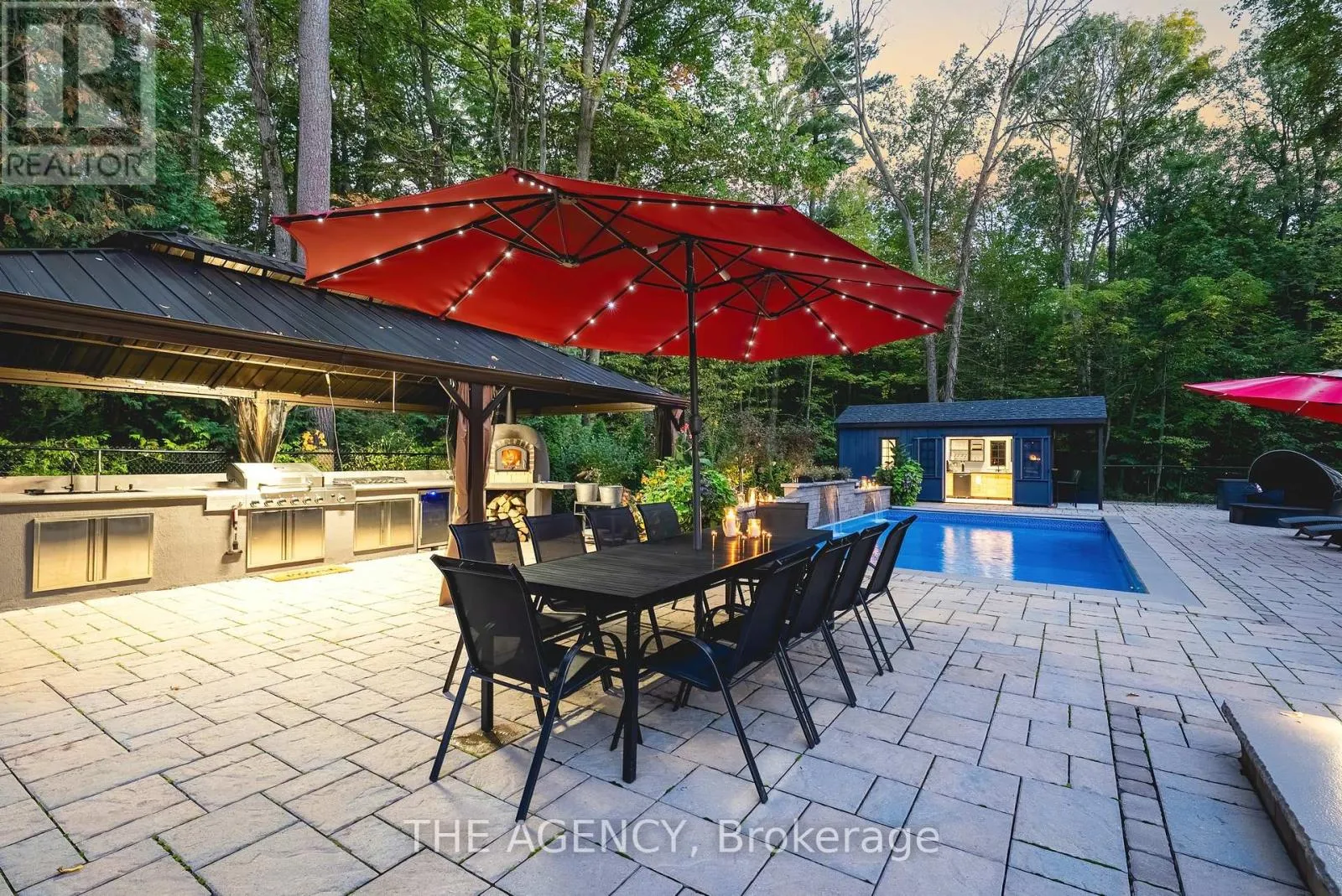Westbrook Rd After months of scrolling and sifting, this is the property that makes the waiting worthwhile. Welcome to 45 Golf Club Road a once-in-a-lifetime rural estate where no detail has been left to chance. Perfectly positioned on a private 0.69-acre lot backing onto landlocked greenspace and the Scenic Woods Golf Club, this home delivers the rare combination of seclusion, luxury, and convenience.Inside, nearly 4,800 sq.ft. of finished living space unfolds across three levels. The main floor is anchored by a chefs kitchen with Bosch appliances, quartz counters, oversized island, and custom cabinetry seamlessly connected to formal dining, a sunroom retreat, and expansive living areas with multiple fireplaces. Upstairs, a private primary suite with spa-inspired ensuite is joined by three additional bedrooms, a full bath, and second-floor laundry.The fully equipped, IN-law Suite offers a private walk-up entrance, full kitchen, large bedroom, hidden Murphy bed, full bathroom with indoor electric sauna, private laundry, and radiant heated floors throughout , perfect for extended family or live in nanny.Step outside to your own resort: a heated saltwater pool (2023) with electronic retractable cover, hot tub, cold plunge, outdoor wood-burning sauna, and a complete brick outdoor kitchen with sink, BBQ, gas stove, pizza oven, and bar fridge. New interlock patios, gazebos, full irrigation system (tied into the well), exterior lighting on timers, and over $20,000 in perennial landscaping complete the setting.Major upgrades include: roof (2020 appx), new well (2023) with iron/sulfur filtration, 400-amp service, tankless water heater, high-output A/C (2023), automated blinds, epoxy-coated basement and garage floors, heated garage, and full security system.This is more than a home its the property that checks every box, the one you hoped would come along. Private, turnkey, and unforgettable. Welcome to 45 Golf Club Road. (id:27476)