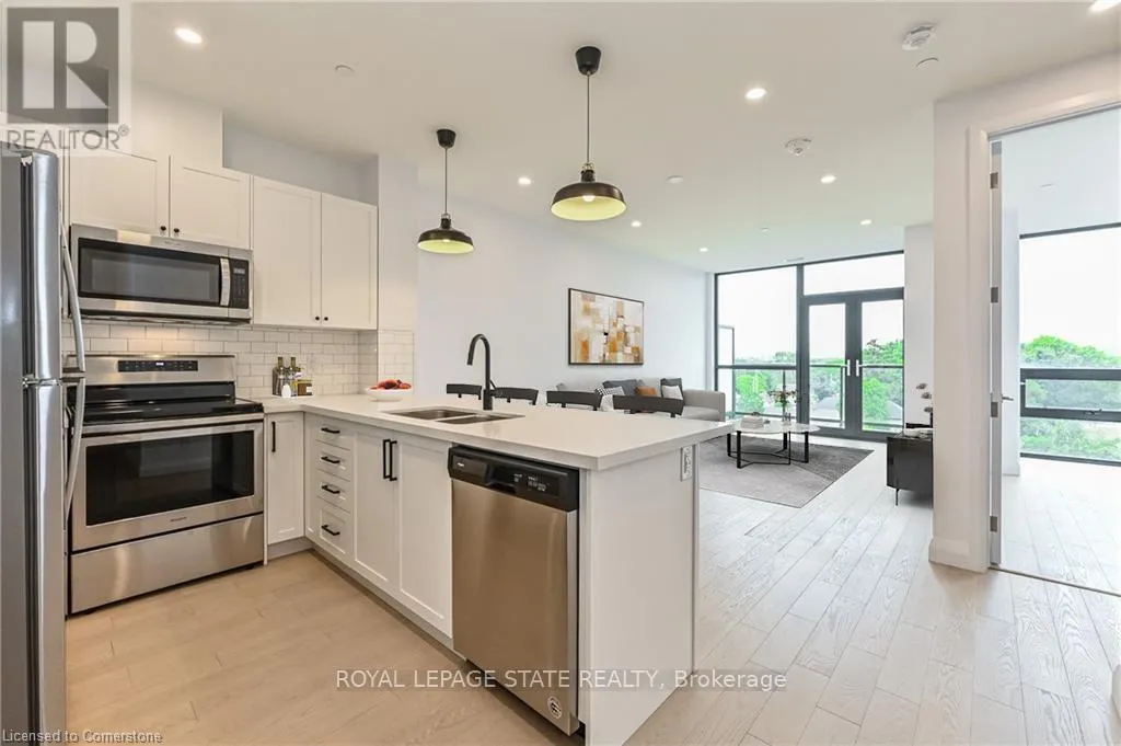 Cross Streets: Jackson Street West. ** Directions: From Locke S/Main, S on Locke S. Stunning 1 bedroom PLUS DEN, 1 bathroom, 719 square foot unit in Hamilton's premier condominium at 101 Locke Street South. This unit is loaded with features including upgraded engineered oak flooring throughout, a gorgeous kitchen with quartz countertops/stainless steel appliances/breakfast bar, pot lighting, upgraded light fixtures, a 62 square foot west-facing balcony with picturesque views toward the Locke Street shopping village, the escarpment, Dundas & West Hamilton (spectacular sunsets), a 4 piece bathroom with quartz countertops, & in-suite laundry. 1 underground parking spot (Level B #5) and 1 storage locker (Level B #5). Access to some exceptional common elements on the rooftop, including a full gym, steam room/sauna, outdoor seating, barbecues, a gas fireplace, table tennis, a bar, and a meeting area. Excellent craftsmanship overall - you will definitely be impressed. This property is located in one of the city's most coveted neighbourhoods, just a short walk to the shops and restaurants along Locke Street S, parks, schools, public transportation and major transportation routes. (id:27476)