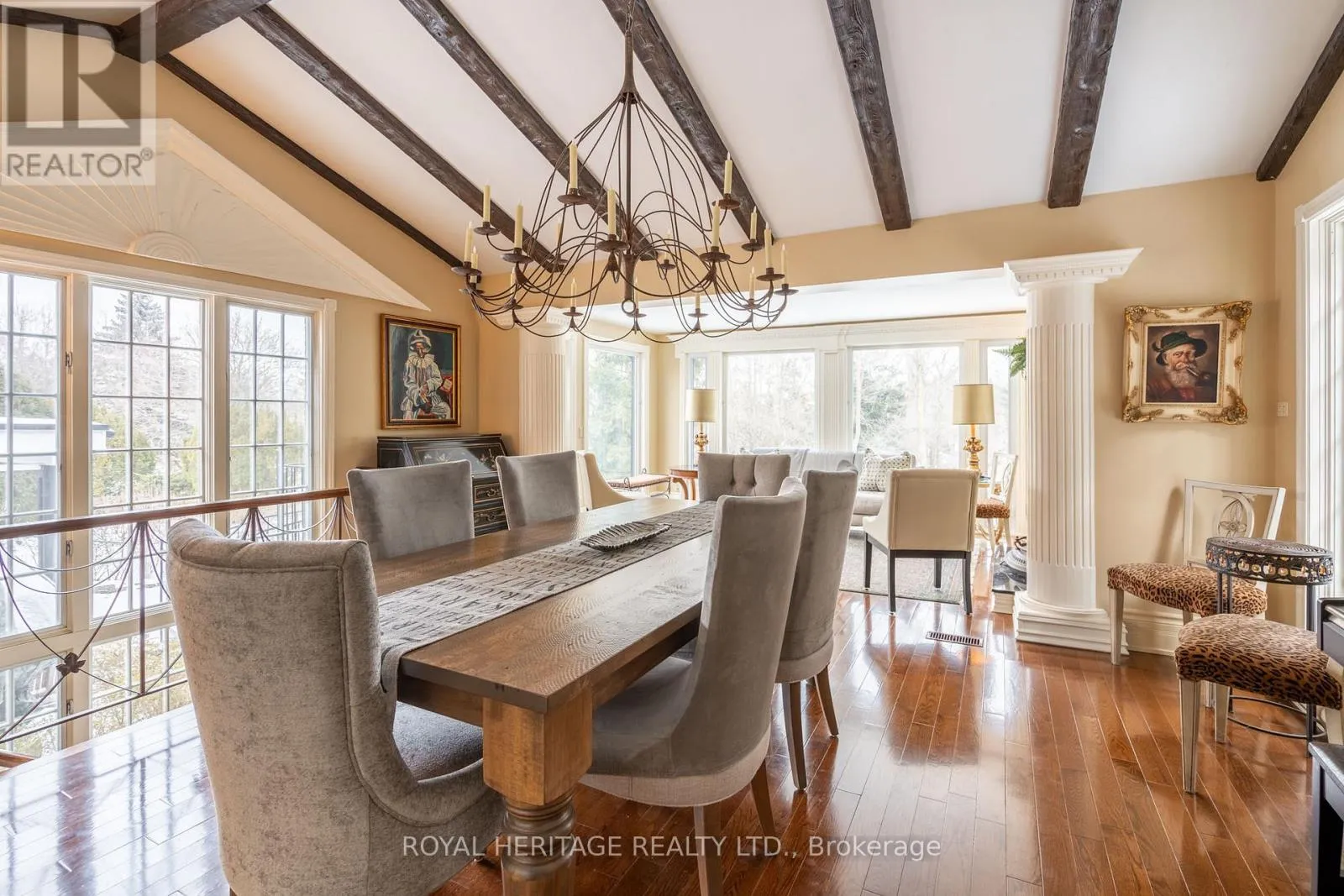 Cross Streets: Wilson & Dalley Drive. ** Directions: Turn on to Dalley Dr off Wilson St E, Stay right to Cait Court. Fabulous Old Ancaster Location in desirable Mansfield Park, Walk to downtown coffee, restaurants, summer market, charming downtown shops, Ancaster Art centre and amenities, This beautiful fully renovated 5 bedroom home sits on a parklike 1/3 acre of privacy on one of the most coveted cul de sacs in the neighbourhood. Part of the original pine forest for the area adorns the front yard and a treed muskoka style backyard with a small ravine is incredible with a newly updated inground pool and a stunning outdoor room. This property is so peaceful you will never want to leave. This home is a lot more spacious than it looks, almost 3000 sf of finished living space with a stunning 2 storey addition which showcases an almost all glass great room and cathedral dining area with beamed ceiling overlooking the 18'x36' pool and yard. Holiday dinners and entertaining your family and friends will be effortless in any season Stunning suspended oak staircase with beautiful wrought iron railing to the large family room sits in front of a 2 storey window, spectacular views of the fountain and yard. The family room has a wall to wall glass walkout to the pool and patio. Large pool house. Too many recent upgrades to mention like: Appliances,rec room reno, exterior aluminum renos, garage door,upgraded inground pool liner, concrete pad for equipment, Ensuite bathroom Reno,Plumbing updates,Spray foam insulation in crawl space, Paint throughout most of the int and ext,This quiet court location is so amazing! 200 amp (id:27476)