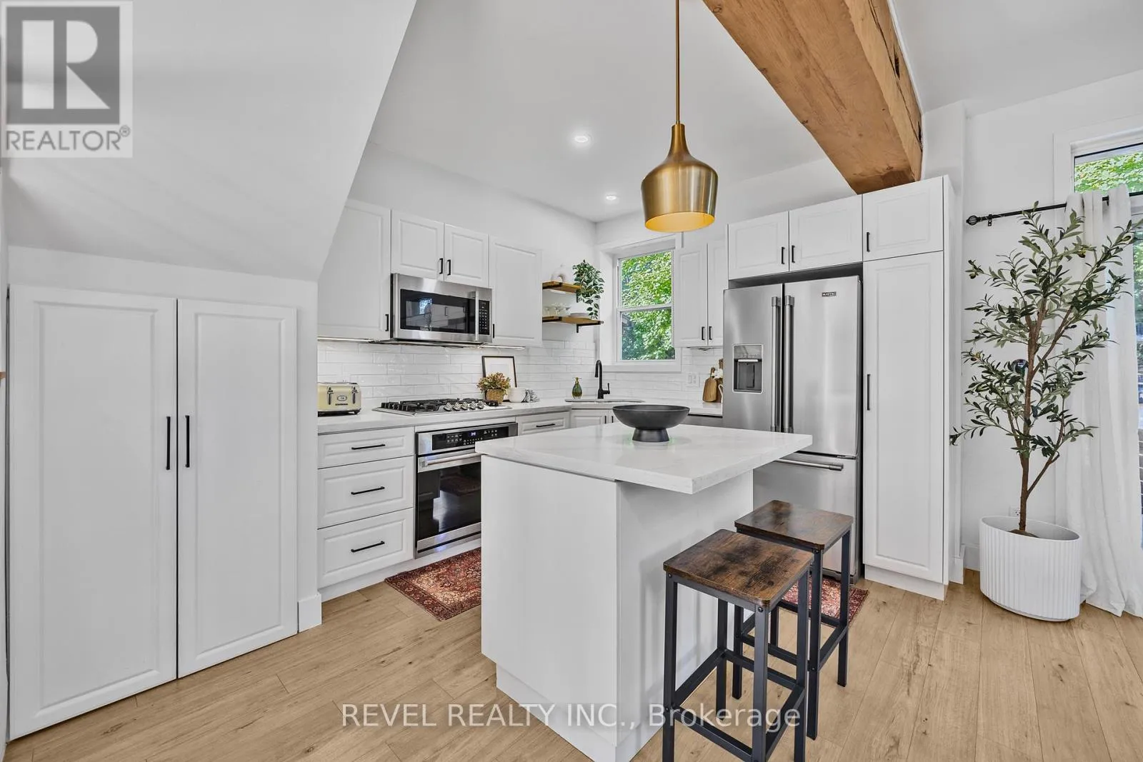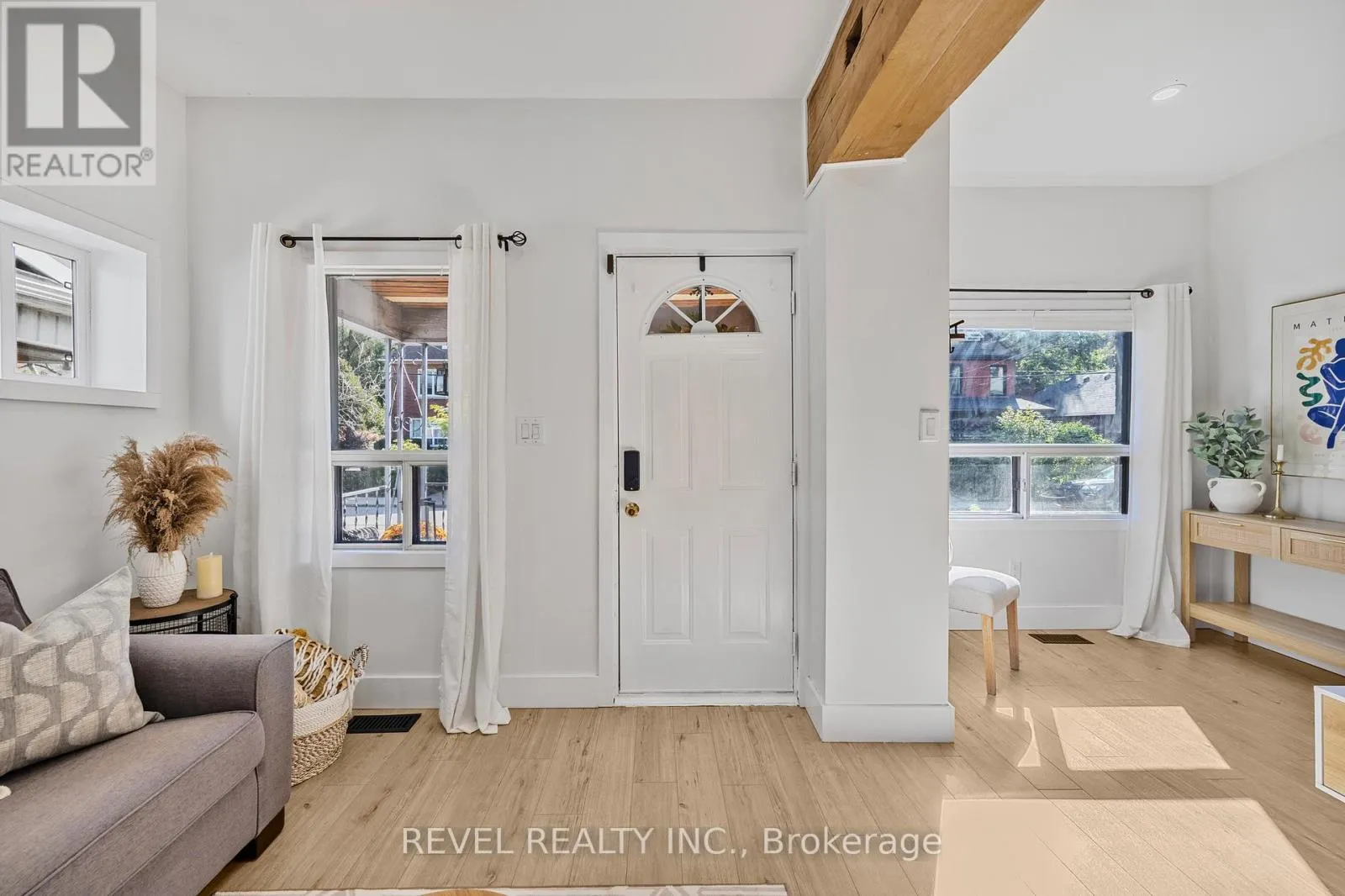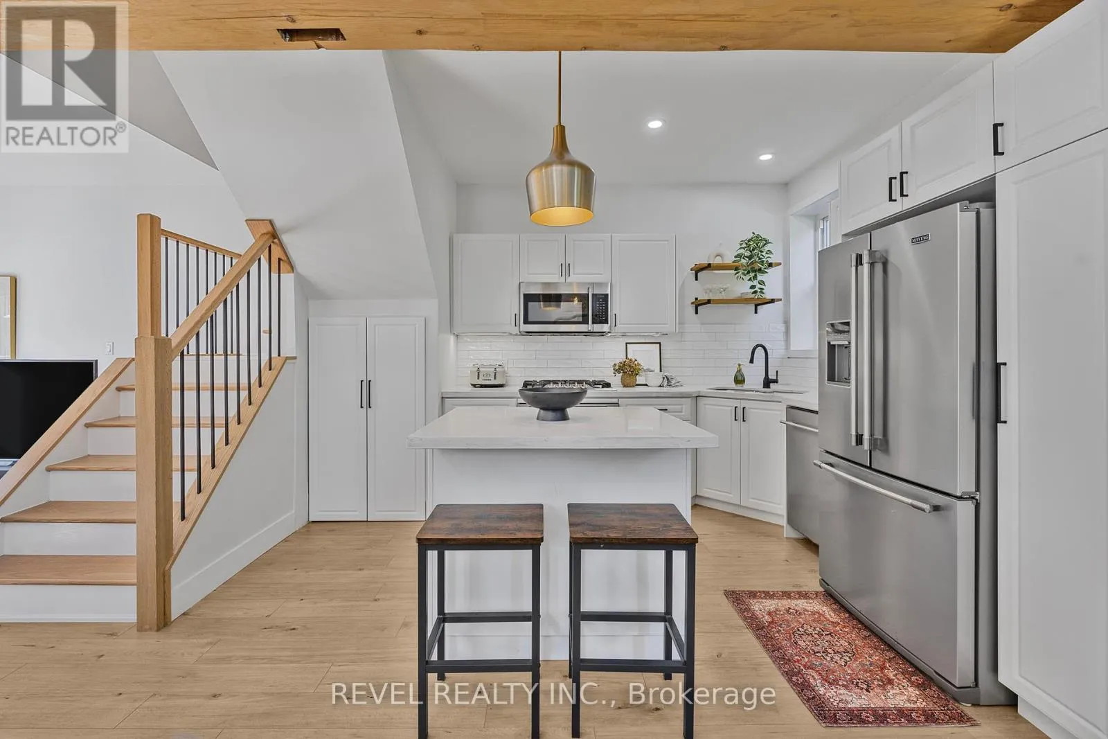 Cross Streets: Lawrence and Cumberland. ** Directions: Take Red Hl Vly Pkwy and Lawrence Rd to Cumberland Ave. Completely renovated and move-in ready, this stunning 2+1 bedroom, 2 bath home in Hamiltons sought-after St. Clair neighbourhood looks like it belongs in a magazine. Step inside to find designer finishes, quality craftsmanship, and a bright, open-concept living space with a striking exposed beam that adds warmth and character. The professionally designed kitchen features quartz countertops, stylish cabinetry, and a seamless flow to the backyard through sliding doorsan entertainers dream! Upstairs, two spacious bedrooms with plenty of closet space offer comfort and style, while the finished lower level provides an additional bedroom or versatile living space. The chic, private backyard is ideal for gatherings or quiet evenings, making outdoor living just as enjoyable as inside. This home includes 2 parking spaces for convenience. The detached garage, complete with hydro, offers incredible potential for an ADU, workshop, or studio. A first-time home buyers dream, this property is just steps to Gage Park, scenic trails, schools, and amenities, blending style, comfort, and investment opportunity in one. Dont miss your chance to own a fully updated gem in one of Hamiltons most sought-after communities! (id:27476)