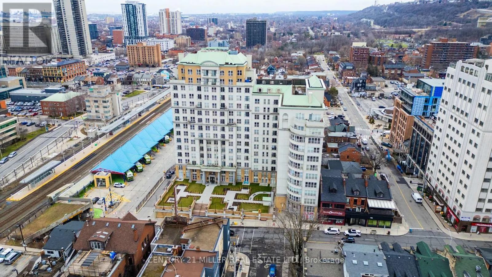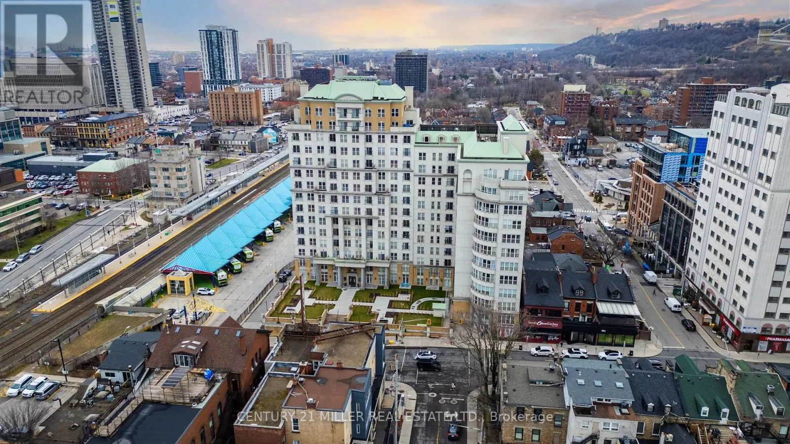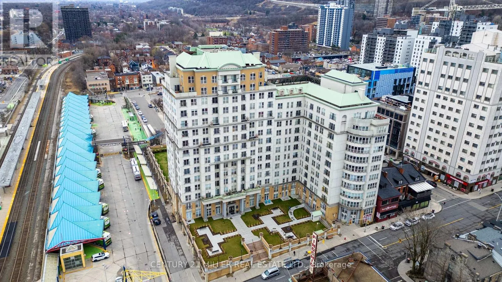 Cross Streets: James St /Aususta St. ** Directions: From Main St head South on Jame. Locate beside Hamilton GO station. Walking distance to Restaurants, pubs, boutiques, St. Josephs Hospital & McMaster University. Updated 1 bedroom + den suit in Downtown Hamilton's prestigious Chateau Royal building. This bright North facing unit offers an abundance of natural light. The open concept layout from the spacious living and dining area to a well-appointed kitchen which features a breakfast island, granite countertops, and plenty of cabinetry to meet your pantry & cupboard needs. This condominium has 24 hour Concierge, Sauna, Gym, Private resident only ground park, and huge roof top Terrance on the 14th floor. Underground parking space is available to buy or rent. All appliances are as is conditions. (id:27476)