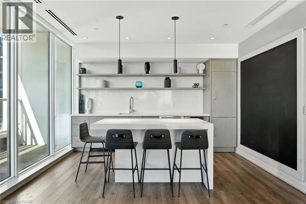 Wellington St N to King William Experience stylish urban living at its finest in this beautiful Kiwi Condo, ideally located in the heart of downtown Hamilton. This vibrant community puts you just steps from shops, restaurants, entertainment, transit, and everything the city has to offer. The building is packed with upscale amenities, including a state-of-the-art gym and yoga studio, a welcoming concierge, a rooftop terrace with BBQs and sweeping city views, a dog wash station, mail room, and a spacious party room with fireplace and full kitchenâperfect for entertaining. Inside the unit, youâll find a thoughtfully designed 1-bedroom, 1-bathroom layout with an airy open-concept kitchen and living area. The sleek, modern kitchen features stainless steel appliances, an island, and ample storage, while the living room flows effortlessly to a large private balcony through sliding glass doors. Convenience is key, with in-suite laundry and controlled entry for peace of mind. Parking is available at nearby municipal lots, making this property as practical as it is stylish. Whether youâre a first-time buyer, downsizer, or investor, this condo is the perfect opportunity to secure a slice of Hamiltonâs thriving downtown lifestyle. (id:27476)