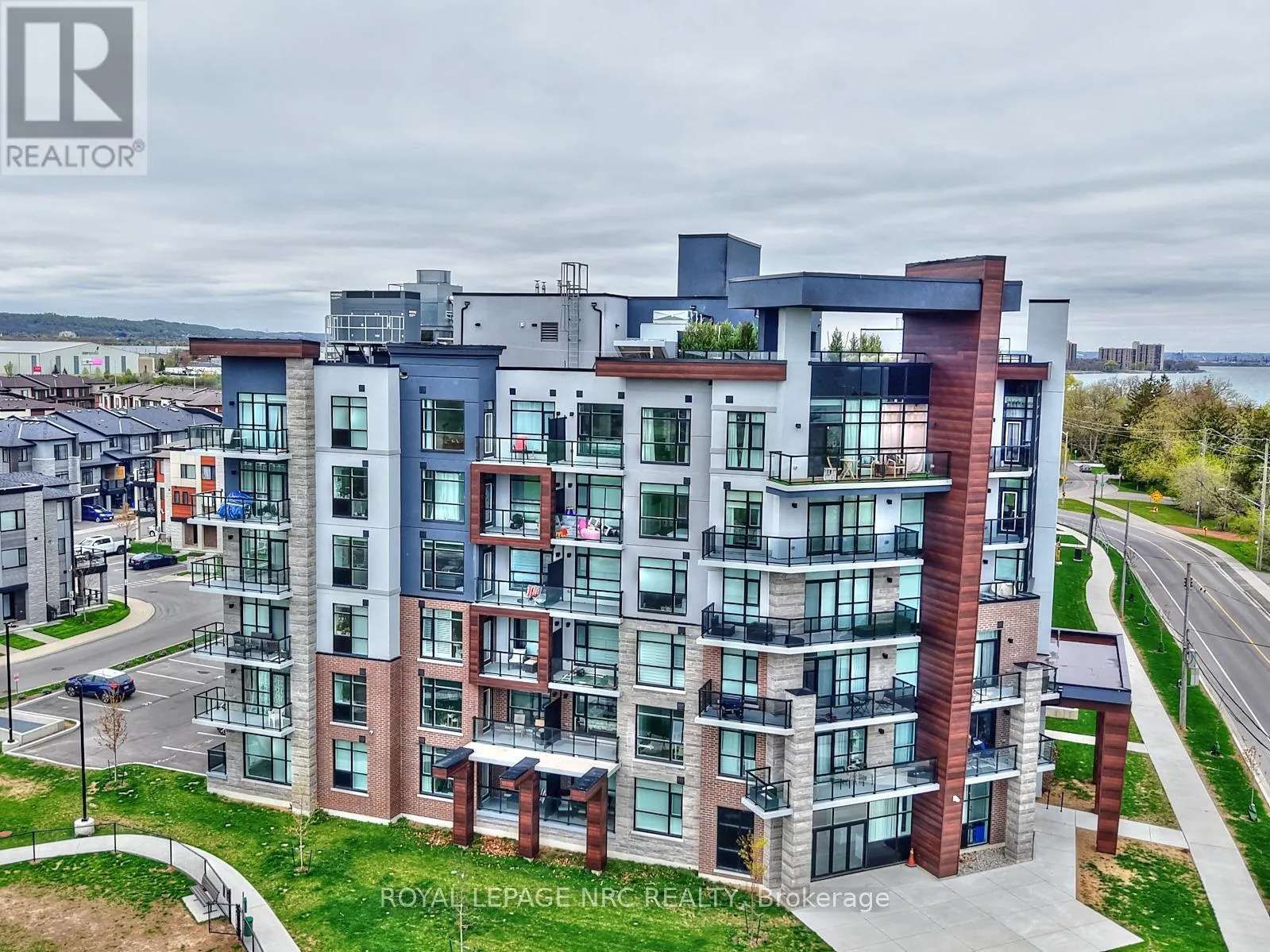 Cross Streets: QEW Fruitland. ** Directions: QEW to Fruitland to North Service Road. Experience elevated condo living in this beautifully designed suite built by the renowned Desantis Homes. Featuring a spacious open-concept layout, this residence is adorned with chic finishes and large windows that flood the space with natural light. The kitchen is both stylish and functional, complete with a breakfast bar perfect for casual dining, while in-suite laundry adds everyday convenience. Step outside to a generously sized balcony that offers additional living space ideal for relaxing or entertaining. This unit includes a dedicated underground parking spot and a private storage locker, offering both security and convenience for your lifestyle. Residents enjoy access to an impressive array of building amenities, including a rooftop terrace with breathtaking views of Lake Ontario, outfitted with BBQs, loungers, and a welcoming seating area. Pet lovers will appreciate the on-site dog park and pet grooming spa, while the media room and party room provide space for social gatherings and entertainment. Located in a prime spot for commuters, this home is just minutes from the QEW and within walking distance to the lake, blending convenience with lifestyle in one exceptional package. (id:27476)