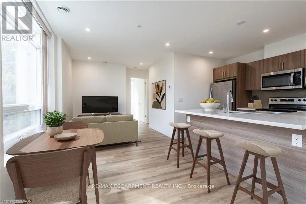 Cross Streets: Wentworth St S. ** Directions: Wentworth St S to Charlton Ave. *Not one but TWO parking spaces!* Discover boutique condo living in this stunning full two-bedroom, two-bathroom corner unit at the sought-after Vista Condos. This unit boasts modern finishes throughout with upgrades including pot lights, premium shower tiling in both bathrooms as well as soft-close cabinetry. Start your mornings with breathtaking sunrise views showcasing the Skyway Bridge and Escarpment. The modern kitchen features sleek light wood cabinetry, quartz countertops, and stainless-steel appliances. Experience the ease of carpet-free living with wood laminate flooring throughout. The spacious primary bedroom is filled with natural light from a large window and includes a four-piece ensuite with white subway tile and quartz countertops. The second bedroom offers ample space and beautiful views. Unwind with a coffee or wine on your spacious covered balcony, soaking in the scenic surroundings. Ideally located near major amenities and highways, the building offers a 130-foot-wide communal terrace with BBQs and patio seating, exercise and party rooms plus a security system. RSA. (id:27476)