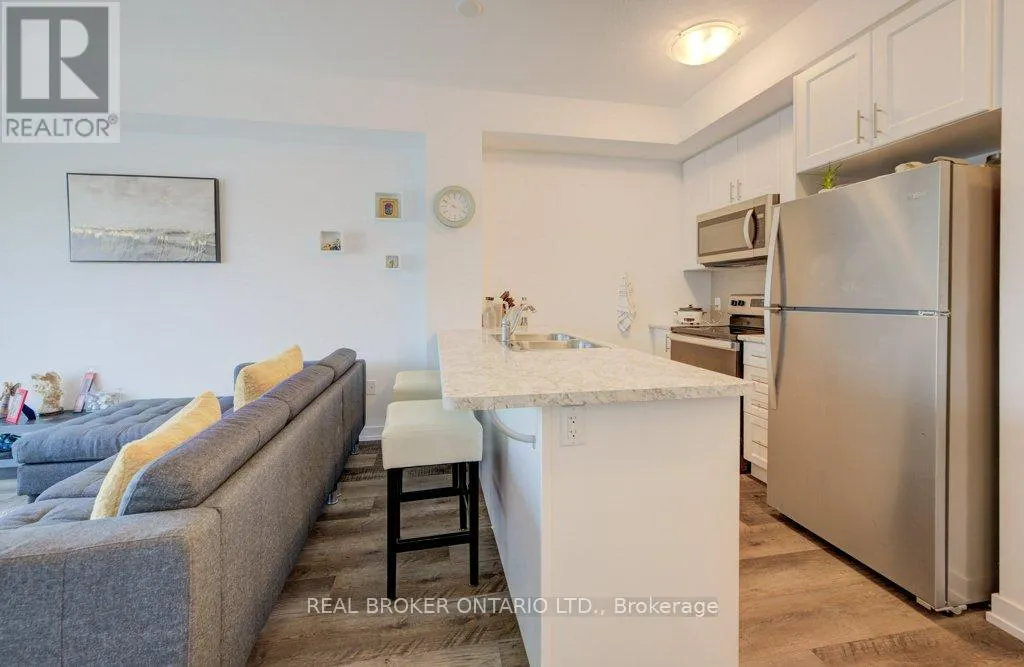 Cross Streets: Riverwalk. ** Directions: Dundas St E between to Mallard Trail and Riverwalk Dr. A stylish 1-bedroom plus den property located on the 11th floor of a modern 2022-built condo . This contemporary suite offers a thoughtful layout designed to maximize both function and comfort while providing breathtaking panoramic views from its elevated perch. Step inside and enjoy a bright, open concept living space with sleek finishes, perfect for both everyday living and entertaining. The versatile den makes an ideal home office, reading nook, or guest area, while the spacious bedroom provides a private retreat at the end of the day. Large windows fill the unit with natural light, complementing the modern aesthetic. This forward-thinking building offers geothermal heating and cooling, ensuring year-round comfort while promoting energy efficiency. Everyday living is made easy with convenient parcel delivery lockers, secure underground parking, and your own storage locker for extra belongings. Residents enjoy a wide array of amenities designed to fit an active and social lifestyle. Host friends on the rooftop patio with BBQs, stay active in the fully equipped gym, or unwind in the party room with a pool table. These shared spaces extend your living area and create opportunities to connect with neighbors. Perfectly located, this condo offers easy commutes with quick access to the GO station and major highways, making trips into the city a breeze. Closer to home, youll find a wealth of local shopping, dining, and parks, giving you the perfect blend of urban convenience and neighborhood charm. Whether youre a young professional, downsizer, or investor, this property presents an opportunity to embrace modern condo living with all the conveniences at your fingertips. (id:27476)