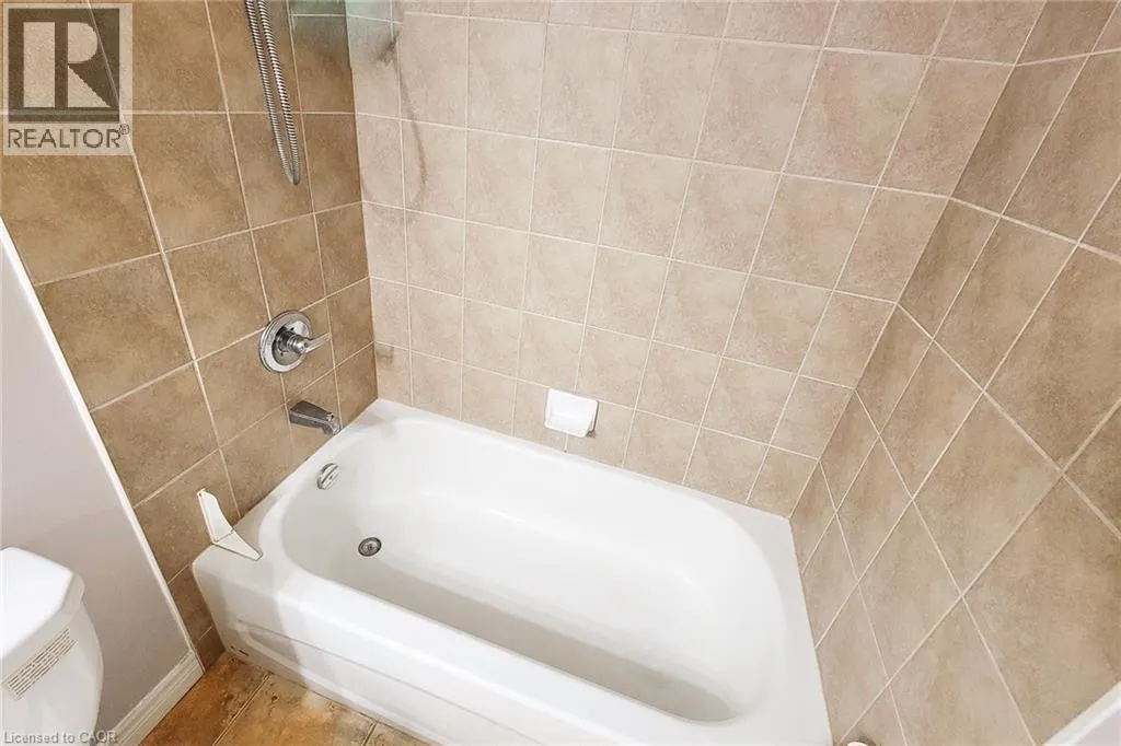 Fifty Road - North Service Road - Baseline Road - Marina Point Very well kept and beautiful 3 bedroom, 4 bath townhome in a prime Stoney Creek location with a short stroll to the lake! Open concept main floor features living/dining room combo with 9 foot ceilings and gas fireplace. Stunning kitchen with extended upper cabinetry, centre island with breakfast bar, stainless steel appliances and large eat-in area. Walk out to beautiful yard with concrete patio. Upper level hosts bright and welcoming primary bedroom with an ensuite, 2 large bedrooms with main 4 piece bathroom and convenient 2nd floor laundry. Finished lower level has huge rec room for entertainment and 2 piece bath. Laminated flooring on all 3 levels. Almost all windows (except patio door) are new in 2019. Close to schools, stores like Costco and parks with easy access to QEW and 10 minutes to the new Confederation GO station. (id:27476)