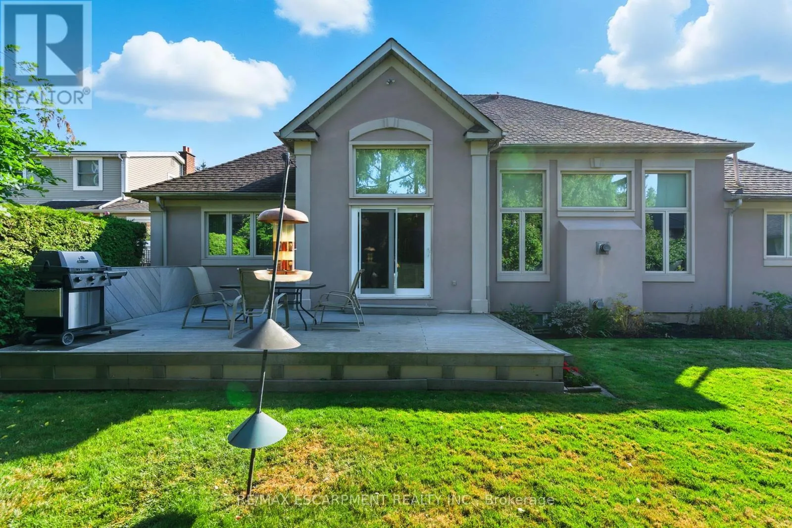 Cross Streets: Wilson St E. ** Directions: Wilson St E to Fiddler's Green Road, before Calvin St. 320 Fiddlers Green is a bungalow of presence, proportion and ease. Set across 1,935 square feet, the thoughtful split-bedroom design and soaring 12 ceilings create a sense of openness from the very first step inside. Oak hardwood floors, expansive windows and pot lights bring light and warmth into every corner, while a formal dining room and a living room with a gas fireplace anchor the heart of the home. The kitchen, freshly painted, features oak cabinetry, stainless appliances and granite counters offering generous storage and flow, plus a walkout to the backyard. The primary suite is a retreat of its own, measuring 18 x 12 with his-and-hers closets and a 5-piece ensuite featuring a soaker tub, double vanity and walk-in shower. Two additional bedrooms, a four-piece bath and a powder room with personality round out the main level with balance and charm. The lower level extends the living with a spacious rec room framed by oversized windows and a gas fireplace. With a separate entrance, high ceilings, and generous square footage, this level invites endless possibilities whether for family, guests or quiet pursuits. Beyond the walls, a triple-car garage, composite deck and parking for six complement the home, while the fenced yard offers privacy without excess upkeep. 320 Fiddlers Green is a home that welcomes, uplifts and endures. An address of quiet stature. RSA. (id:27476)