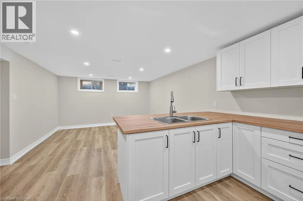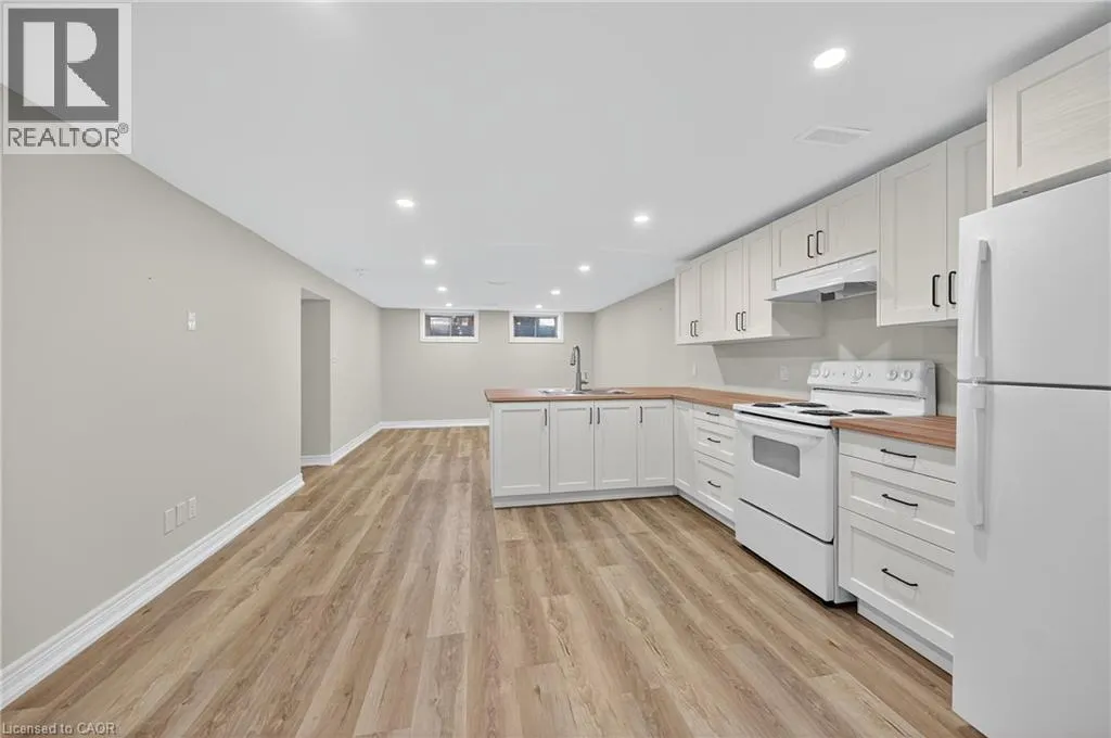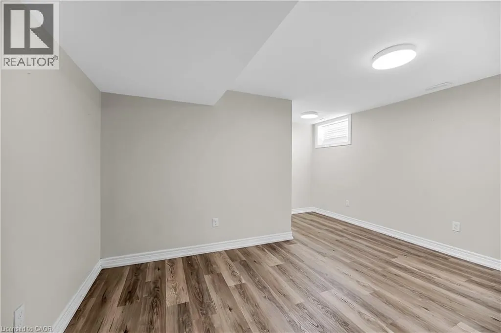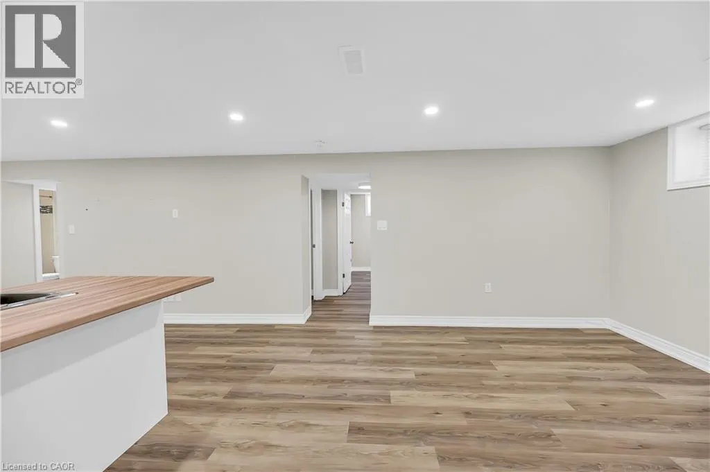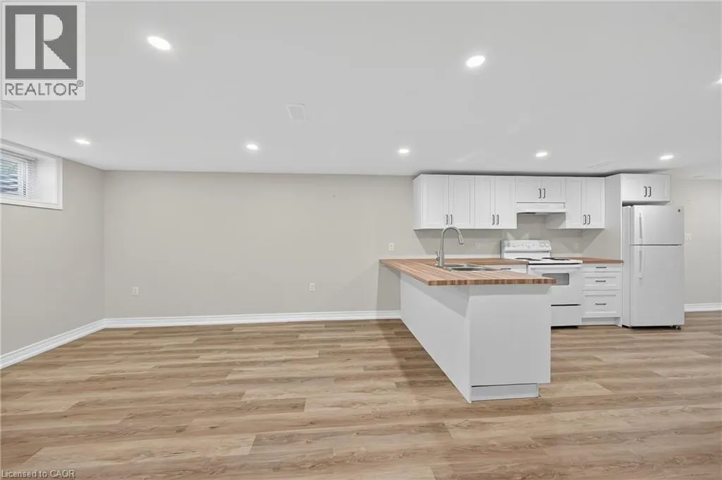Mohawk Rd E to Grenadier Dr to Toby Cres Stunning two bedroom, one bathroom basement apartment located on a quiet street in the desirable Huntington neighbourhood on the East Mountain. The apartment is on the lower level of a legal duplex and features a spacious and bright open concept living room, eat-in kitchen with plenty of cabinets and counterspace, breakfast bar, dining area, a 3-piece bathroom, laundry room with washer & dryer, and two spacious bedrooms. Luxury vinyl plank flooring throughout. Ceramic tile in the bathroom. Separate side entrance from the driveway. The shared backyard is fenced and has a large concrete patio. Steps to the Mountain Brow and panoramic views of the City. Green space and recreation nearby including Mohawk Sports Park, King's Forest, The Bruce Trail, The Hamilton Rail Trail, and the Mountain Brow walking and bike path. Convenient access to amenities. Easy access to the lower city and Red Hill Parkway. Non-smoker. Small pets only. Tenant pays 40% of gas, hydro, and water utilities in addition to the base rent. Immediate possession available. (id:27476)