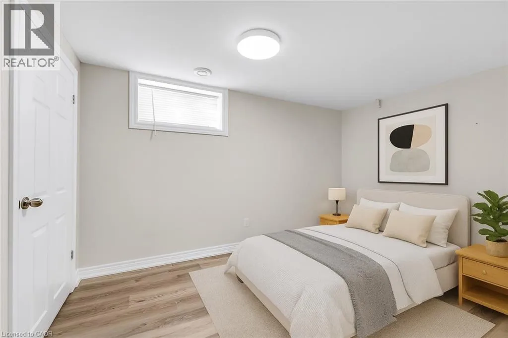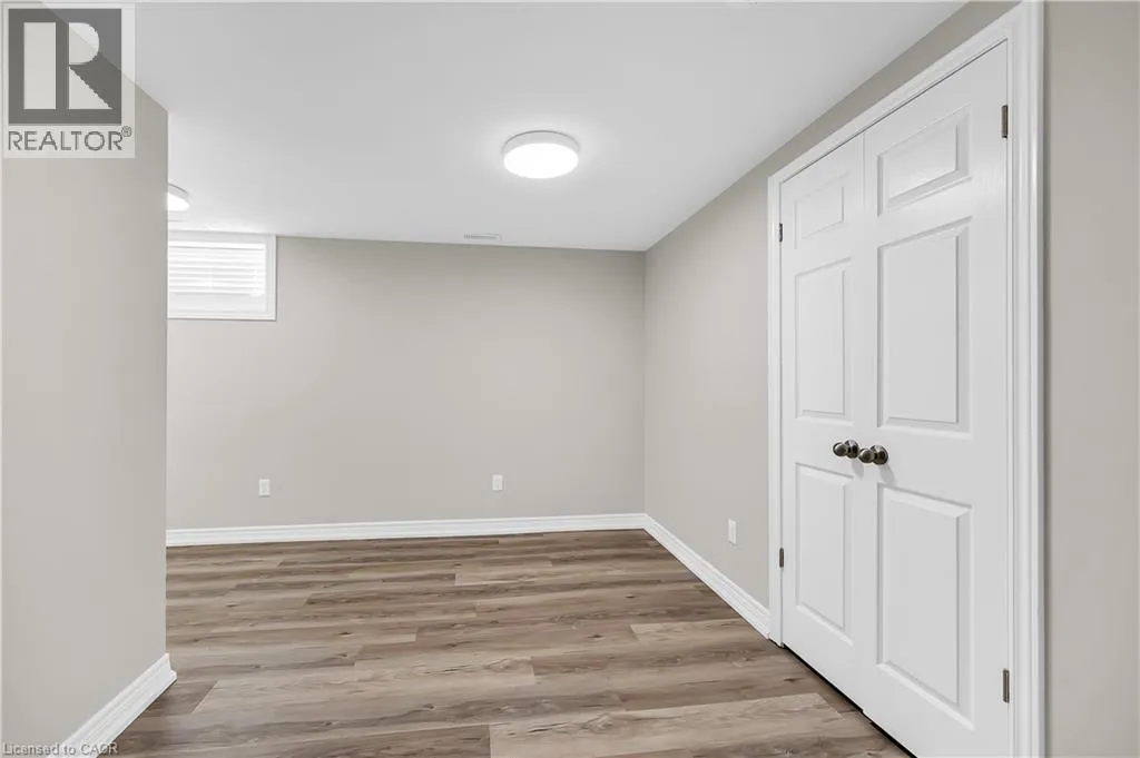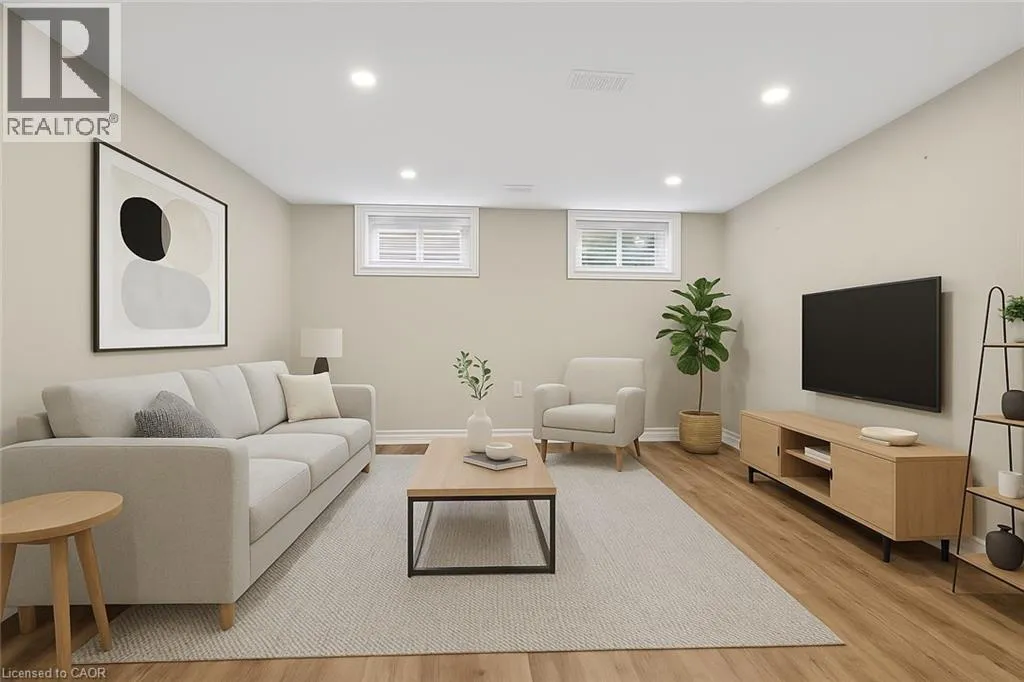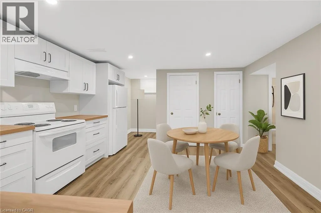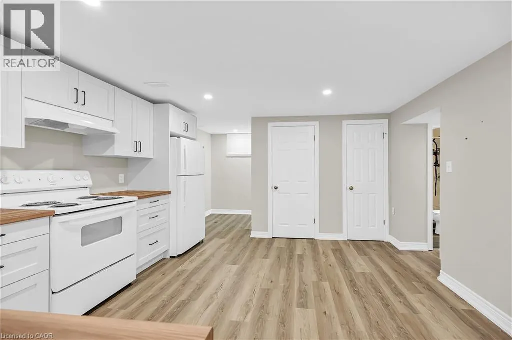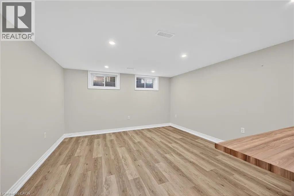 Mohawk Rd E to Grenadier Dr to Toby Cres Stunning two bedroom, one bathroom basement apartment located on a quiet street in the desirable Huntington neighbourhood on the East Mountain. The apartment is on the lower level of a legal duplex and features a spacious and bright open concept living room, eat-in kitchen with plenty of cabinets and counterspace, breakfast bar, dining area, a 3-piece bathroom, laundry room with washer & dryer, and two spacious bedrooms. Luxury vinyl plank flooring throughout. Ceramic tile in the bathroom. Separate side entrance from the driveway. The shared backyard is fenced and has a large concrete patio. Steps to the Mountain Brow and panoramic views of the City. Green space and recreation nearby including Mohawk Sports Park, King's Forest, The Bruce Trail, The Hamilton Rail Trail, and the Mountain Brow walking and bike path. Convenient access to amenities. Easy access to the lower city and Red Hill Parkway. Non-smoker. Small pets only. Tenant pays 40% of gas, hydro, and water utilities in addition to the base rent. Immediate possession available. (id:27476)
