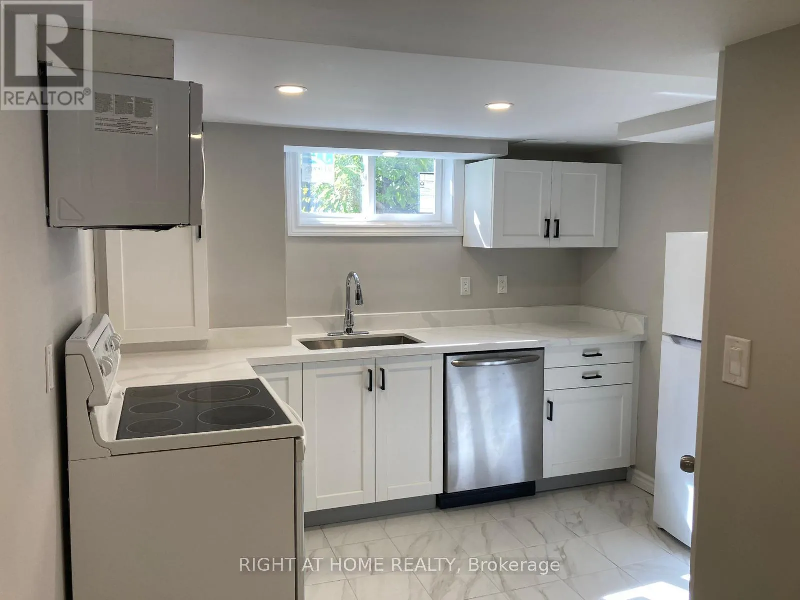 Mohawk Rd E & Regency St Very spacious and bright newly renovated basement apartment featuring 2 bedrooms, 1 bathroom, and a modern kitchen with brand-new cabinets, quartz countertop, dishwasher, microwave. This unit offers 3 brand-new sunshine-side windows, brand-new laundry, private entrance through the garage, and is carpet-free with new vinyl flooring and pot lights throughout. The bathroom has been upgraded with a new glass shower set, base, and plumbing. Comfort is ensured with brand-new central A/C, furnace, and an owned tankless water heater. Tenants pay 40% of water, hydro, gas, and internet. Two parking spots on the left side of the driveway are included. Conveniently located near schools, highways, and all amenities. No backyard access. Ready to move in! (id:27476)