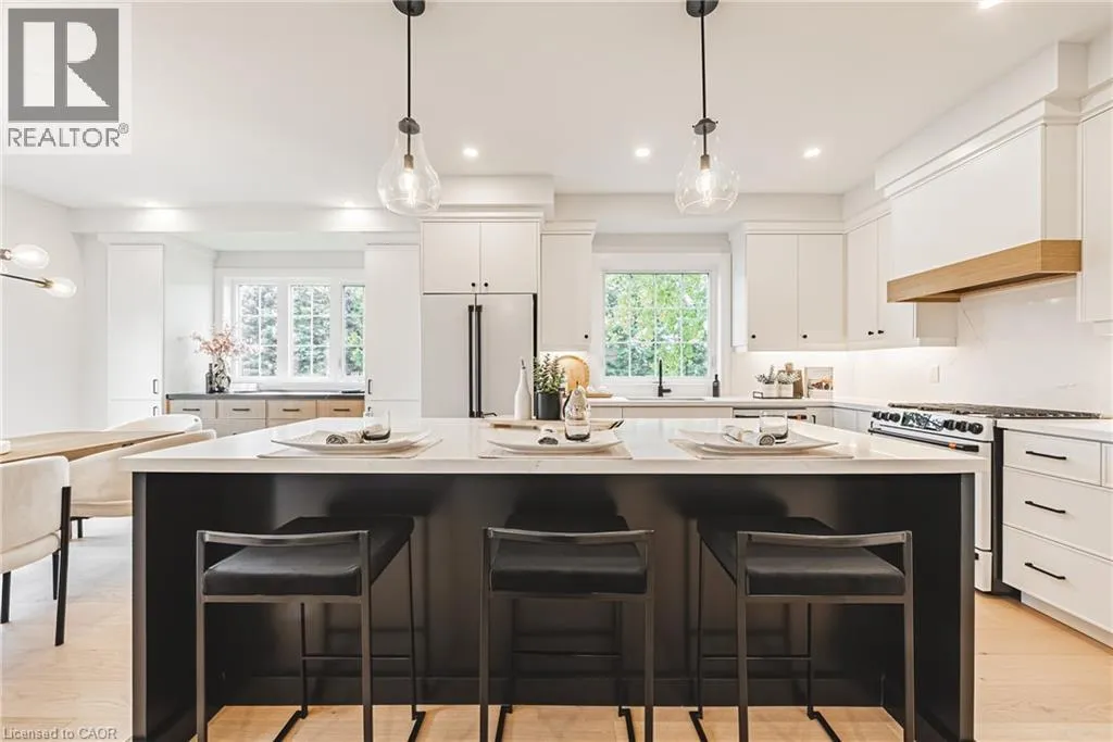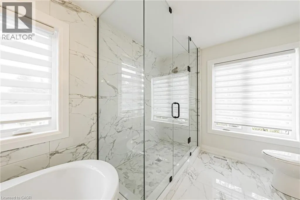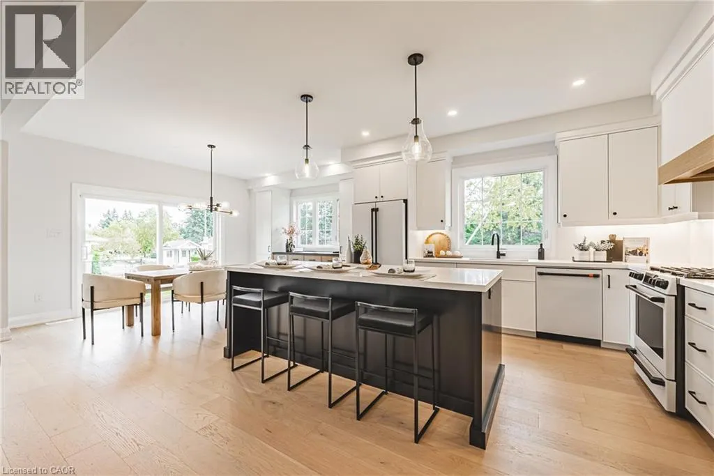 LINC to Garth St, Garth to Twenty Rd. Twenty Rd to Silverbirch Blvd. Kellogg Ave will be on the left Welcome to this beautifully crafted, never-lived-in model home that exemplifies modern luxury and thoughtful design. From the moment you step inside, you're greeted by an expansive open-concept layout that flows effortlessly throughout the main floor. Elegant wide-plank hardwood floors extend from the living area into the heart of the homeâa true showpiece kitchen featuring white chef-grade appliances, quartz countertops, and a matching quartz backsplash. A sleek linear fireplace with a quartz surround adds warmth and sophistication to the main living space, perfect for entertaining or cozy nights in. The grand entryway features large-format tiles, adding both durability and style to this welcoming space. Upstairs, discover four spacious bedrooms, including two that share a convenient Jack & Jill bathroom, an additional full bath, and a luxurious primary suite complete with a spa-inspired ensuite. An upper-level family room offers additional living space and boasts a custom built-in entertainment center, ideal for relaxing or hosting guests. The fully finished 9' basement expands your living space with a large rec area, a wet bar, and a full bathroom, making it perfect for entertaining, a home gym, or multigenerational living. Donât miss your chance to own this exceptional, turnkey home that blends upscale finishes with everyday functionality in every detail. (id:27476)