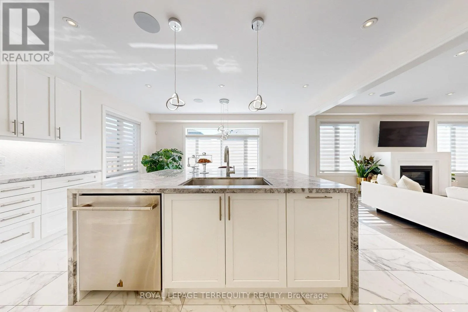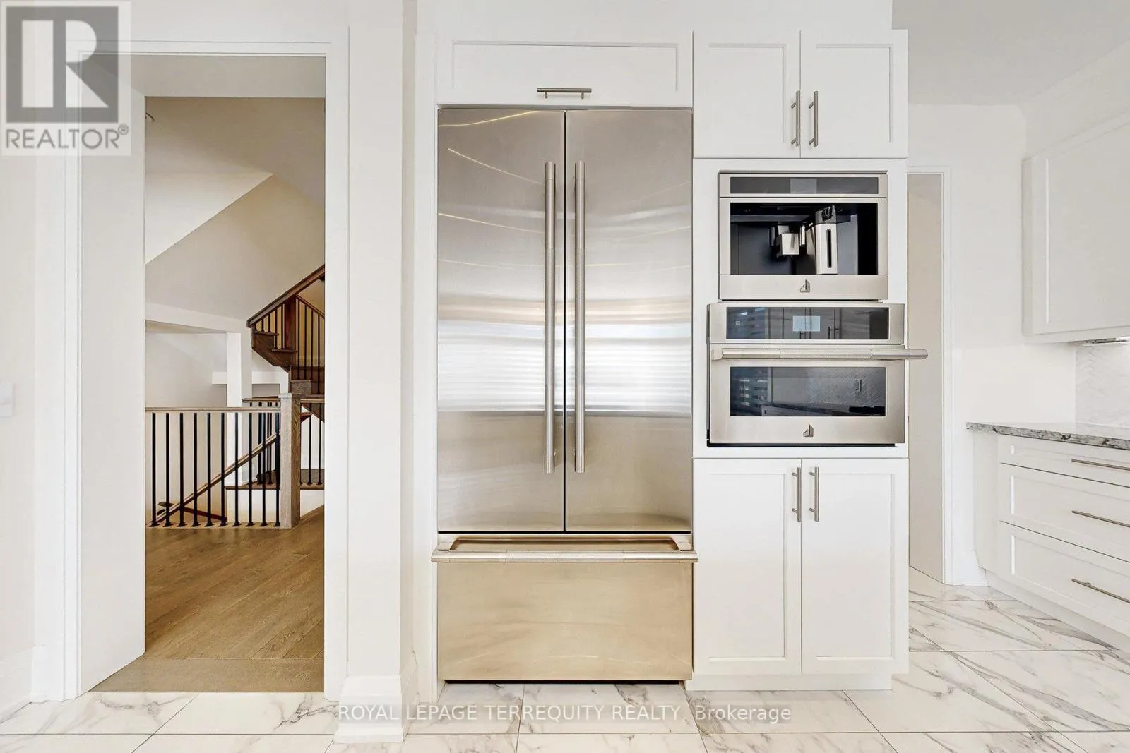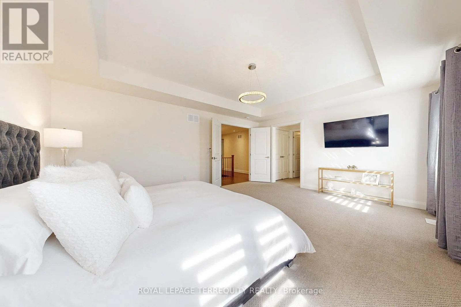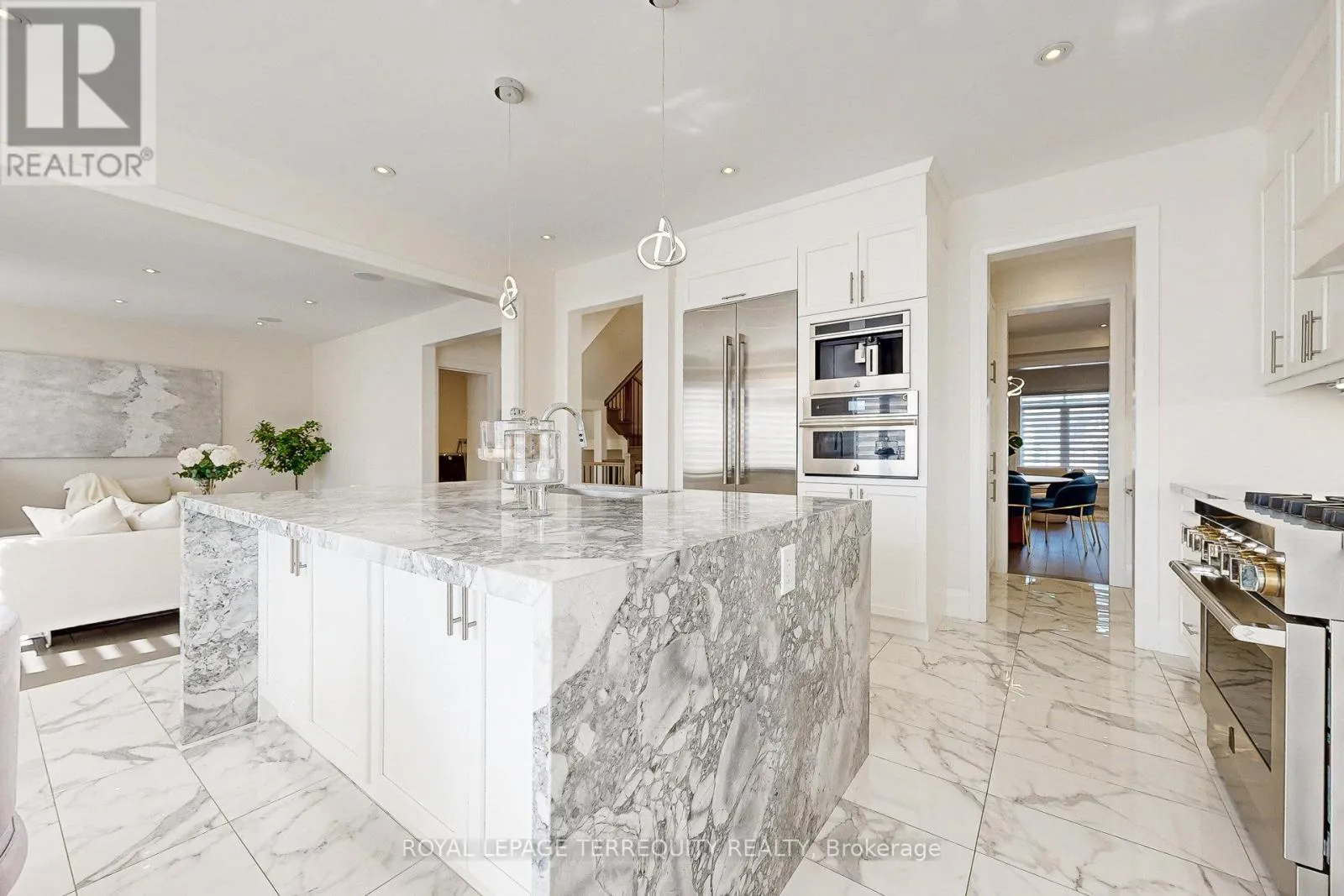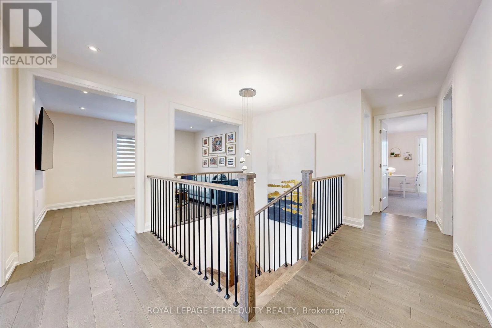 Cross Streets: Stonehenge and Raymond. ** Directions: Take Whittington from Raymond. An exceptional custom home at 52 Lightfeather Place, tucked within the coveted Tiffany Hills enclave of Ancaster is for sale. This sophisticated residence blends high-end finishes with smart-home technology, offering a turnkey experience for the discerning buyer. Step inside to discover 6" baseboards on the main floor, matched with an elegant spindle railing detail. The home is lit throughout by recessed lighting (a $30,000 install) along with decorative pendulum fixtures in hallways, kitchen, and baths. Even the showers boast dedicated ceiling lights + ceiling tile to accentuate your spa-like experience. A complete Louvolite electronic blind system is integrated throughout with blackout blinds in all bedrooms allowing effortless light control at the touch of a button. The open-concept kitchen is nothing short of remarkable: a large marble waterfall island with storage under the breakfast bar, oversized undermount sink. Upgraded backsplash, pot-filler, 12"x24" tile floors, and full suite of Jennair appliances (microwave/convection oven, 6-burner gas range, dishwasher, built-in espresso machine, plus a bar/wine fridge in the servery). A 36" built-in hood is seamlessly integrated into custom cabinetry. The servery also received added upper cabinets as an upgrade. Entertainment is front and centre: surround sound wiring on the main-floor family room, plus a sound system with eight main-floor speakers and one in the primary ensuite bathroom. Hardwood floors in a subtle grey tone drift through the main level, with upgraded tile in bathrooms. The fireplace is crowned by a custom mantle upgrade to elevate the focal point of the great room. Security is robust with six Hikvision hardwired cameras with recording, supplemented by a Ring doorbell. Outdoors, enjoy a beautifully laid interlock patio, professional landscaping, and ambient soffit lighting around the perimeter. (id:27476)