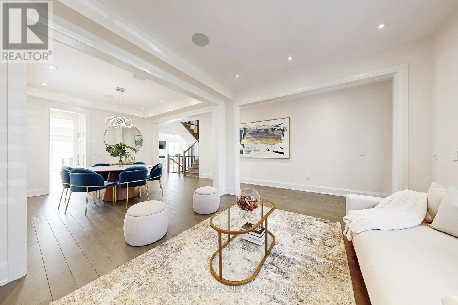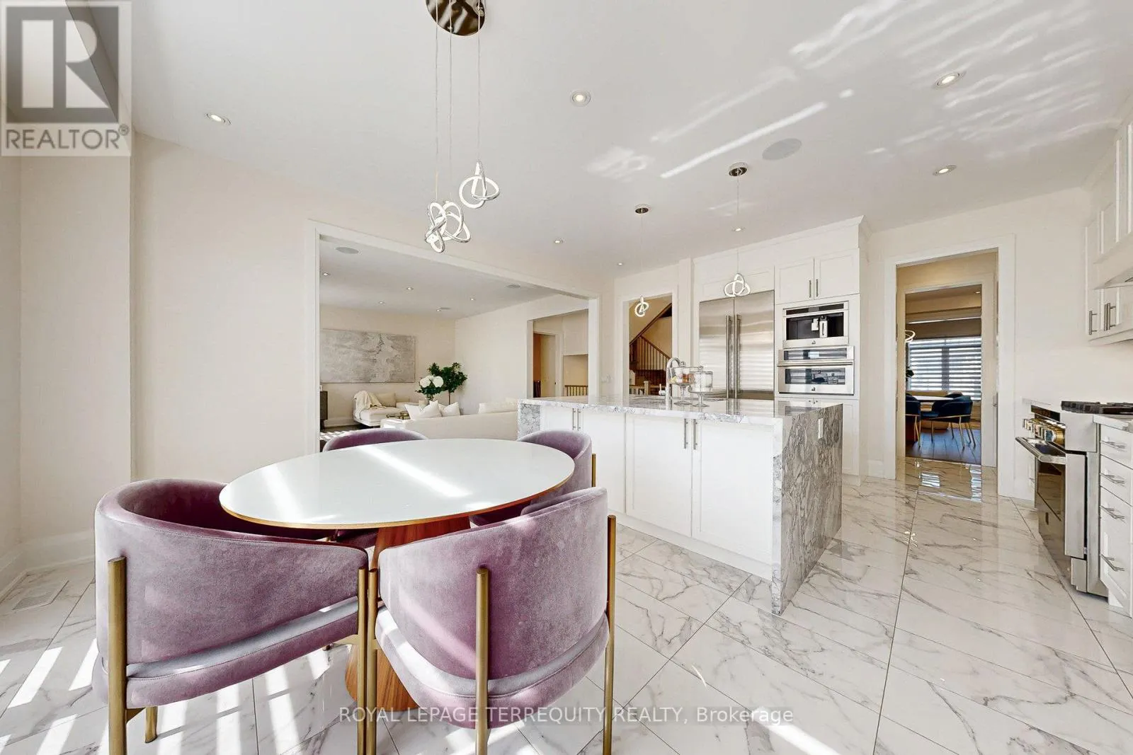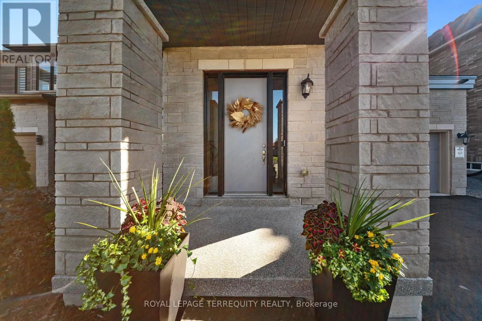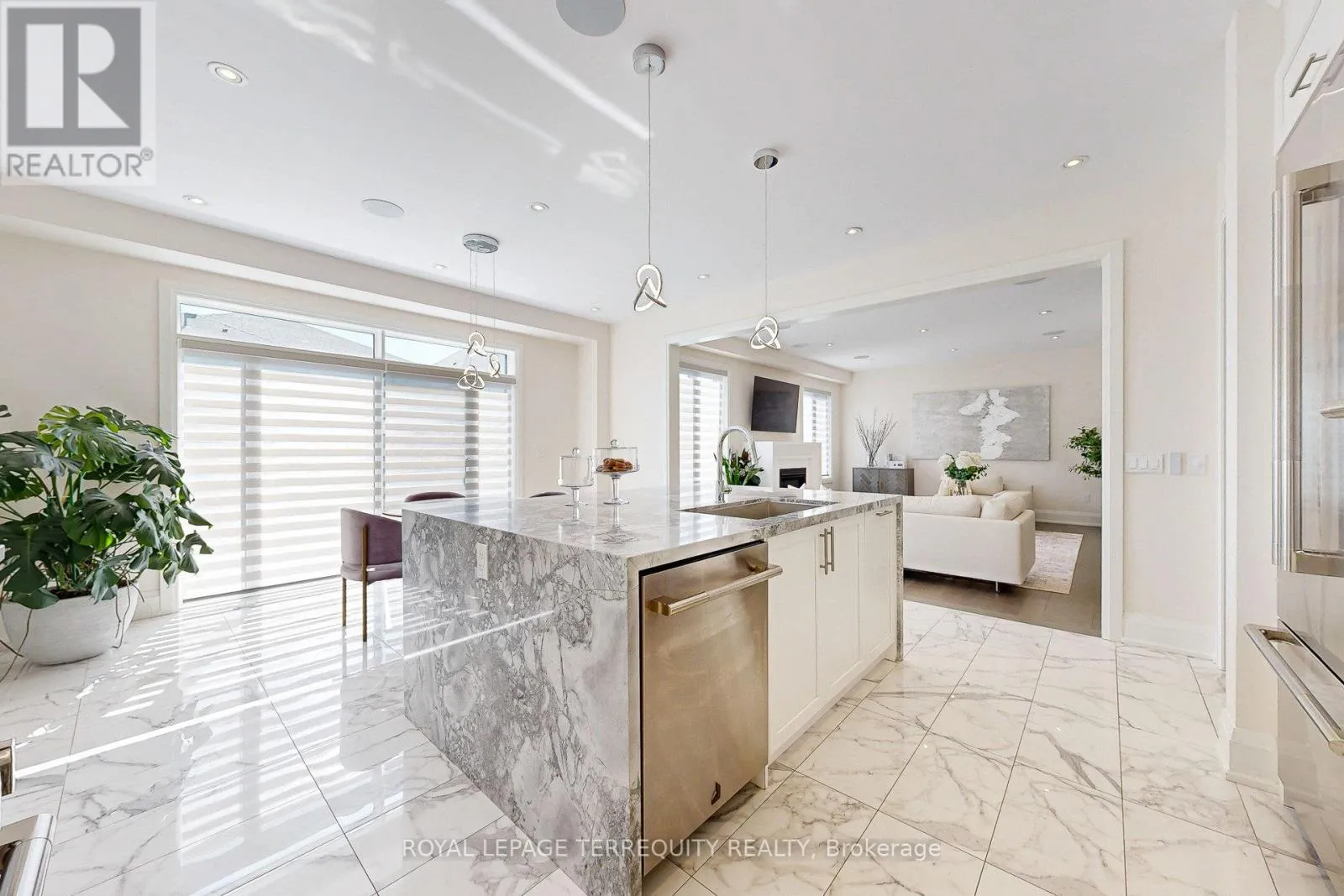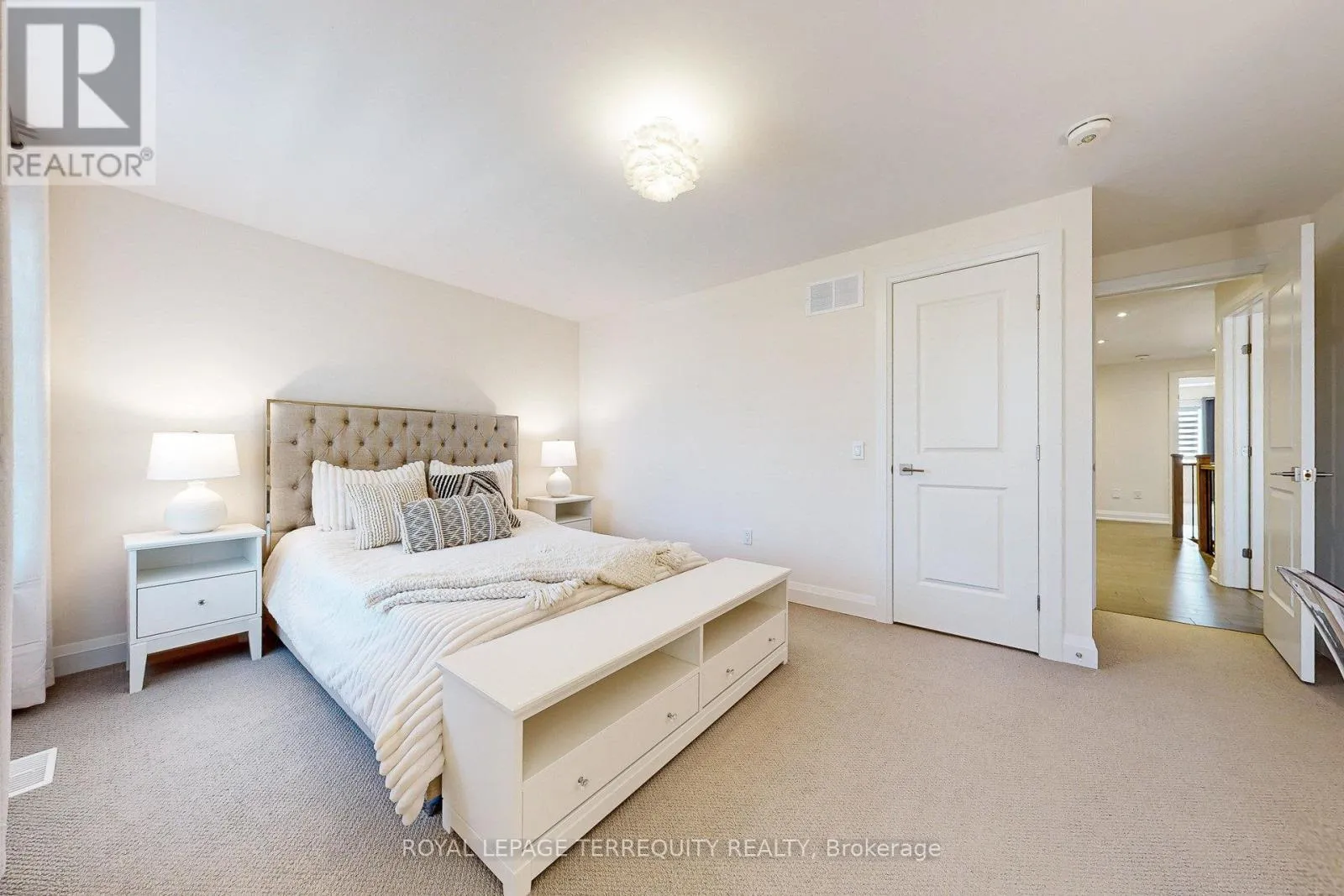 Cross Streets: Stonehenge and Raymond. ** Directions: Take Whittington from Raymond. An exceptional custom home at 52 Lightfeather Place, tucked within the coveted Tiffany Hills enclave of Ancaster is for sale. This sophisticated residence blends high-end finishes with smart-home technology, offering a turnkey experience for the discerning buyer. Step inside to discover 6" baseboards on the main floor, matched with an elegant spindle railing detail. The home is lit throughout by recessed lighting (a $30,000 install) along with decorative pendulum fixtures in hallways, kitchen, and baths. Even the showers boast dedicated ceiling lights + ceiling tile to accentuate your spa-like experience. A complete Louvolite electronic blind system is integrated throughout with blackout blinds in all bedrooms allowing effortless light control at the touch of a button. The open-concept kitchen is nothing short of remarkable: a large marble waterfall island with storage under the breakfast bar, oversized undermount sink. Upgraded backsplash, pot-filler, 12"x24" tile floors, and full suite of Jennair appliances (microwave/convection oven, 6-burner gas range, dishwasher, built-in espresso machine, plus a bar/wine fridge in the servery). A 36" built-in hood is seamlessly integrated into custom cabinetry. The servery also received added upper cabinets as an upgrade. Entertainment is front and centre: surround sound wiring on the main-floor family room, plus a sound system with eight main-floor speakers and one in the primary ensuite bathroom. Hardwood floors in a subtle grey tone drift through the main level, with upgraded tile in bathrooms. The fireplace is crowned by a custom mantle upgrade to elevate the focal point of the great room. Security is robust with six Hikvision hardwired cameras with recording, supplemented by a Ring doorbell. Outdoors, enjoy a beautifully laid interlock patio, professional landscaping, and ambient soffit lighting around the perimeter. (id:27476)