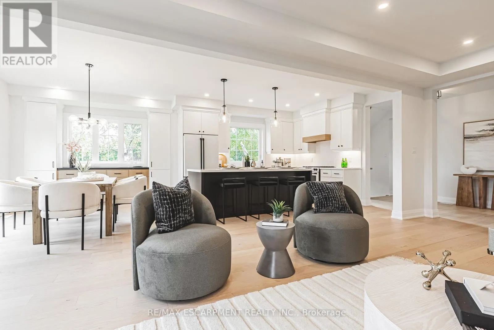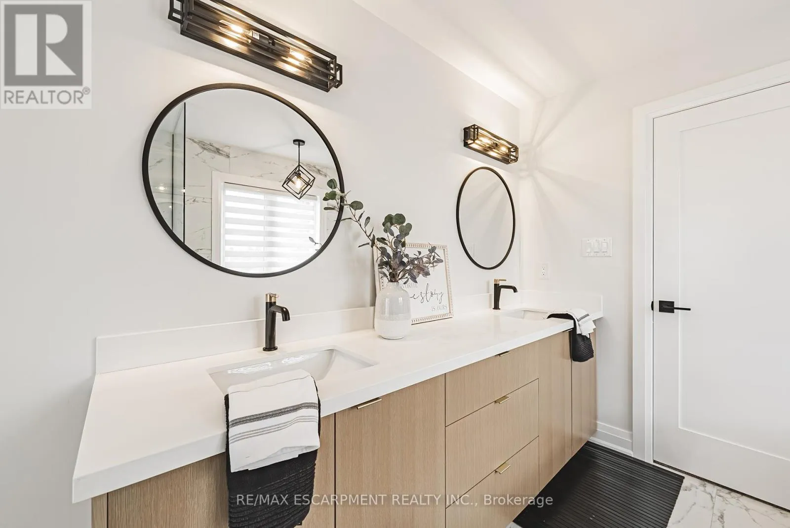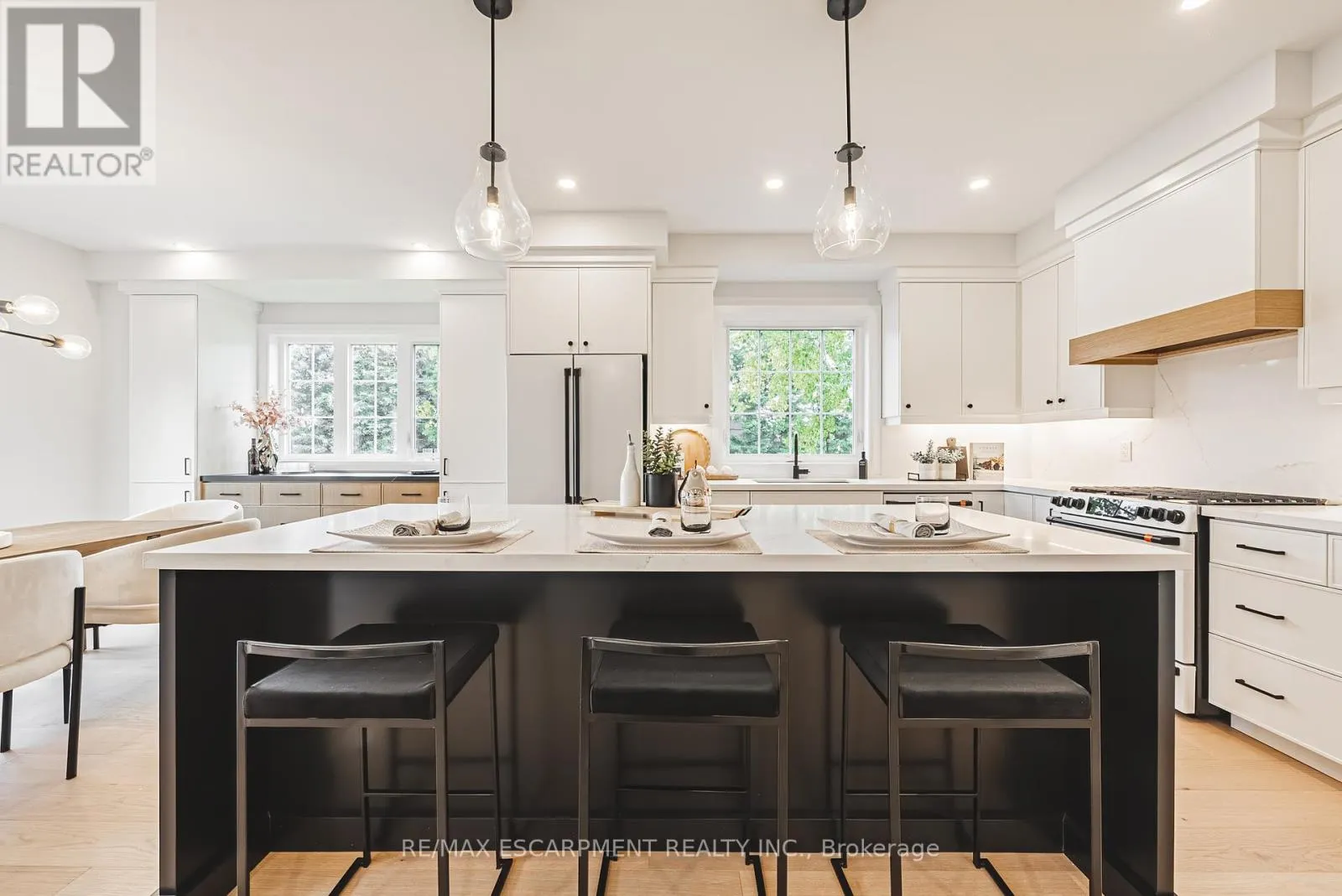 Twenty Rd Welcome to this beautifully crafted, never-lived-in model home that exemplifies modern luxury and thoughtful design. From the moment you step inside, you're greeted by an expansive open-concept layout that flows effortlessly throughout the main floor. Elegant wide-plank hardwood floors extend from the living area into the heart of the home - a true showpiece kitchen featuring white chef-grade appliances, quartz countertops, and a matching quartz backsplash. A sleek linear fireplace with a quartz surround adds warmth and sophistication to the main living space, perfect for entertaining or cozy nights in. The grand entryway features large-format tiles, adding both durability and style to this welcoming space. Upstairs, discover four spacious bedrooms, including two that share a convenient Jack & Jill bathroom, an additional full bath, and a luxurious primary suite complete with a spa-inspired ensuite. An upper-level family room offers additional living space and boasts a custom built-in entertainment center, ideal for relaxing or hosting guests. The fully finished 9' basement expands your living space with a large rec area, a wet bar, and a full bathroom, making it perfect for entertaining, a home gym, or multigenerational living. Don't miss your chance to own this exceptional, turnkey home that blends upscale finishes with everyday functionality in every detail. (id:27476)