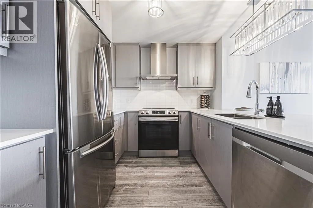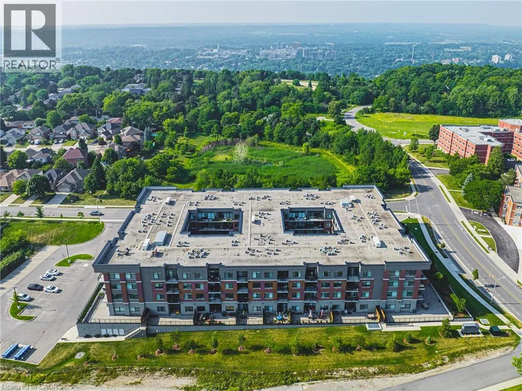 Scenic Dr to Sanatorium Rd to Redfern Ave Welcome to exceptional living in Hamiltonâs highly sought-after Mountview neighbourhood, where contemporary design meets everyday comfort. This beautifully appointed 2 bedroom, 2 bathroom condo offers an airy open-concept layout with stylish finishes throughout. The modern kitchen boasts sleek cabinetry, stainless steel appliances, and a breakfast bar that flows seamlessly into the spacious living and dining area â ideal for entertaining or relaxing at home. The primary suite features a walk-in closet and private ensuite, while the second bedroom provides flexible space for guests or a home office. Step out to your private terrace with southern exposure and enjoy tranquil views. Residents enjoy premium amenities including a fitness centre, theatre, games room, party lounge, and outdoor BBQ area. Perfectly located near scenic trails, waterfalls, parks, shops, and transit, this home offers the ultimate blend of comfort, convenience, and elevated condo living on the Hamilton Mountain. (id:27476)