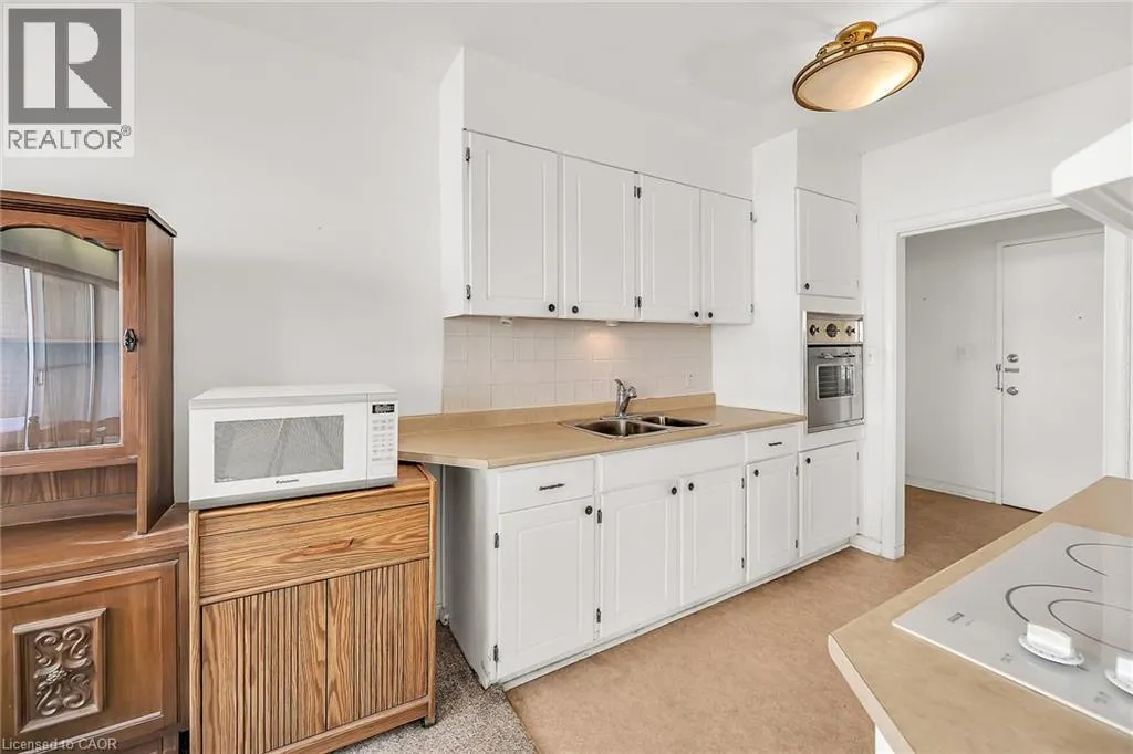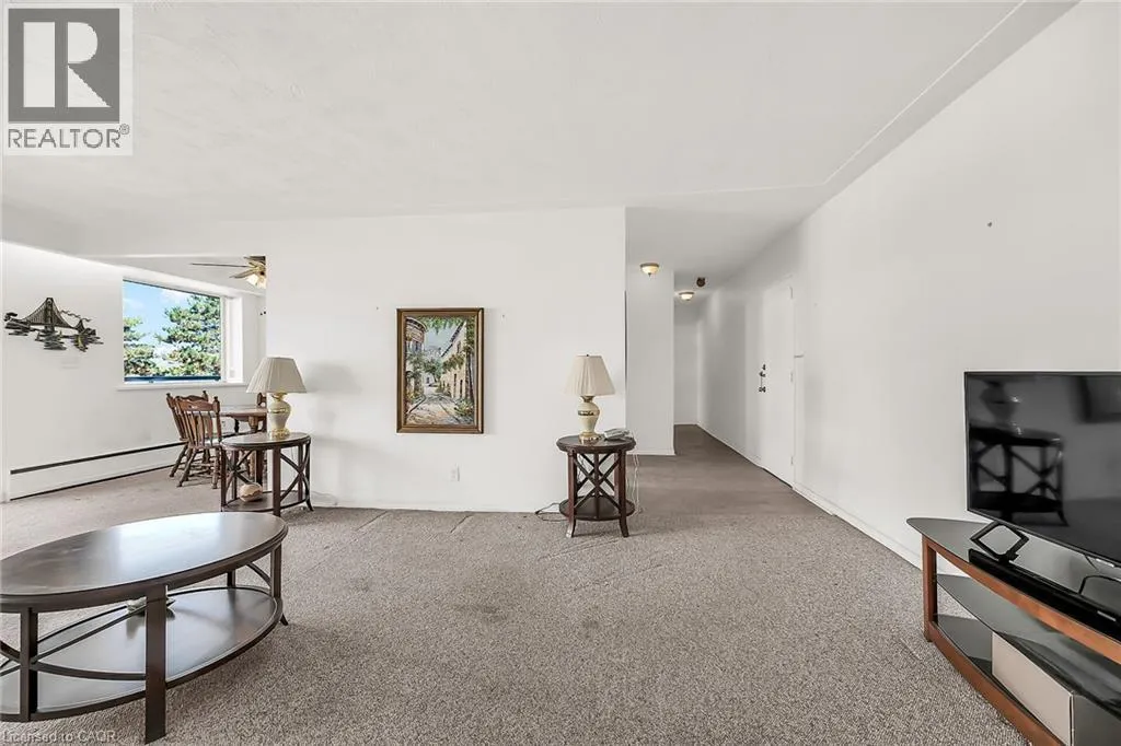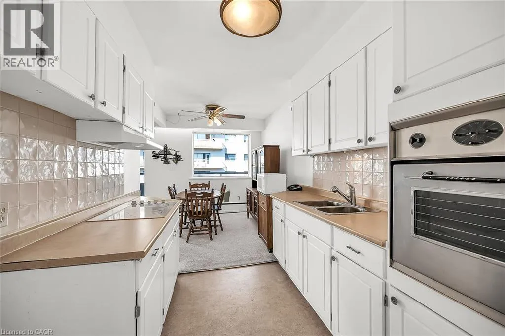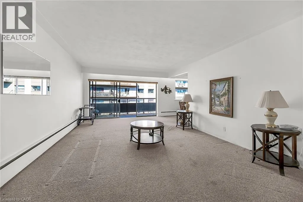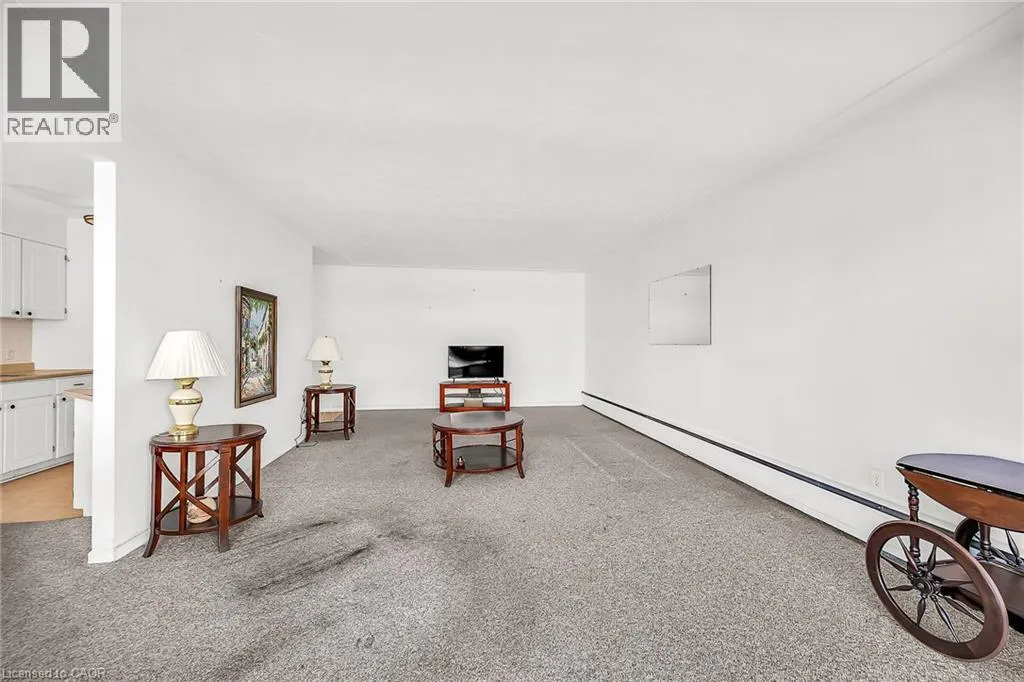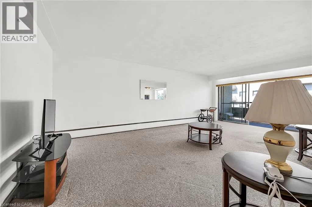 ON SOUTH SIDE OF QUEENSTON ROAD, BETWEEN POTRUFF ROAD & WOODMAN DRIVE Bright & spacious just over 1200 sq. ft. 2 bedroom condo unit in smaller 5 level building conveniently located in east Hamilton close to all amenities. This unit offers lots of natural light & a functional layout with plenty of closets. Generous sized living room with slider that opens to an ample sized 5'6 wide x 46'2 long balcony. Convenient dining area off bright white kitchen featuring double sink, ceramic backsplash, cooktop, built-in oven & vinyl flooring. Large carpeted primary bedroom with double closets. Good sized carpeted second bedroom. 5pc bath with double sinks & updated bathtub. Additional conveniences include storage locker & shared laundry on same floor as unit, as well as an assigned outdoor parking spot. Quick & easy access to Red Hill Valley Parkway & QEW. Property being sold as is. (id:27476)