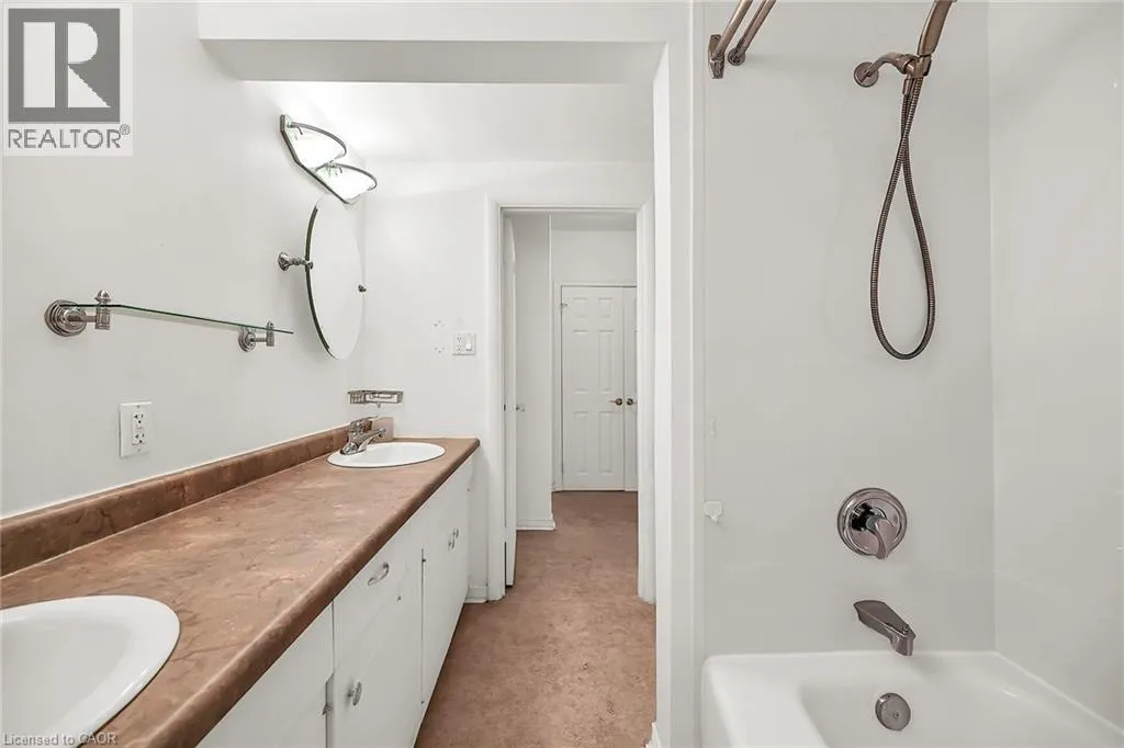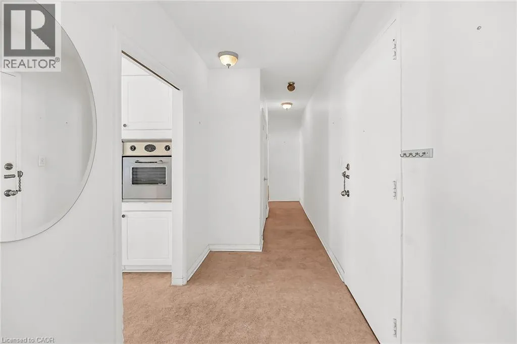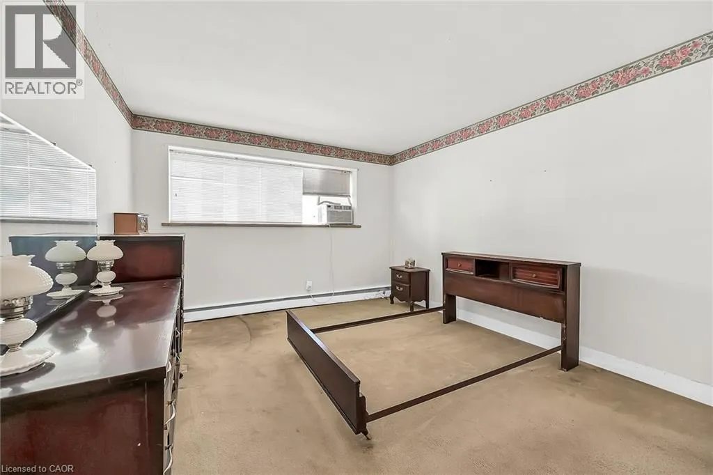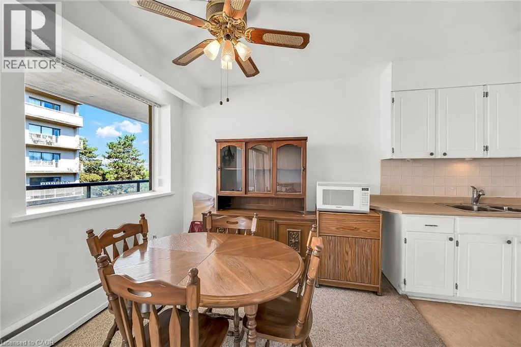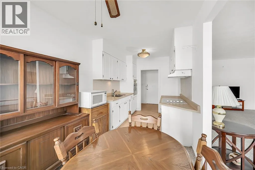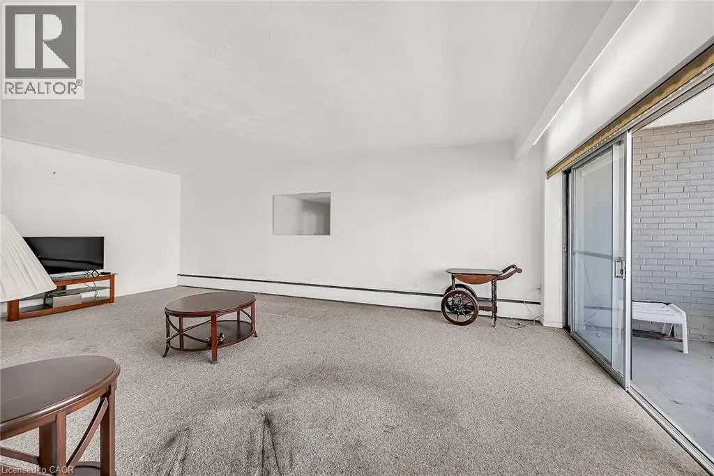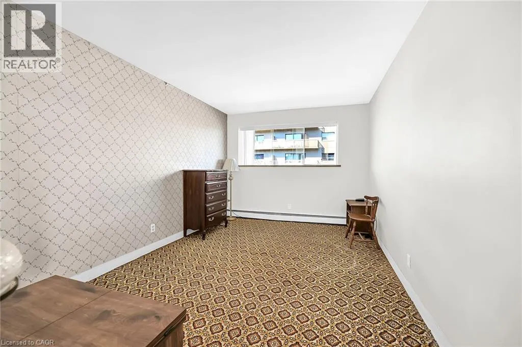 ON SOUTH SIDE OF QUEENSTON ROAD, BETWEEN POTRUFF ROAD & WOODMAN DRIVE Bright & spacious just over 1200 sq. ft. 2 bedroom condo unit in smaller 5 level building conveniently located in east Hamilton close to all amenities. This unit offers lots of natural light & a functional layout with plenty of closets. Generous sized living room with slider that opens to an ample sized 5'6 wide x 46'2 long balcony. Convenient dining area off bright white kitchen featuring double sink, ceramic backsplash, cooktop, built-in oven & vinyl flooring. Large carpeted primary bedroom with double closets. Good sized carpeted second bedroom. 5pc bath with double sinks & updated bathtub. Additional conveniences include storage locker & shared laundry on same floor as unit, as well as an assigned outdoor parking spot. Quick & easy access to Red Hill Valley Parkway & QEW. Property being sold as is. (id:27476)