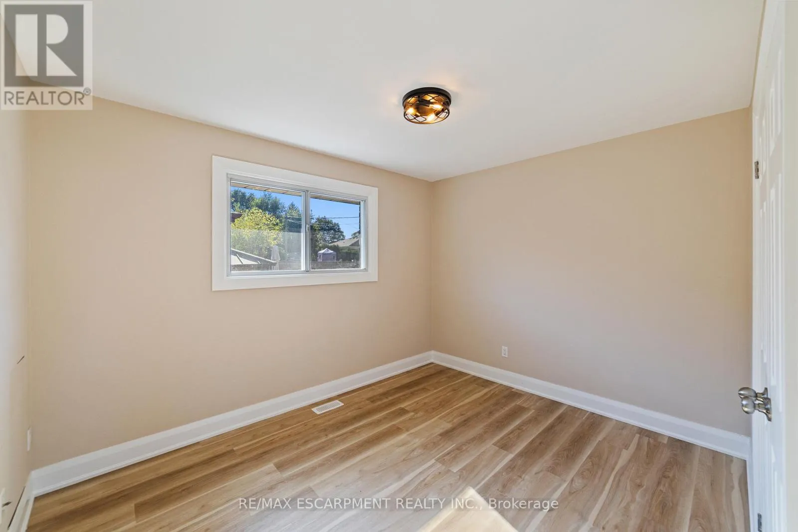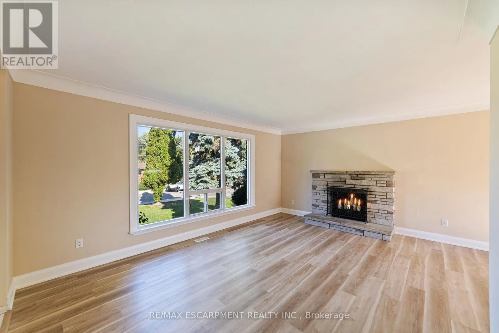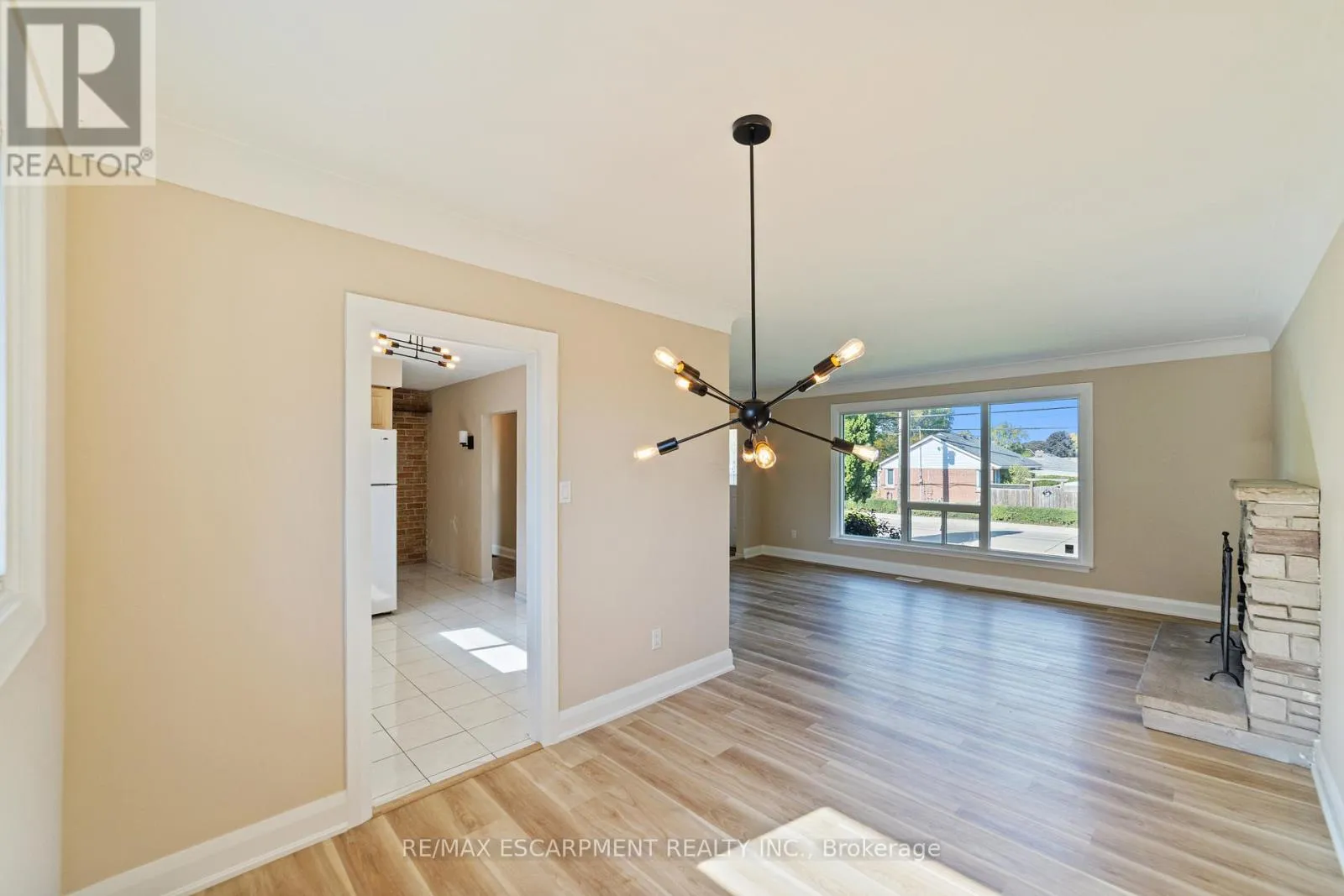 Cross Streets: West 17th. ** Directions: Mohawk Rd to North on Garth to East on Sanatorium. Beautiful all-brick bungalow on a corner lot in Hamilton's desirable West Mountain neighbourhood! This home offers fantastic curb appeal with a new fence, detached oversized garage (ideal for a workshop or hobby space), and a freshly painted interior with new flooring throughout. Bright and spacious main level featuring a cozy log fireplace, large windows, and updated light fixtures. Three bedrooms on the main floor plus a separate side entrance leading to a fully finished lower level- potential in law suite - complete with a full kitchen, living room, bedroom, and bathroom. Basement also features laundry, pot lights throughout, and a luxurious soaker tub. Carpet-free home with plenty of updates and move-in ready charm! (id:27476)