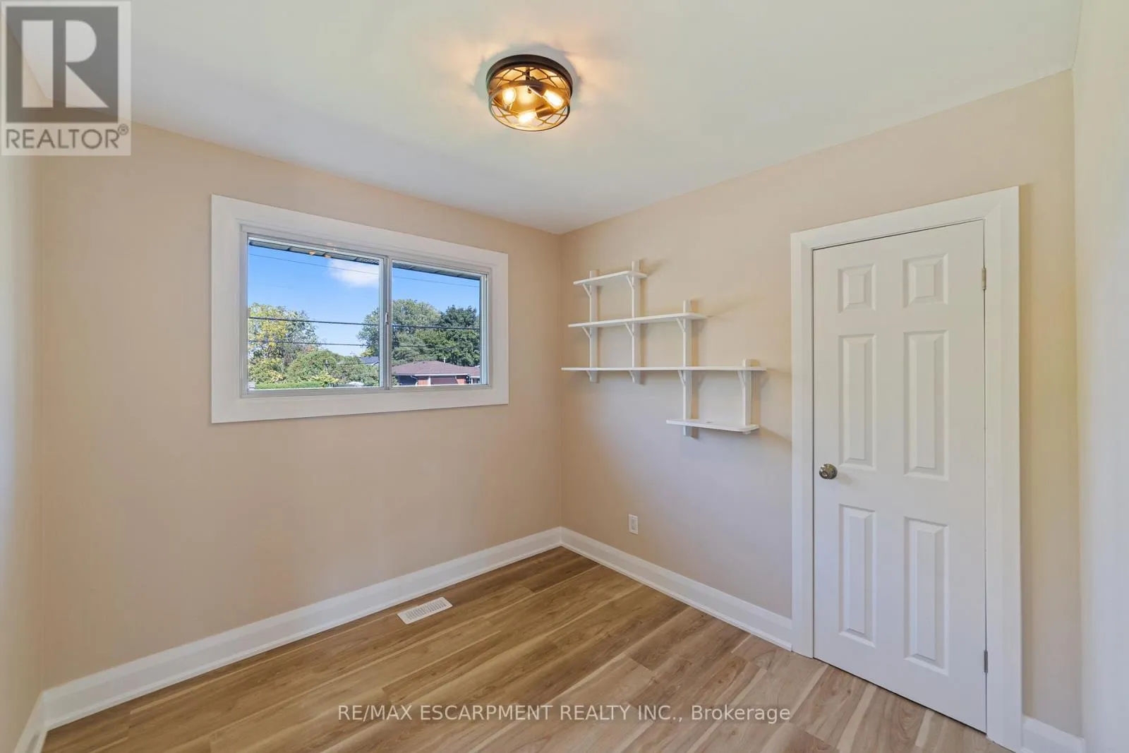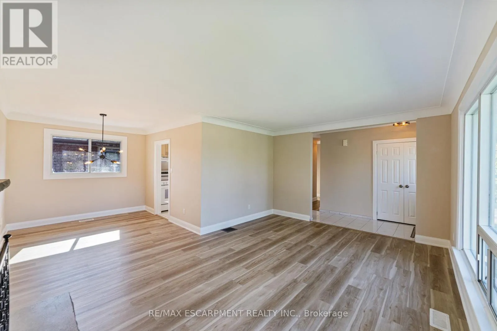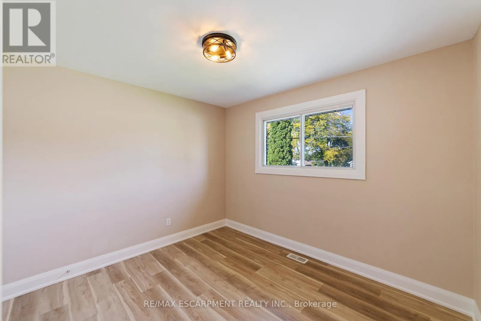 Cross Streets: West 17th. ** Directions: Mohawk Rd to North on Garth to East on Sanatorium. Beautiful all-brick bungalow on a corner lot in Hamilton's desirable West Mountain neighbourhood! This home offers fantastic curb appeal with a new fence, detached oversized garage (ideal for a workshop or hobby space), and a freshly painted interior with new flooring throughout. Bright and spacious main level featuring a cozy log fireplace, large windows, and updated light fixtures. Three bedrooms on the main floor plus a separate side entrance leading to a fully finished lower level- potential in law suite - complete with a full kitchen, living room, bedroom, and bathroom. Basement also features laundry, pot lights throughout, and a luxurious soaker tub. Carpet-free home with plenty of updates and move-in ready charm! (id:27476)