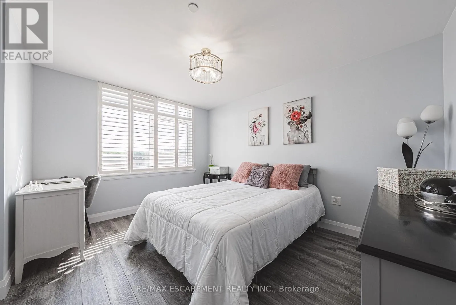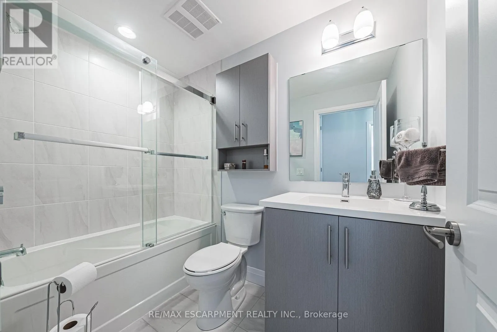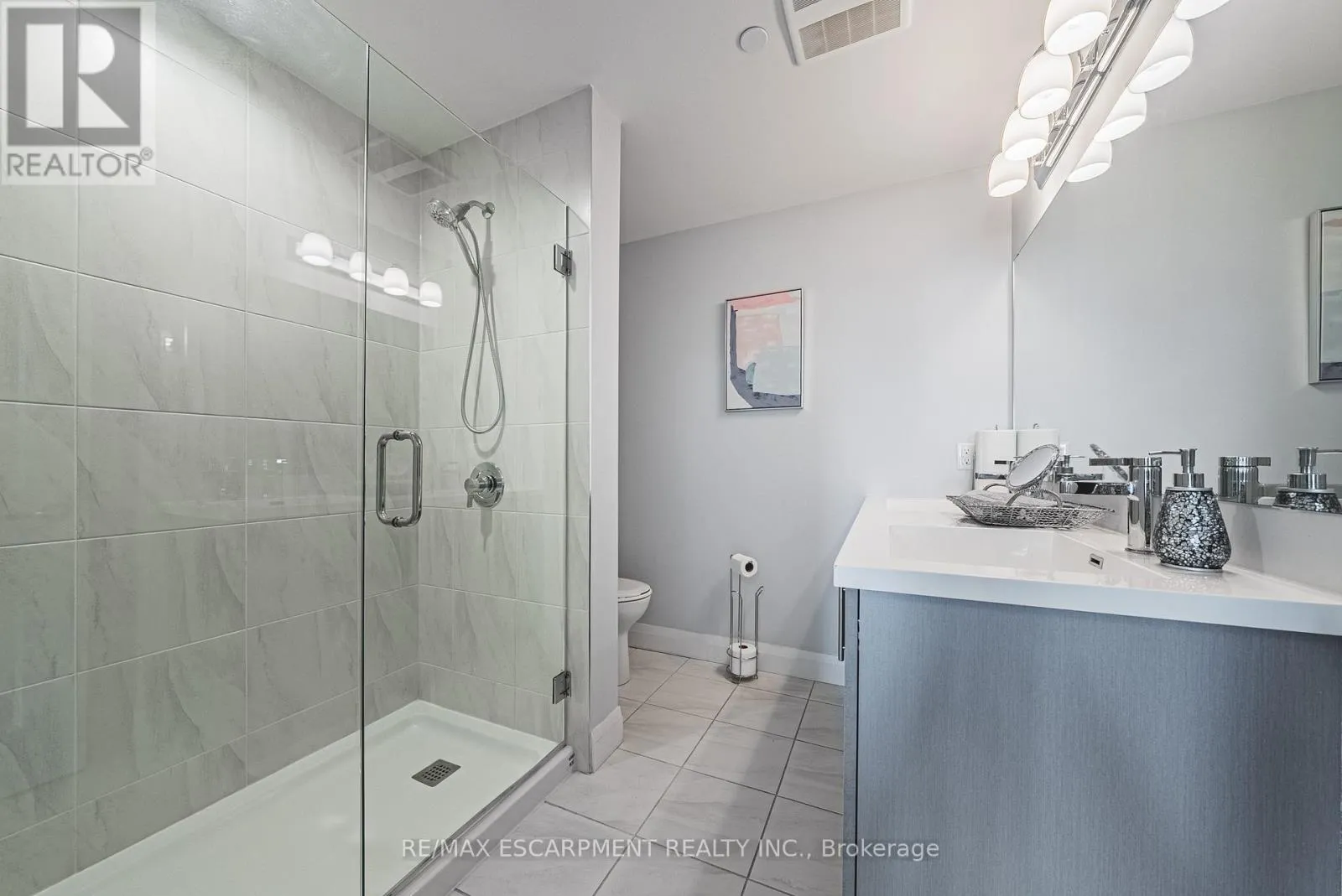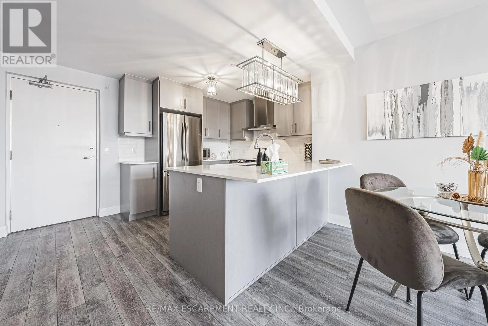 Cross Streets: Scenic Dr & Sanatorium Rd. ** Directions: Scenic Dr to Sanatorium Rd to Redfern Ave. Welcome to exceptional living in Hamiltons highly sought-after Mountview neighbourhood, where contemporary design meets everyday comfort. This beautifully appointed 2 bedroom, 2 bathroom condo offers an airy open-concept layout with stylish finishes throughout. The modern kitchen boasts sleek cabinetry, stainless steel appliances, and a breakfast bar that flows seamlessly into the spacious living and dining area ideal for entertaining or relaxing at home. The primary suite features a walk-in closet and private ensuite, while the second bedroom provides flexible space for guests or a home office. Step out to your private terrace with southern exposure and enjoy tranquil views. Residents enjoy premium amenities including a fitness centre, theatre, games room, party lounge, and outdoor BBQ area. Perfectly located near scenic trails, waterfalls, parks, shops, and transit, this home offers the ultimate blend of comfort, convenience, and elevated condo living on the Hamilton Mountain. (id:27476)