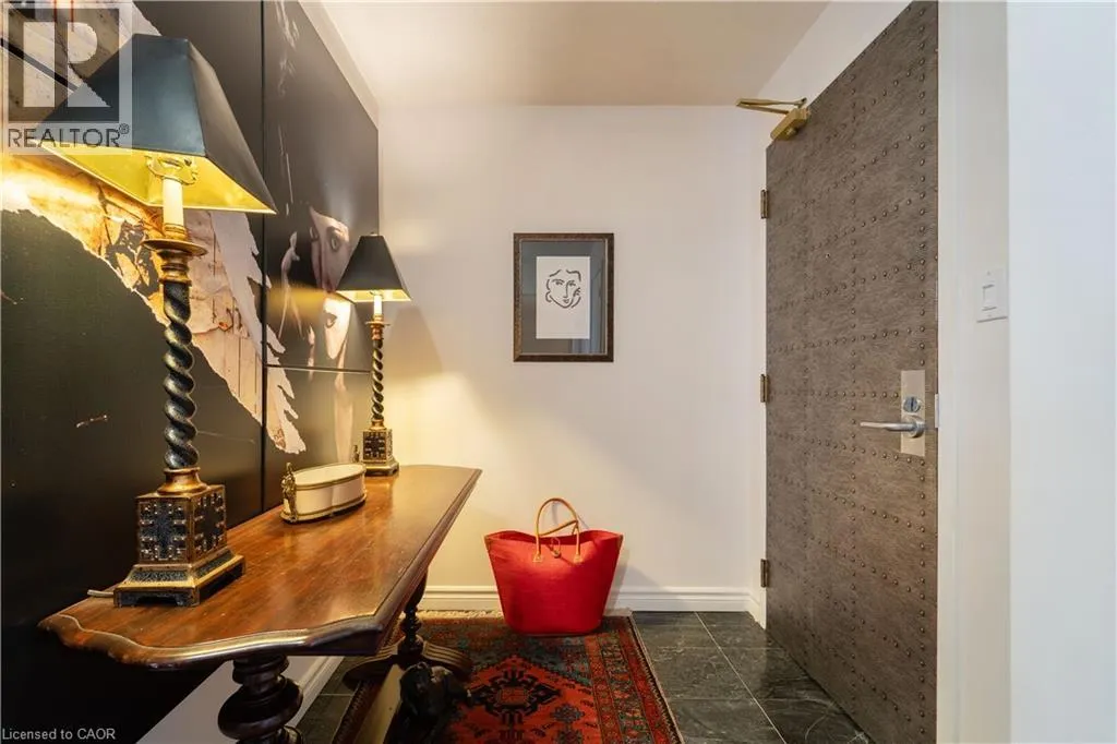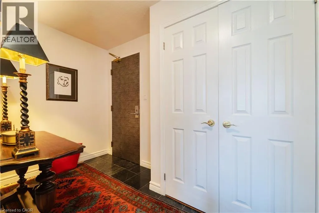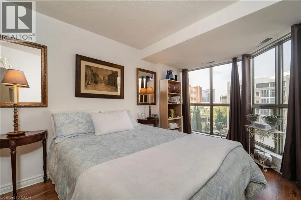 Main st to Caroline , corner of JACKSON ST The Bentley, conveniently located in downtown Hamilton, is within walking distance to the downtown core and the vibrant shops and dining on Locke St. This spacious, bright unit features new windows throughout, enhancing the natural light and energy efficiency. The large living room overlooks downtownâperfect for entertaining. The primary bedroom includes a generous walk-in closet and a full ensuite bath with a jetted tub. The second bedroom also offers a large walk-in closet, providing ample storage. The balcony off the living room (approximately 12' x 6') is ideal for enjoying warm summer evenings or morning coffee. The unit includes one underground parking space. A brand-new, larger washer will also be installed, adding extra convenience for residents. The gym has been recently renovated, and the party room features a full kitchen with ample seating for large family gatherings. You owe it to yourself to check this one out! (id:27476)