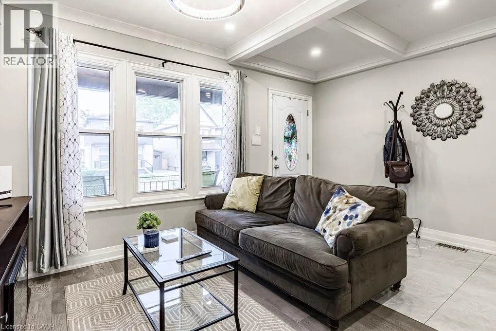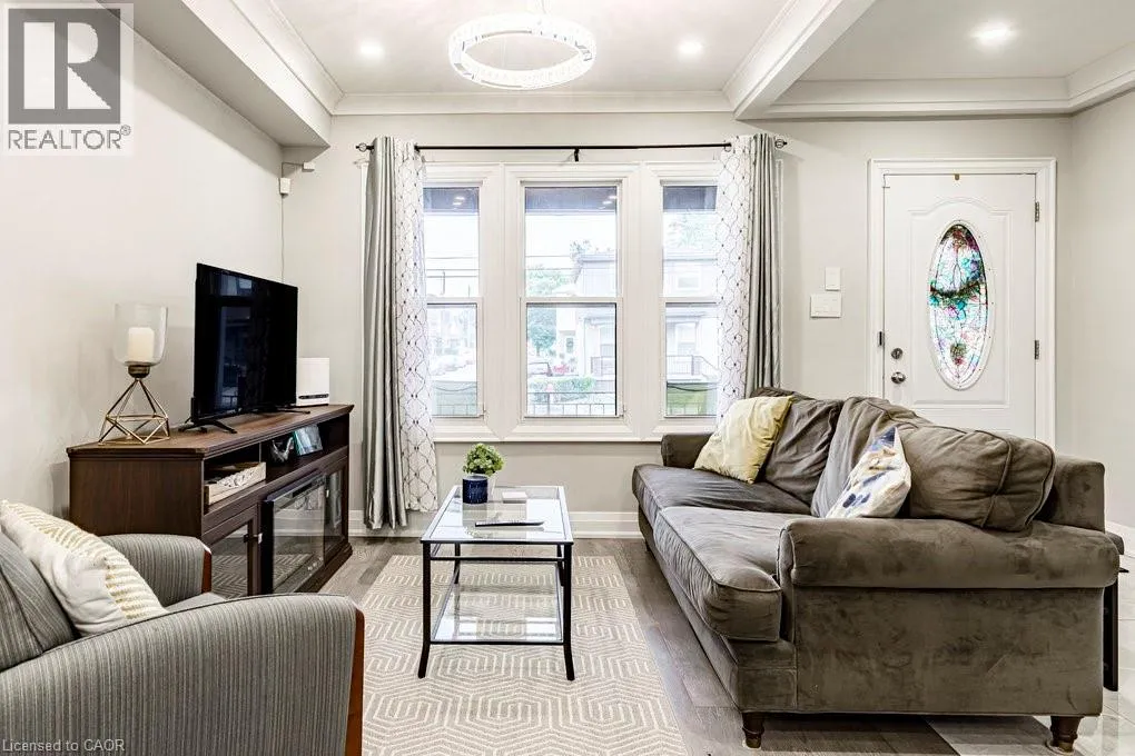 Cannon Street Welcome to 67 Gage Ave North. This beautifully and extensively renovated home combines modern upgrades with timeless charm. Step inside to an open-concept main floor featuring engineered wood flooring, crown moulding, pot lights throughout, a cozy electric fireplace and convenient powder room. The stunning eat-in kitchen is complete with quartz countertops, stylish backsplash, and stainless steel appliances â perfect for both entertaining and everyday living. Upstairs you'll find your spacious primary bedroom that boasts a large walk-in closet and 3 piece ensuite bathroom with high-quality finishes. 2 additional bedrooms and another updated 3 piece bathroom complete your 2nd story. The lower level offers a 4th bedroom, spacious living room, 3 piece bathroom and kitchenette which offers in-law suite potential, ideal for extended family or guests. Outside, enjoy a private, low-maintenance yard with room for relaxing or entertaining. Located in a vibrant, family-friendly neighbourhood just steps from Gage Park, trendy Ottawa St, Hamilton Stadium, Bernie Morelli Recreation Centre and future LRT â this move-in ready home is a true gem in the heart of Hamilton. (id:27476)