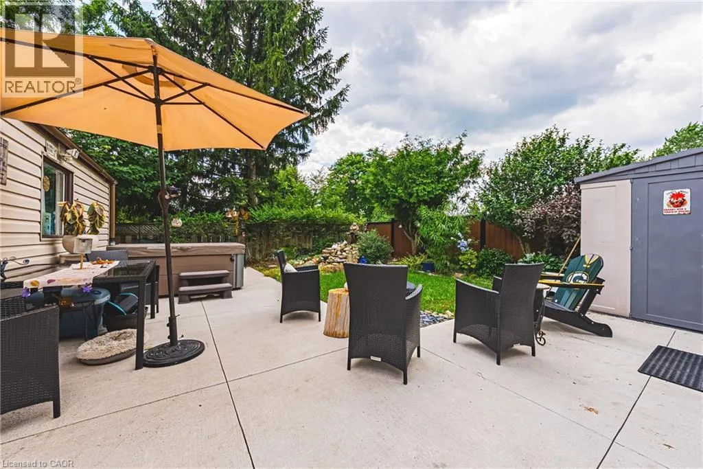 UPPER GAGE TO THORLEY DR, RIGHT ON PALMER LEFT ON BEHAN STREET, RIGHT ON BILLINGTON CRESCENT Welcome to this spacious and well-maintained 3+1 bedroom bungalow, nestled in the family-friendly East Mountain Berrisfield neighbourhood. The main floor has been beautifully updated including new flooring, an open concept configuration from the kitchen to the living area and the addition of a back entrance to the rear yard. Beautiful living space with 3 generously sized bedrooms, 4 piece bath, bright kitchen with side entrance and spacious dining room/living room. The convenient side entrance provides excellent potential for a private in-law suite with the fully finished lower level. Freshly painted the sprawling Rec room with kitchenette, cozy gas fireplace, additional bedroom, 3-piece bathroom, laundry area, and ample storage space make the lower level wonderful extra space. Outside, you'll find a Zen-like backyard retreat with water feature, updated concrete patio (â23), hot tub set-up and stand alone 1.5-car garage (new drywall & insulation) -- ideal for the car enthusiast or hobbyist. Located just a short walk to parks and schools, and only a two-minute drive to the Linc/403, this home is perfect for commuters, growing families, or retirees. Roof â22. Room sizes approx. (id:27476)