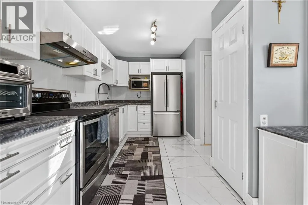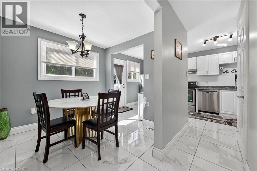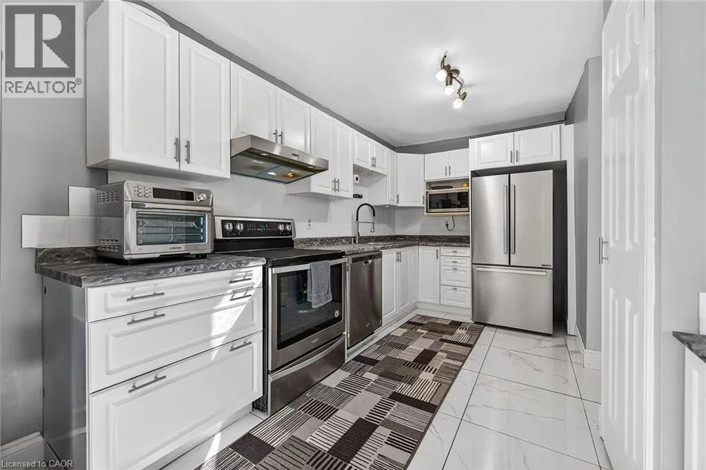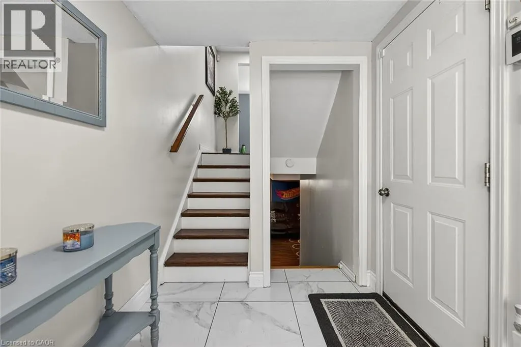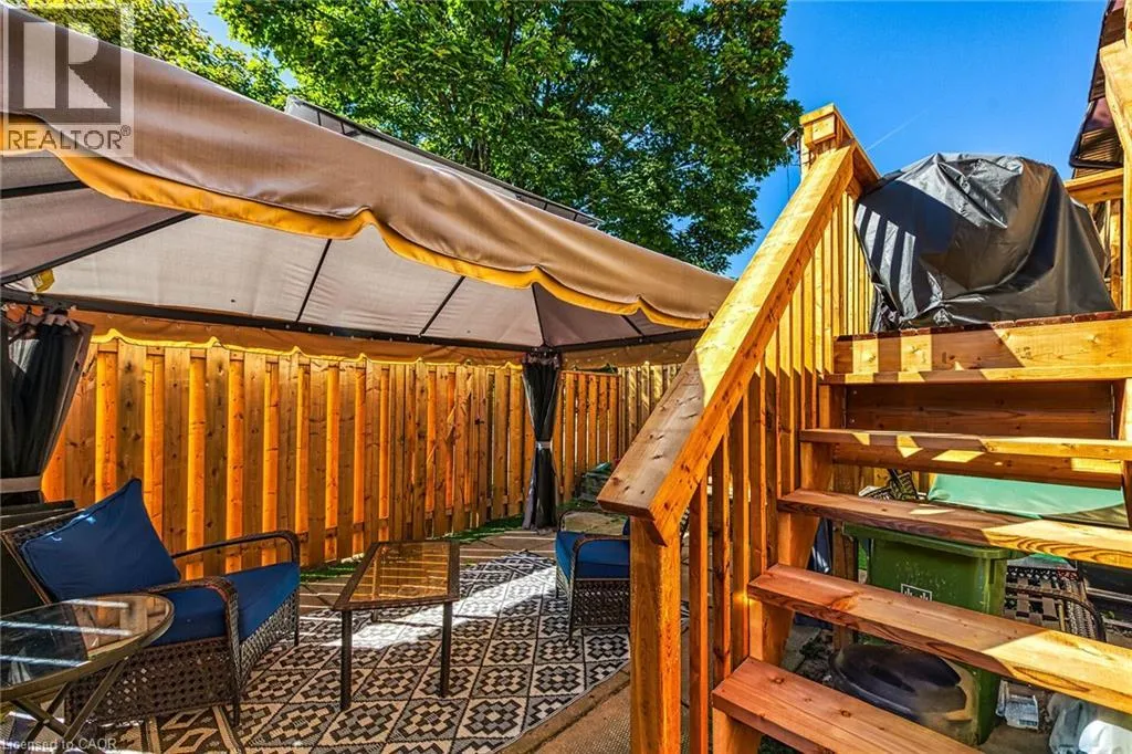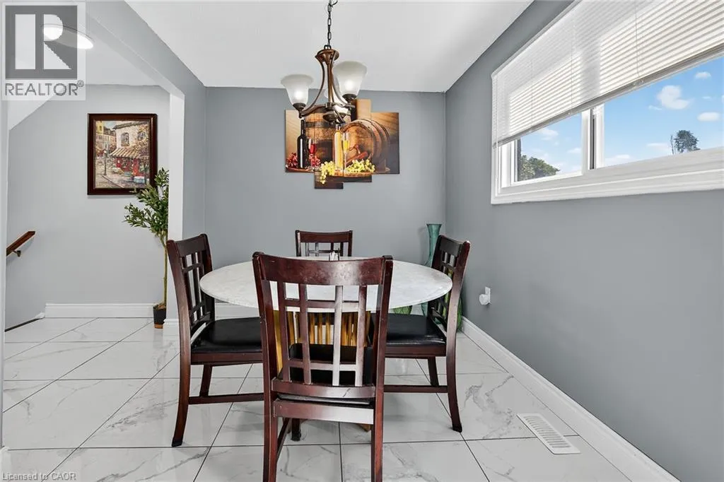 Off Stone Church Road West between Garth St & Courtland Ave A rare opportunity to own this well-maintained end-unit townhome, perfectly suited for growing families or first-time buyers. This residence boasts spacious rooms, new windows installed in 2024, a fence and deck constructed in 2024, and tastefully designed porcelain tile, engineered, and laminate flooring throughout. The finished basement features a fantastic recreational area, laundry facilities, and ample storage space. The main floor is highlighted by a large kitchen that opens onto a private rear patio with a gazebo, a separate dining room, a two-piece powder room, and a spacious living area. The upper floors are comprised of four spacious bedrooms and a four-piece bathroom. Additional features include a single-car garage with interior access, a convenient storage closet near the front door, private parking, and ample parking for visitors. Located in a highly sought-after West Mountain neighborhood, this property is ideally positioned near Ancaster and offers easy access to The Lincoln Alexander Parkway, Highway 403, Numerous Shopping Centers, Schools, Parks and Public Transportation. A must see!! (id:27476)