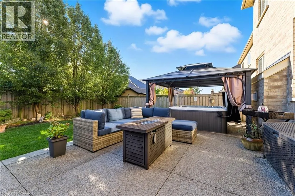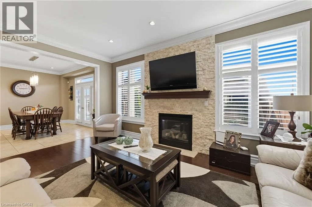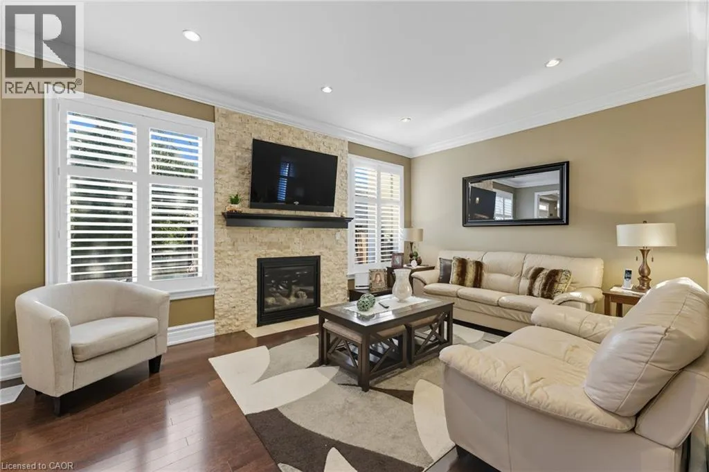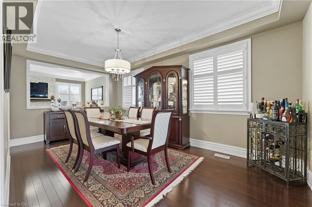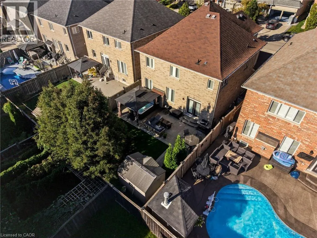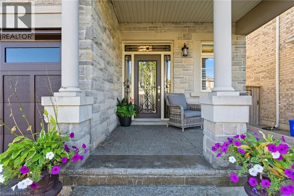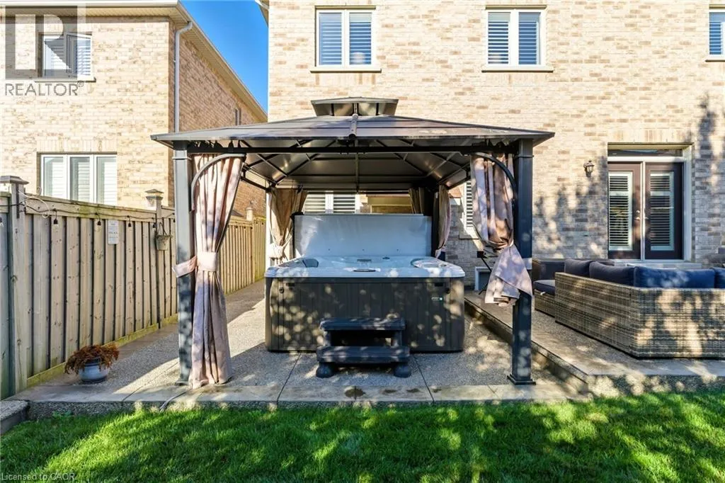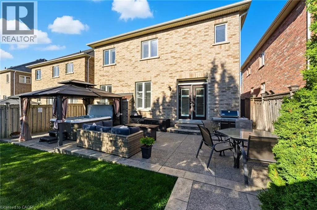 Head South on Garth St, turn right on Rymal Rd W, turn left on Hazelton Ave, turn left on Alessio Dr, turn left on Morning Mist Stunning home in the desirable EdenPark development by Spallacci Homes. Welcome to this beautifully maintained 4 bdrm family home located in the highly sought after EdenPark community. Situated just minutes from parks, shopping, schools and with quick access to the Linc, this home offers the perfect blend of convenience and comfort. Step inside and be greeted by an elegant main floor featuring rich hardwood flooring, crown molding, and an open concept design that flows seamlessly into the family room. The spacious kitchen boasts luxurious granite counter tops, sleek SS appliances, and is perfectly positioned to overlook the cozy family room complete with a gas fp. The abundance of pot lights throughout the space adds to the welcoming atmosphere. Upstairs, you'll find 4 generously sized bedrooms, all featuring plush carpet, providing comfort and space for the entire family. The upper hallway also showcases hardwood flooring, adding to the home's sophisticated appeal. In the fully finished basement you'll find a spacious rec-room with a striking feature wall, an elec. fireplace, and a wet bar with a wine fridge, making it the perfect spot for family movie nights or entertaining friends. A bright 3pc bathroom with a glass shower completes the lower level. Outside the professionally landscaped yard is an absolute showstopper, featuring an aggregate driveway and walkways, as well as a beautiful backyard patio with a hot tub, ideal for relaxing after a long day. This home has been meticulously cared for by the original owners, ensuring it's in pristine condition. Don't miss the chance to make this stunning property your forever home. (id:27476)