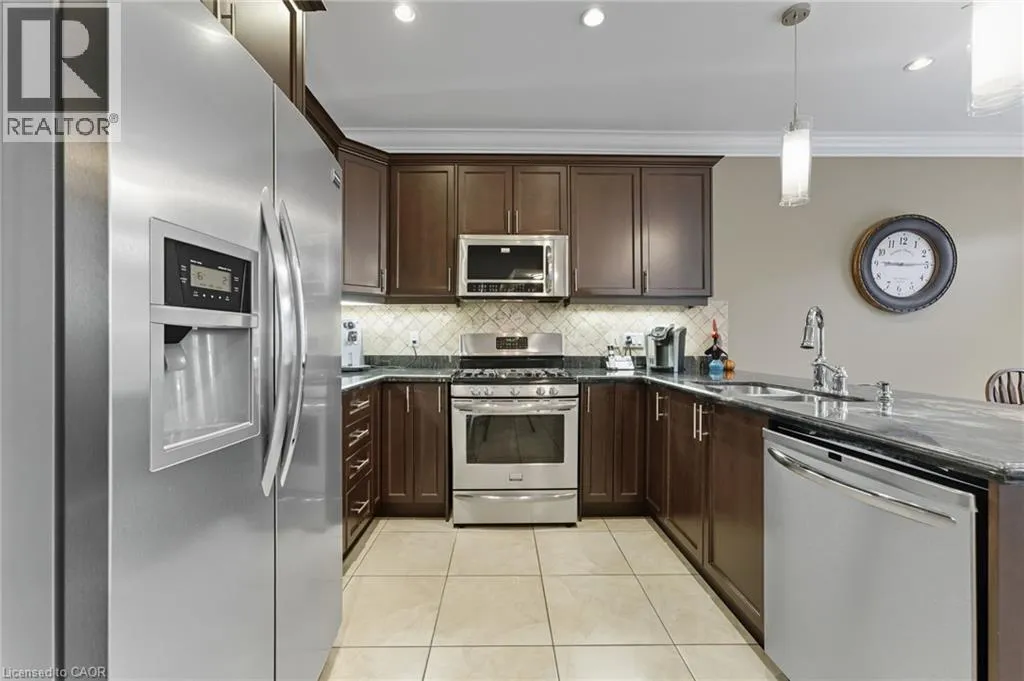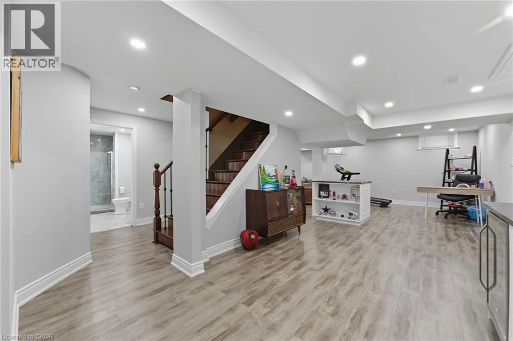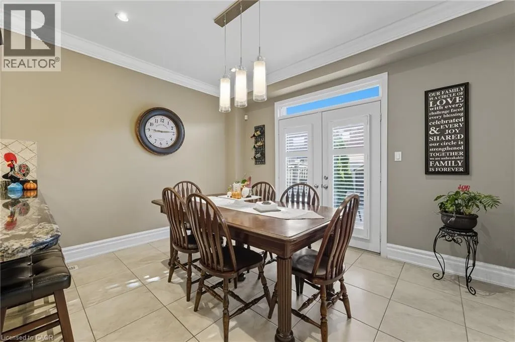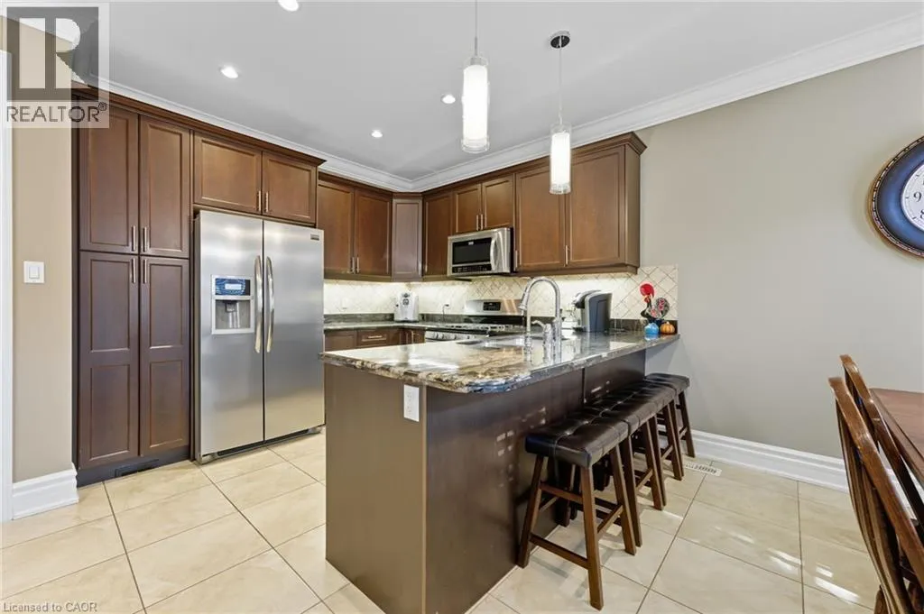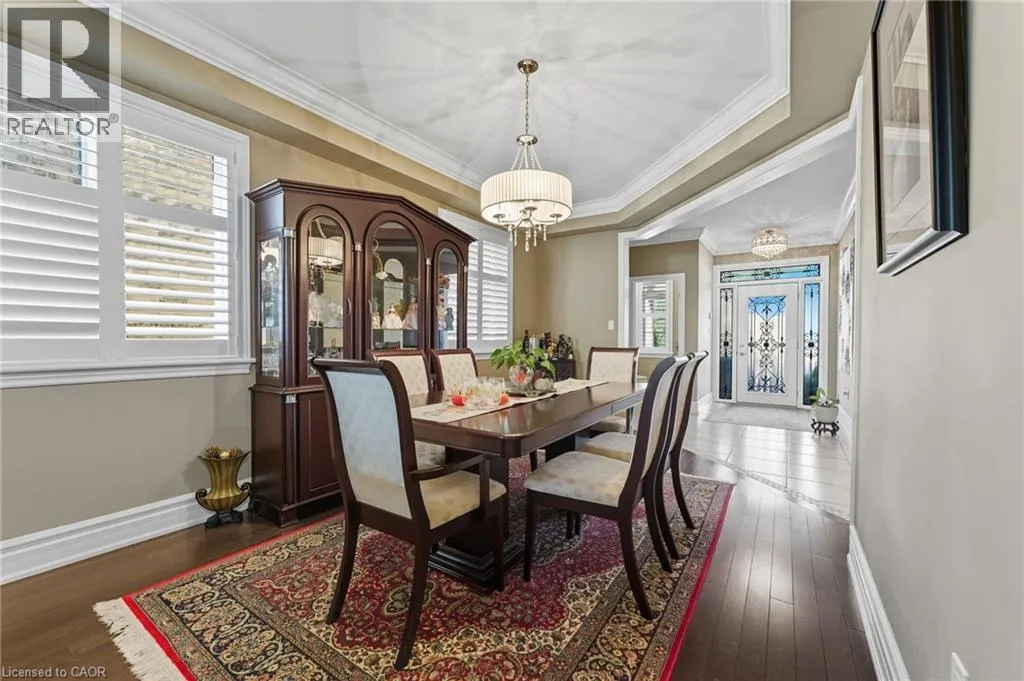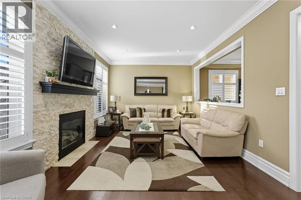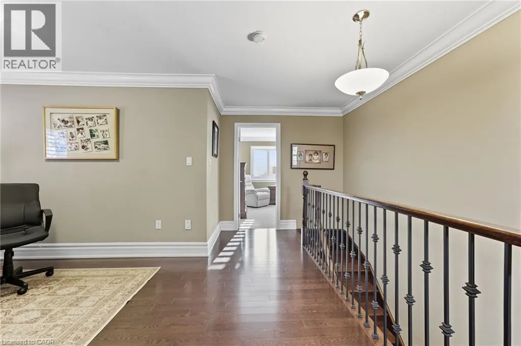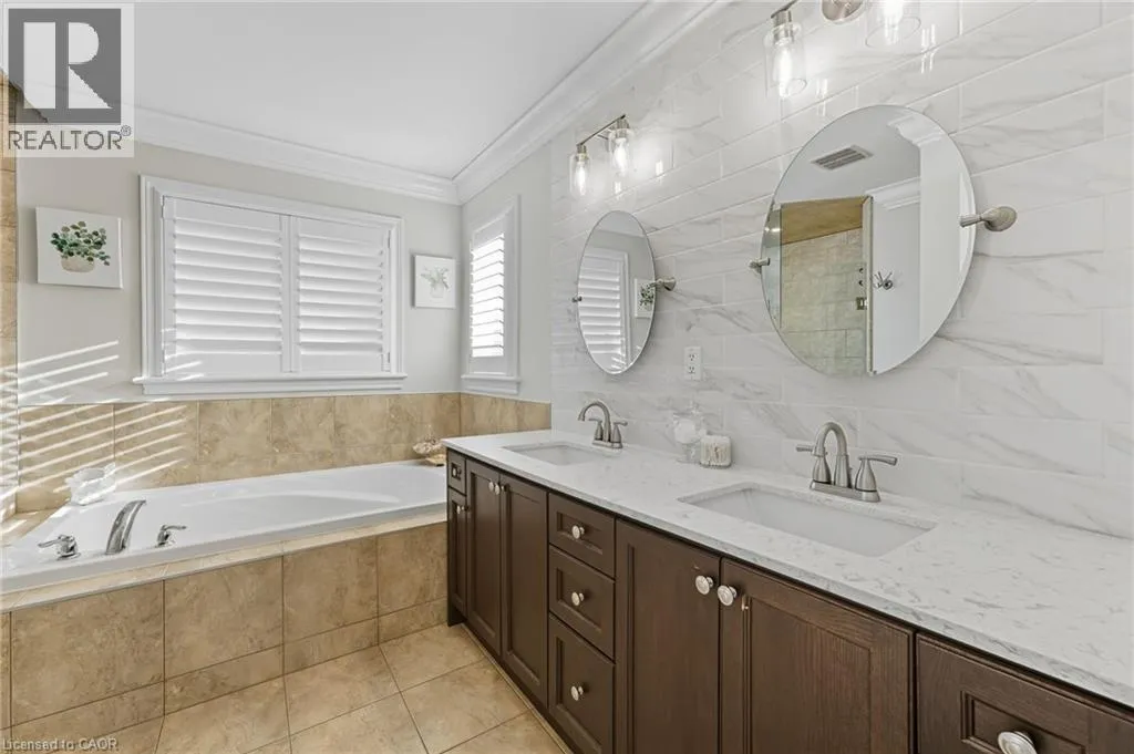 Head South on Garth St, turn right on Rymal Rd W, turn left on Hazelton Ave, turn left on Alessio Dr, turn left on Morning Mist Stunning home in the desirable EdenPark development by Spallacci Homes. Welcome to this beautifully maintained 4 bdrm family home located in the highly sought after EdenPark community. Situated just minutes from parks, shopping, schools and with quick access to the Linc, this home offers the perfect blend of convenience and comfort. Step inside and be greeted by an elegant main floor featuring rich hardwood flooring, crown molding, and an open concept design that flows seamlessly into the family room. The spacious kitchen boasts luxurious granite counter tops, sleek SS appliances, and is perfectly positioned to overlook the cozy family room complete with a gas fp. The abundance of pot lights throughout the space adds to the welcoming atmosphere. Upstairs, you'll find 4 generously sized bedrooms, all featuring plush carpet, providing comfort and space for the entire family. The upper hallway also showcases hardwood flooring, adding to the home's sophisticated appeal. In the fully finished basement you'll find a spacious rec-room with a striking feature wall, an elec. fireplace, and a wet bar with a wine fridge, making it the perfect spot for family movie nights or entertaining friends. A bright 3pc bathroom with a glass shower completes the lower level. Outside the professionally landscaped yard is an absolute showstopper, featuring an aggregate driveway and walkways, as well as a beautiful backyard patio with a hot tub, ideal for relaxing after a long day. This home has been meticulously cared for by the original owners, ensuring it's in pristine condition. Don't miss the chance to make this stunning property your forever home. (id:27476)