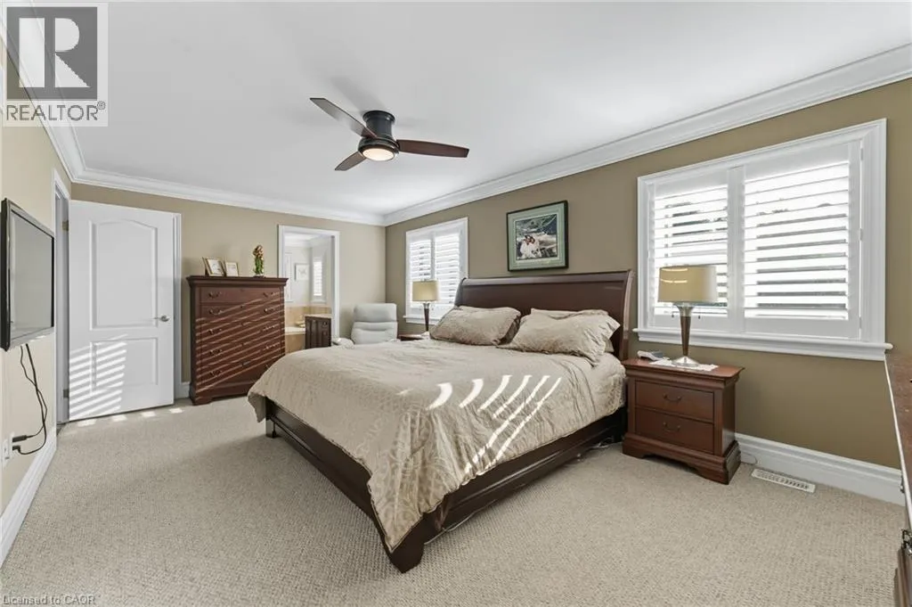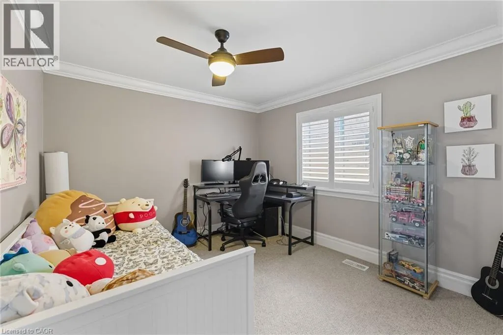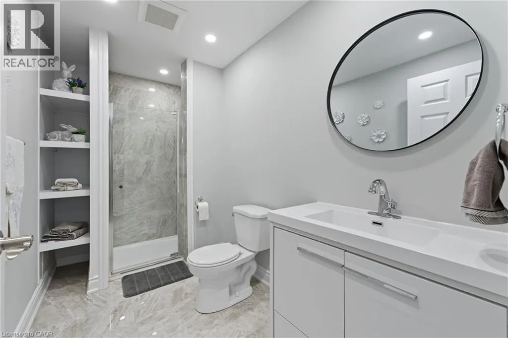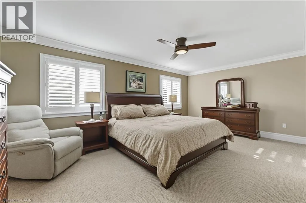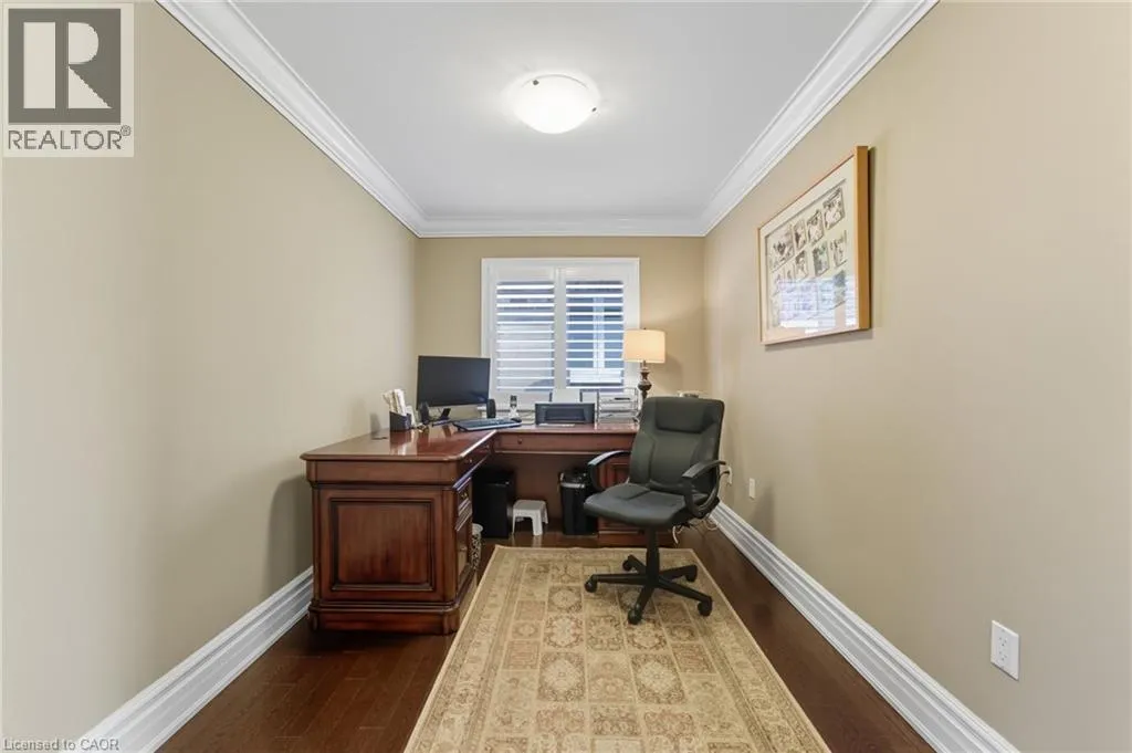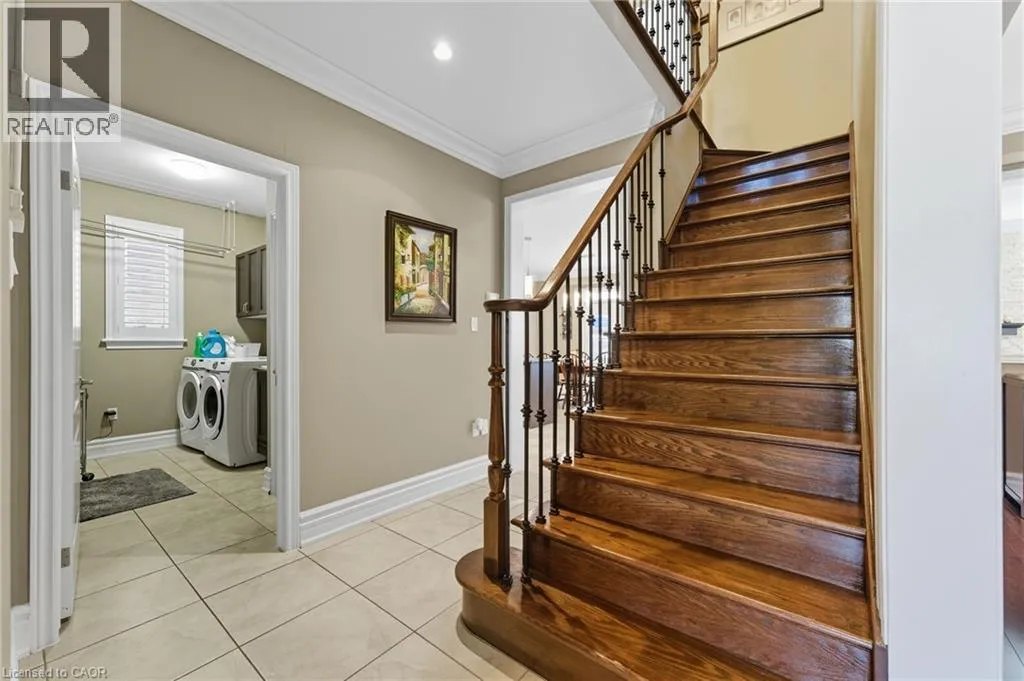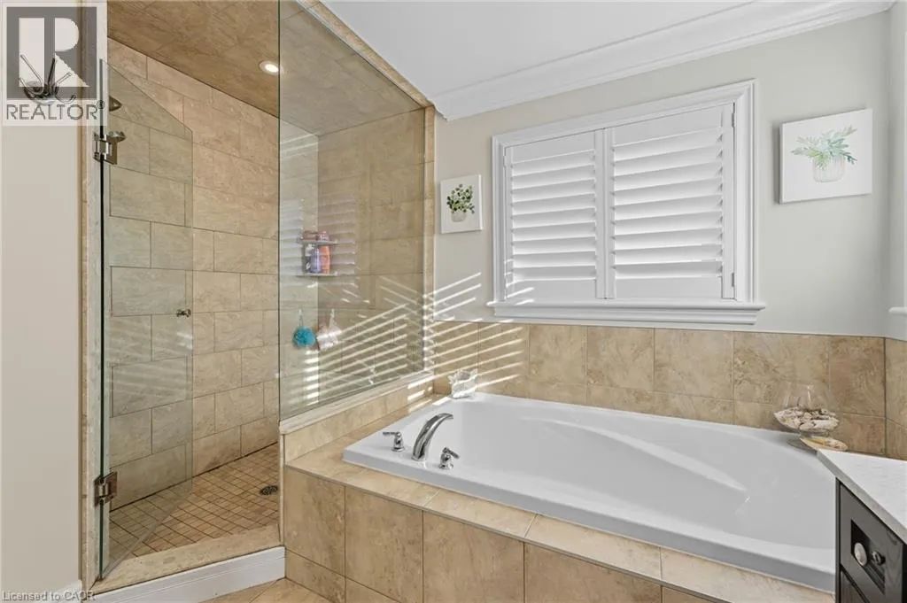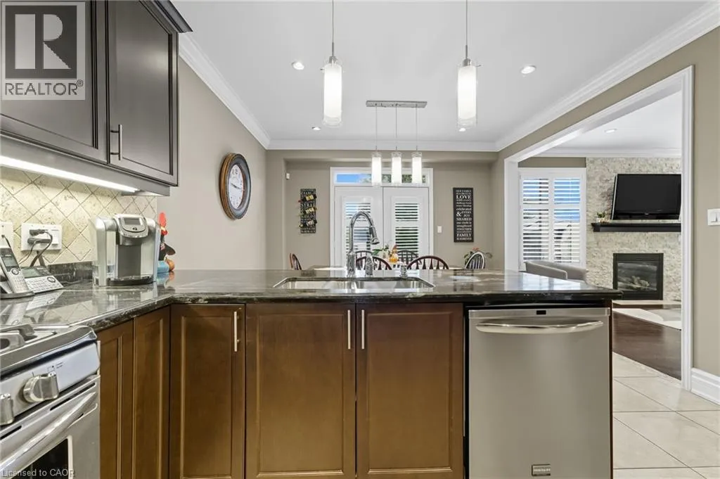 Head South on Garth St, turn right on Rymal Rd W, turn left on Hazelton Ave, turn left on Alessio Dr, turn left on Morning Mist Stunning home in the desirable EdenPark development by Spallacci Homes. Welcome to this beautifully maintained 4 bdrm family home located in the highly sought after EdenPark community. Situated just minutes from parks, shopping, schools and with quick access to the Linc, this home offers the perfect blend of convenience and comfort. Step inside and be greeted by an elegant main floor featuring rich hardwood flooring, crown molding, and an open concept design that flows seamlessly into the family room. The spacious kitchen boasts luxurious granite counter tops, sleek SS appliances, and is perfectly positioned to overlook the cozy family room complete with a gas fp. The abundance of pot lights throughout the space adds to the welcoming atmosphere. Upstairs, you'll find 4 generously sized bedrooms, all featuring plush carpet, providing comfort and space for the entire family. The upper hallway also showcases hardwood flooring, adding to the home's sophisticated appeal. In the fully finished basement you'll find a spacious rec-room with a striking feature wall, an elec. fireplace, and a wet bar with a wine fridge, making it the perfect spot for family movie nights or entertaining friends. A bright 3pc bathroom with a glass shower completes the lower level. Outside the professionally landscaped yard is an absolute showstopper, featuring an aggregate driveway and walkways, as well as a beautiful backyard patio with a hot tub, ideal for relaxing after a long day. This home has been meticulously cared for by the original owners, ensuring it's in pristine condition. Don't miss the chance to make this stunning property your forever home. (id:27476)