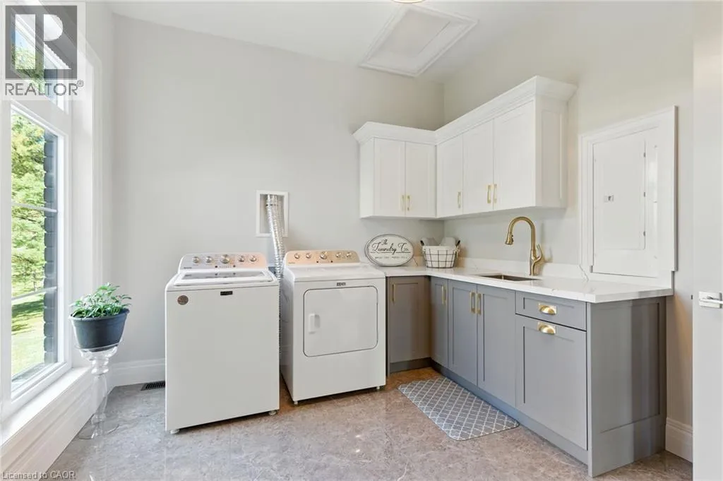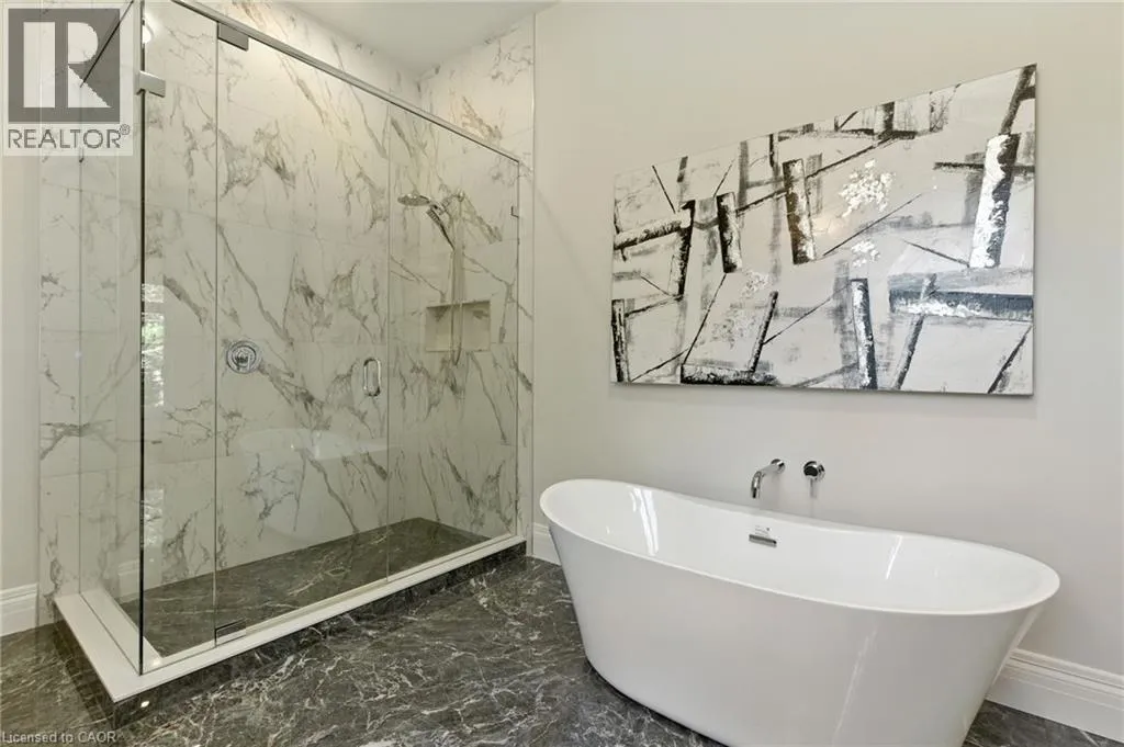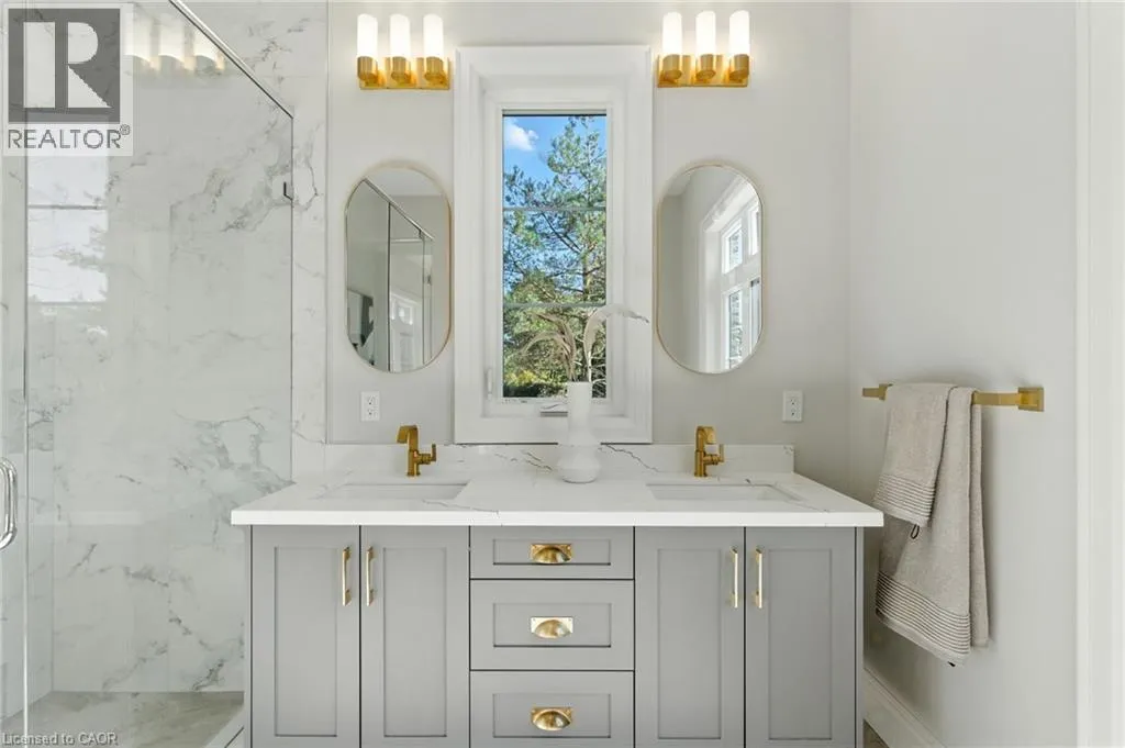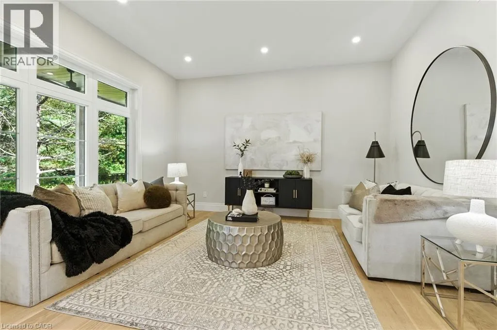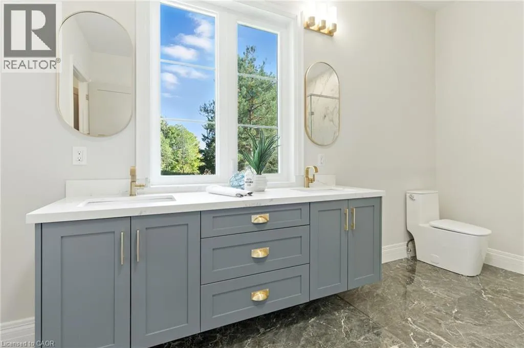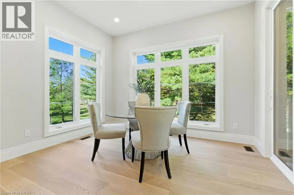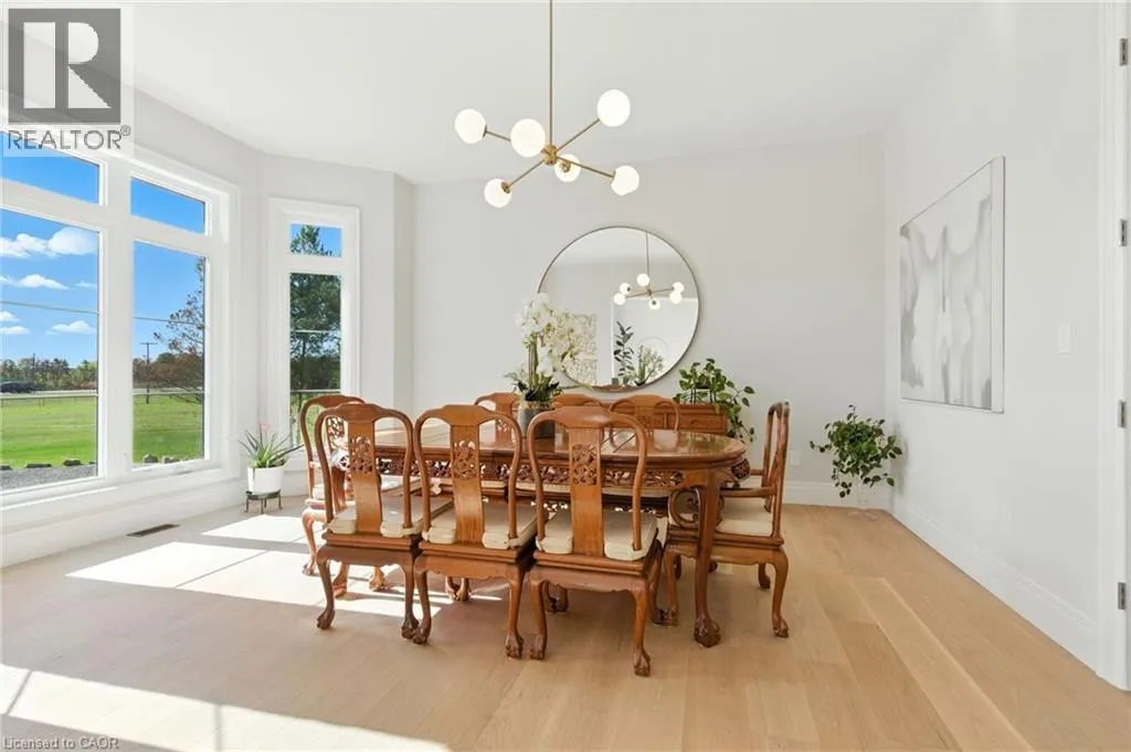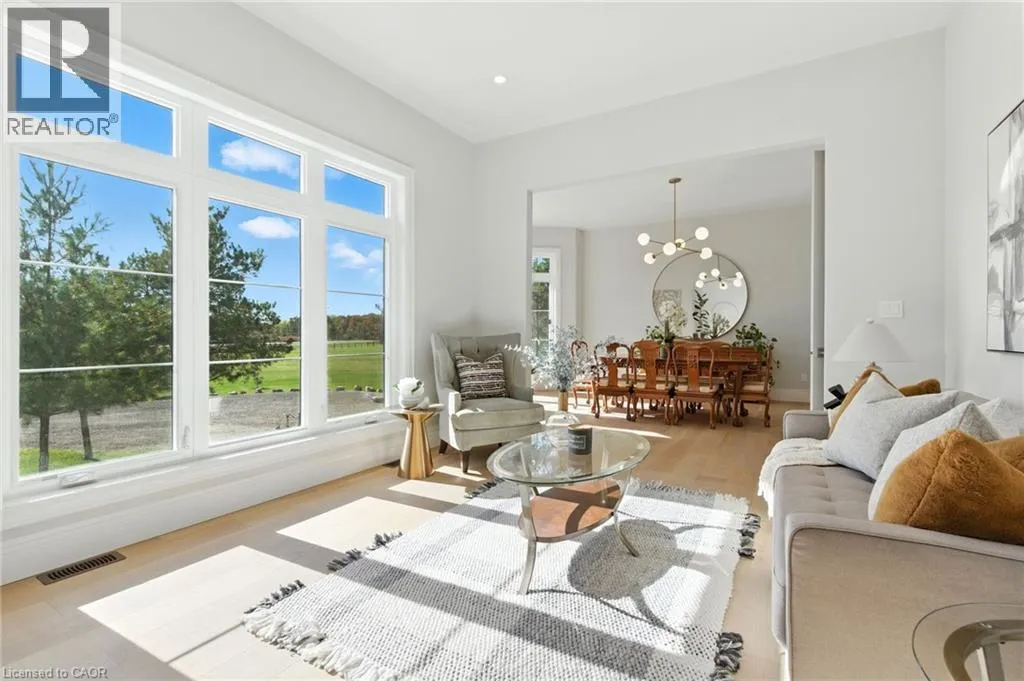 Highway 8 and 5th Concession Experience unparalleled luxury in this stunning newly built home, offering over 5,500 sq. ft. of refined livingâ2,767 sq. ft. on each levelâsurrounded by a serene forest. The open-concept design features soaring 10-foot ceilings and expansive windows that fill every room with natural light. The gourmet kitchen includes a secondary prep room, ideal for entertaining with ease. Four of the six bedrooms boast private ensuites, while the fully finished lower level mirrors the upper floor in layout and design, essentially creating a second, fully independent home complete with a full in-law suite and separate entrance. A 3-car garage with extra-high ceilings completes this exceptional modern retreat. Located between Rockton and Sheffield. Luxury Certified. (id:27476)