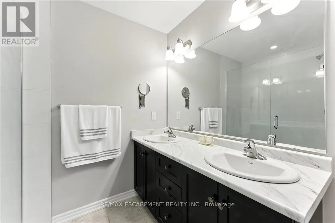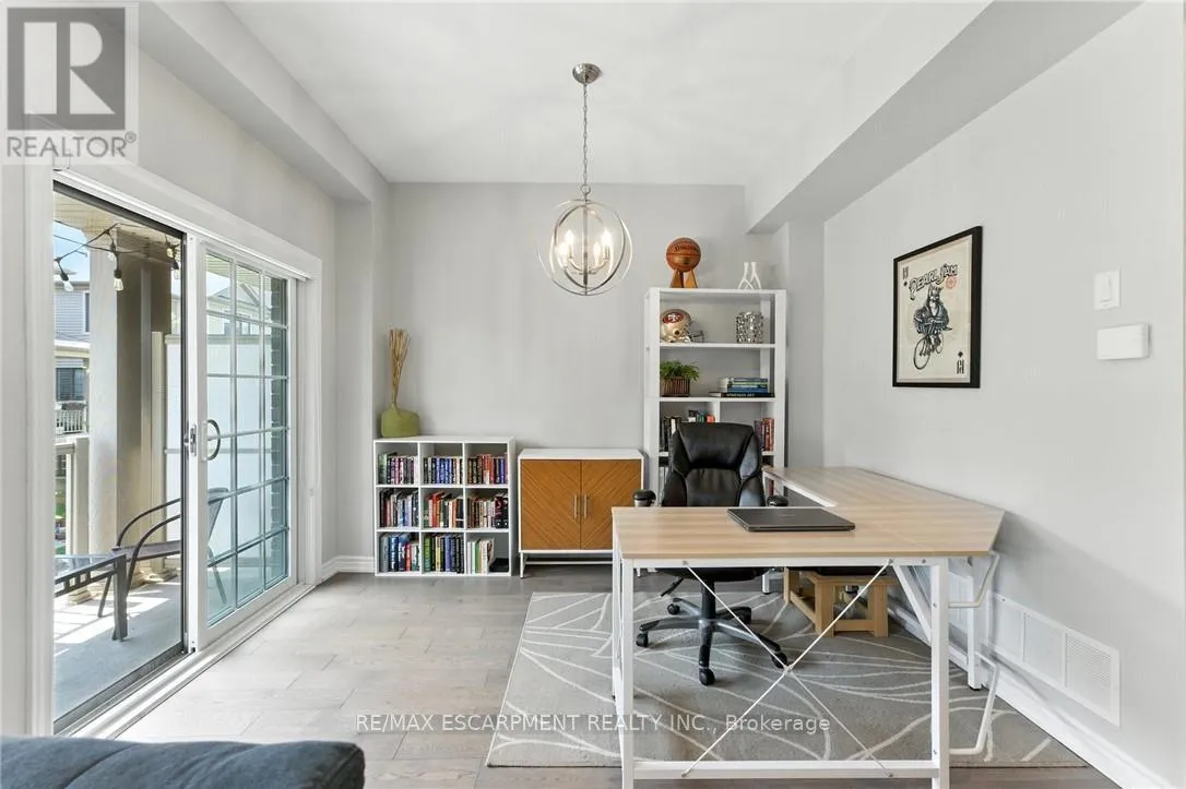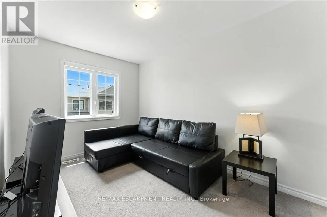 Cross Streets: Glancaster. ** Directions: Garner Road to Glancaster. Welcome to this bright and spacious 2-bedroom, 2-bathroom townhome nestled in a quiet and desirable Ancaster neighbourhood. Designed with both comfort and functionality in mind, this home wont disappoint! The main floor features a versatile multi purpose den, perfect for a home office, workout area, or cozy retreat, along with a large closet for ample storage. Upstairs, discover a stunning open-concept living space bathed in natural light from expansive windows and patio doors leading to a Juliet balcony. Entertain with ease in the upgraded kitchen, complete with stainless steel appliances, quartz countertops, pot lights, a breakfast bar that comfortably seats four, and a seamless flow into the dining area. The living room is equally inviting, featuring wide-plank hardwood floors and brilliant natural light by day, transitioning to warm, ambient lighting at night. The third floor offers an upgraded primary bedroom with a generous walk-in closet and a large window that fills the space with light. A spacious second bedroom also features a walk-in closet, offering plenty of room for guests, family, or additional office space. Convenient bedroom-level laundry adds modern practicality, while the main bathroom impresses with a double vanity and a sleek glass-enclosed shower. Ideally located just minutes from the vibrant Meadowlands shopping and dining district, highway access, and scenic nature trails, ensuring the perfect balance of urban convenience and peaceful surroundings. (id:27476)