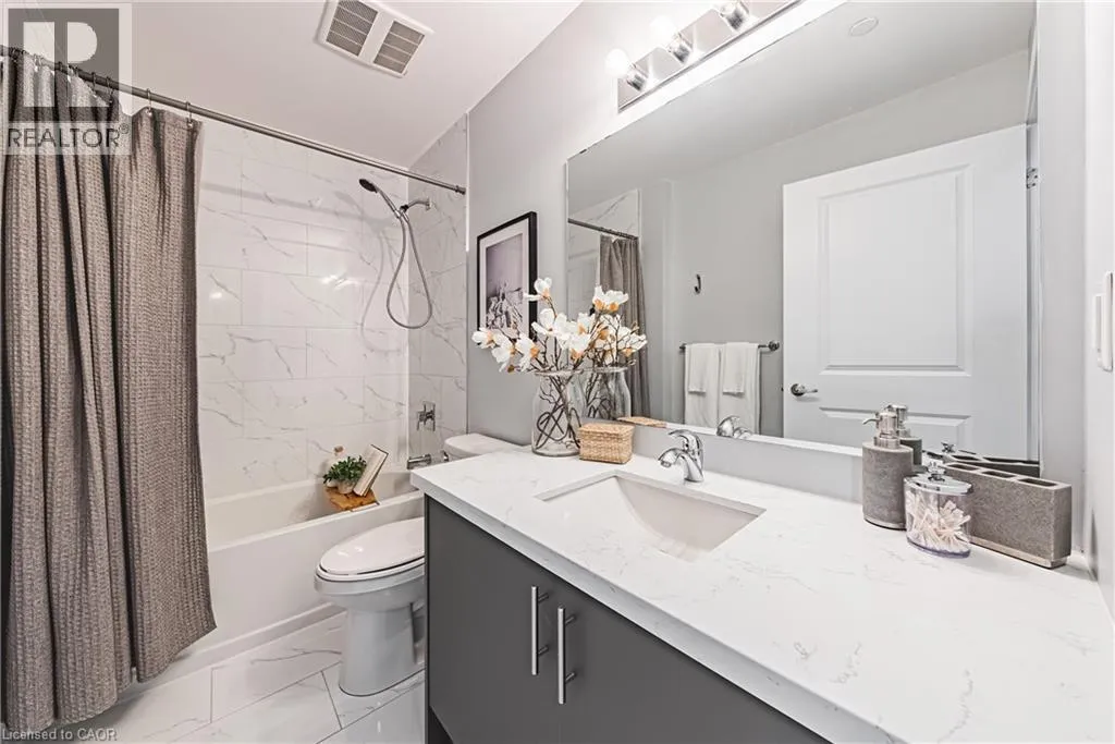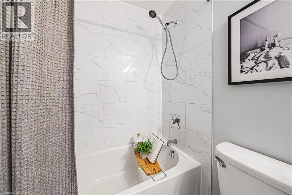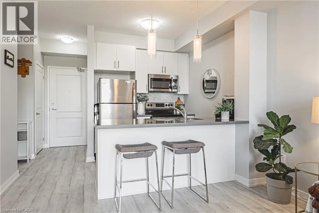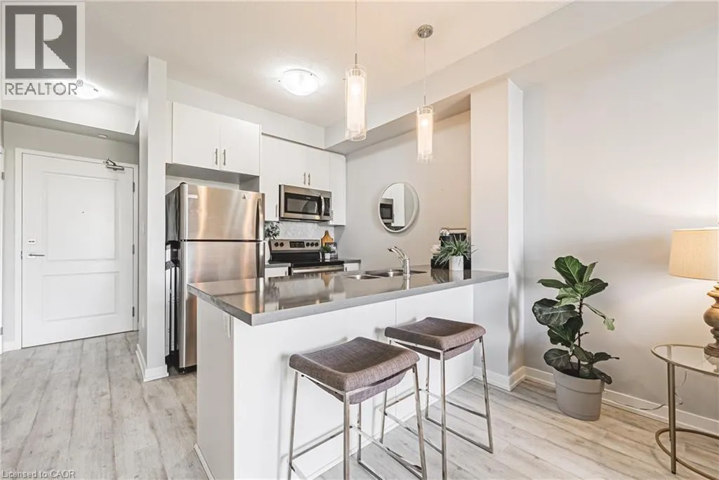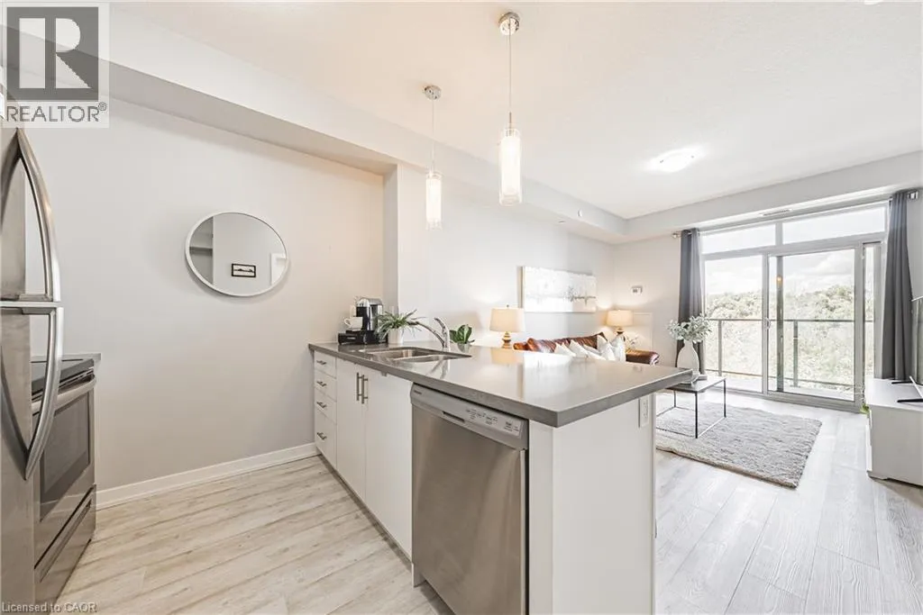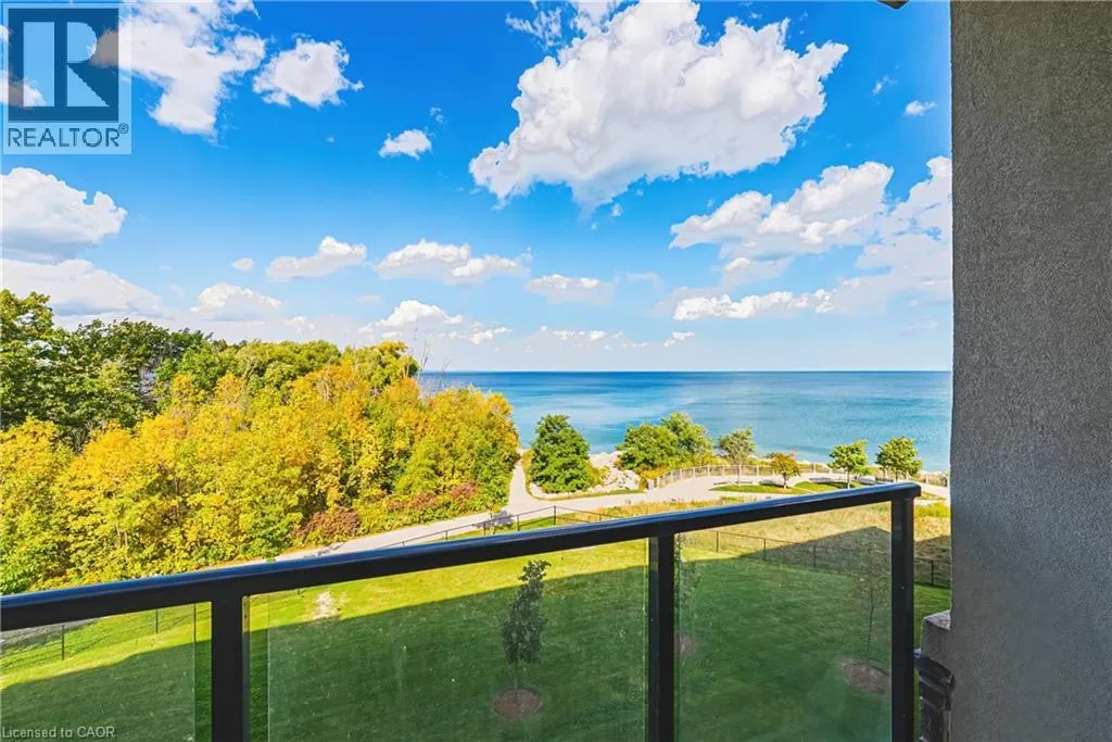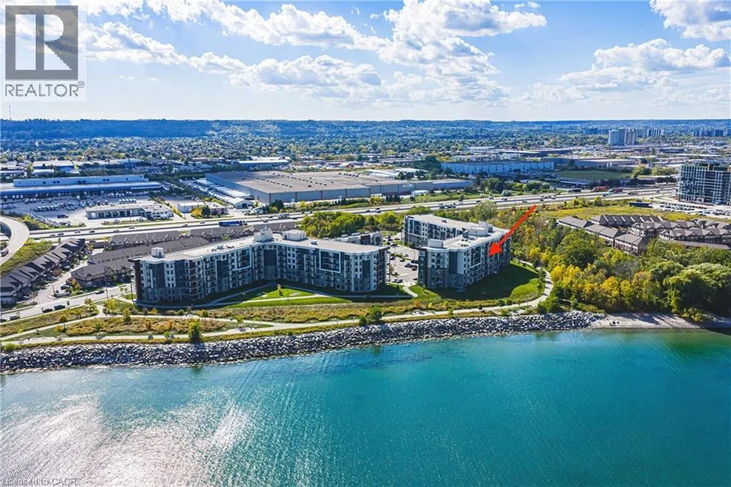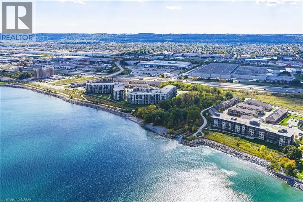 SHOREVIEW PLACE & MILLED ROAD This 1 Bed + Den condo offers a modern, open-concept layout with upgrades throughout and an unbeatable spot right along the water. Floor-to-ceiling windows let in tons of natural light and frame stunning views of Lake Ontario, whether you're in the kitchen, living room, or bedroom. The interior is sleek and stylish with a neutral colour scheme, oversized porcelain tile, 9' ceilings, and no carpet just clean, modern finishes like quartz counters, a chevron-tiled backsplash, soft-close cabinets, and stainless steel appliances. The kitchen also includes a large island, deep fridge cabinet, smooth-top stove, and Moen pull-down faucet a solid setup whether you cook a lot or just like the space to entertain. Thereâs a flexible den space too, perfect for working from home or hosting guests. Step out onto your private balcony to enjoy morning sunrises or an evening glass of wine with nothing but clear lake views ahead. This unit is part of the Sapphire Condos community, backing onto a waterfront trail and private beach that connects to the 8km Hamilton lakeside path ideal for biking, walking, or just getting outside. Amenities include a rooftop patio, gym, party room, secure bike storage, underground parking, and in-suite laundry. Heating and cooling are via energy-efficient geothermal. You're minutes from the QEW, LINC, and the new GO station for easy commuting, and close to local wineries, restaurants, and shopping when you want to unwind. If you're looking for easy, modern living right on the water, this is it! (id:27476)