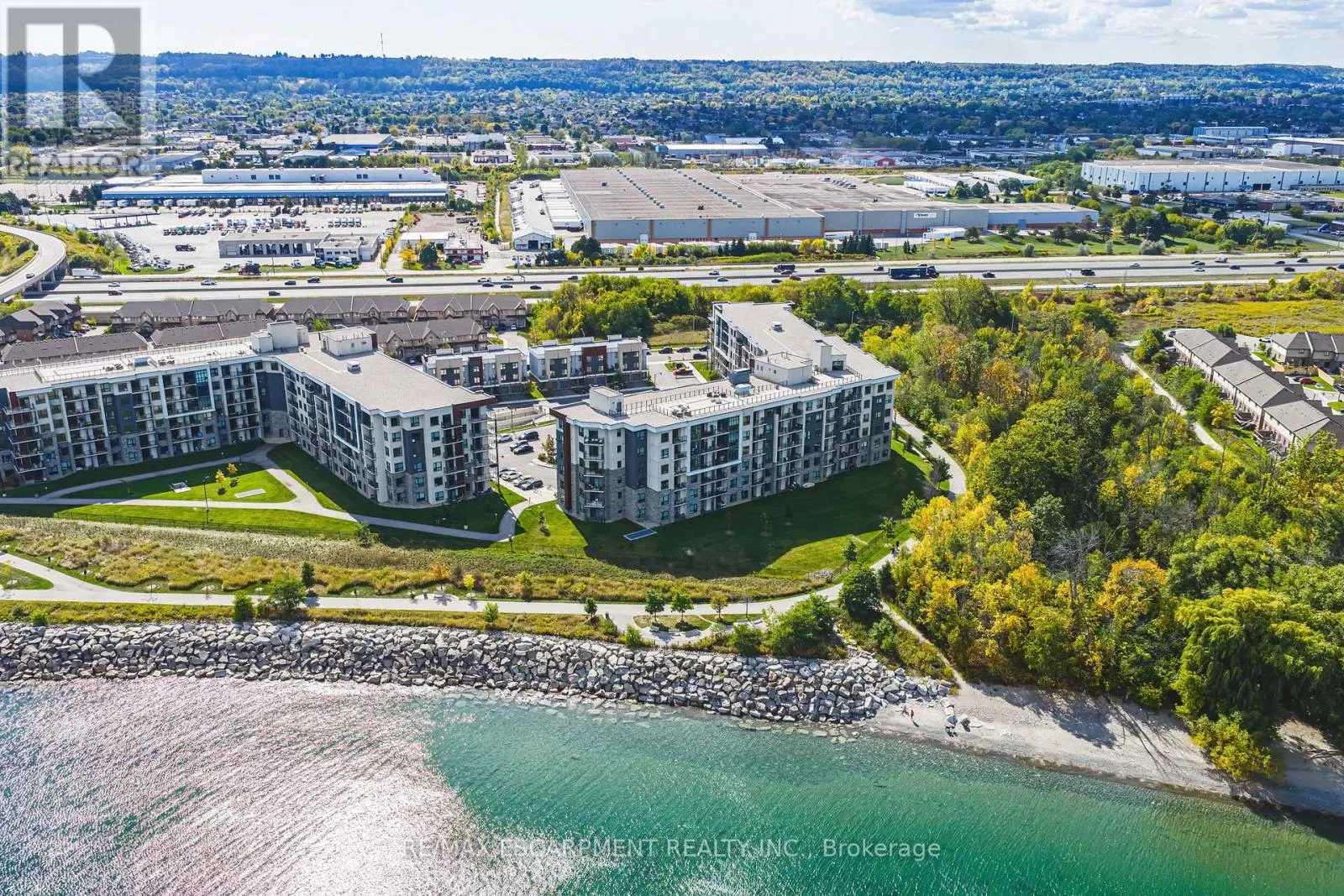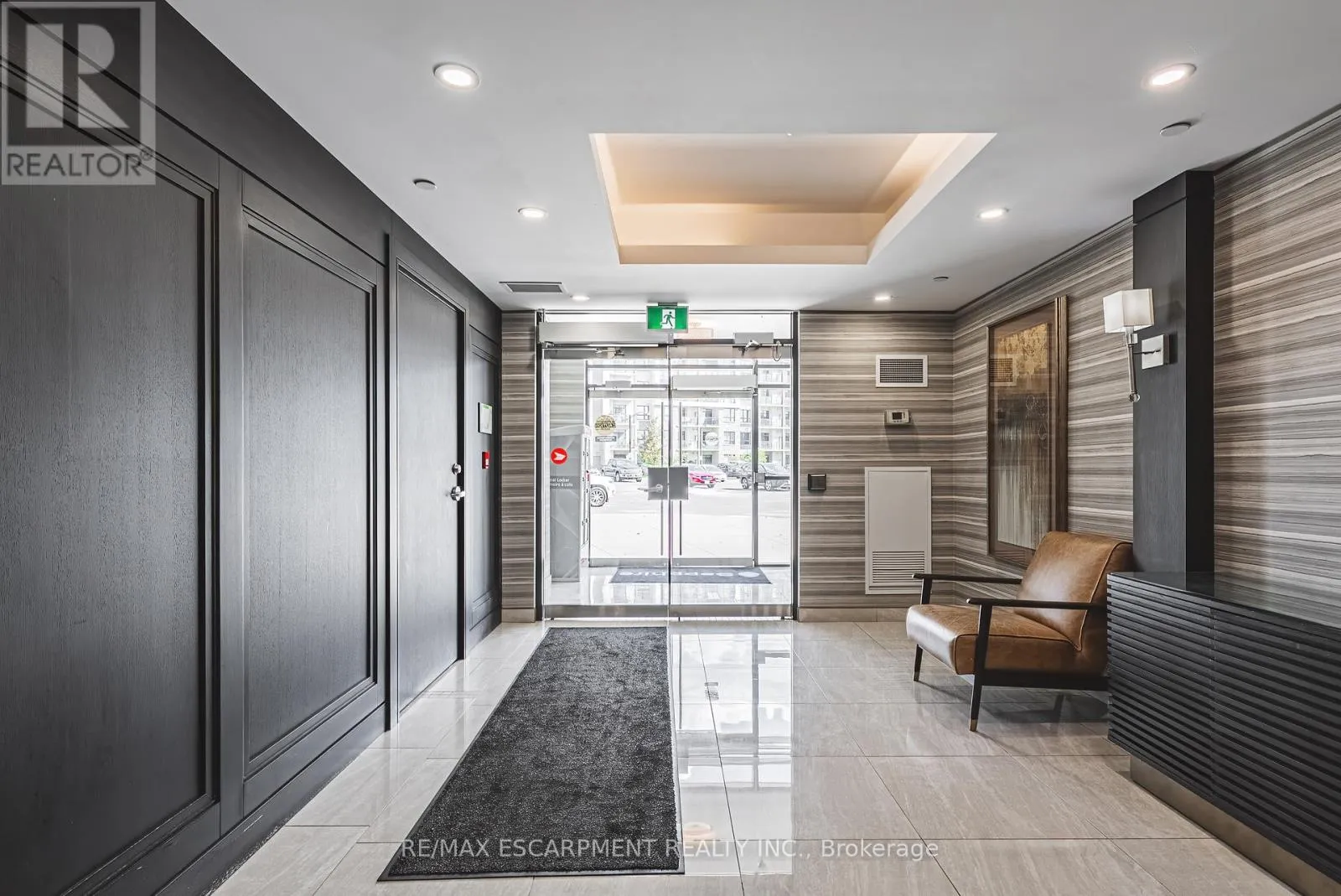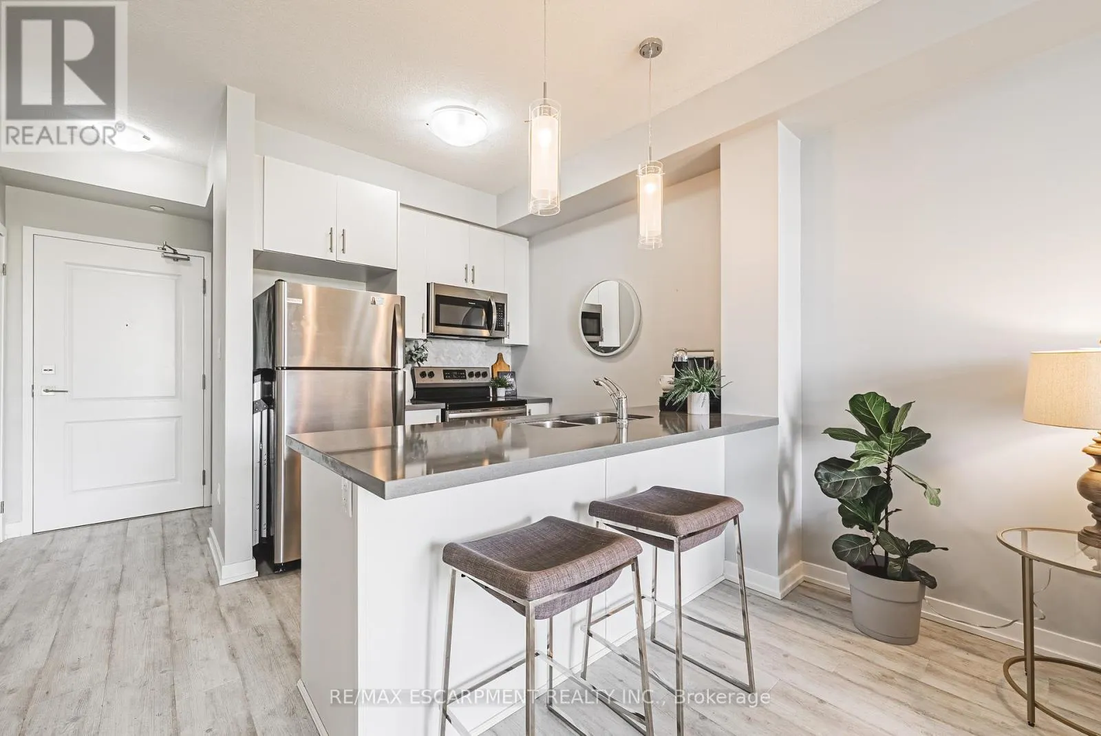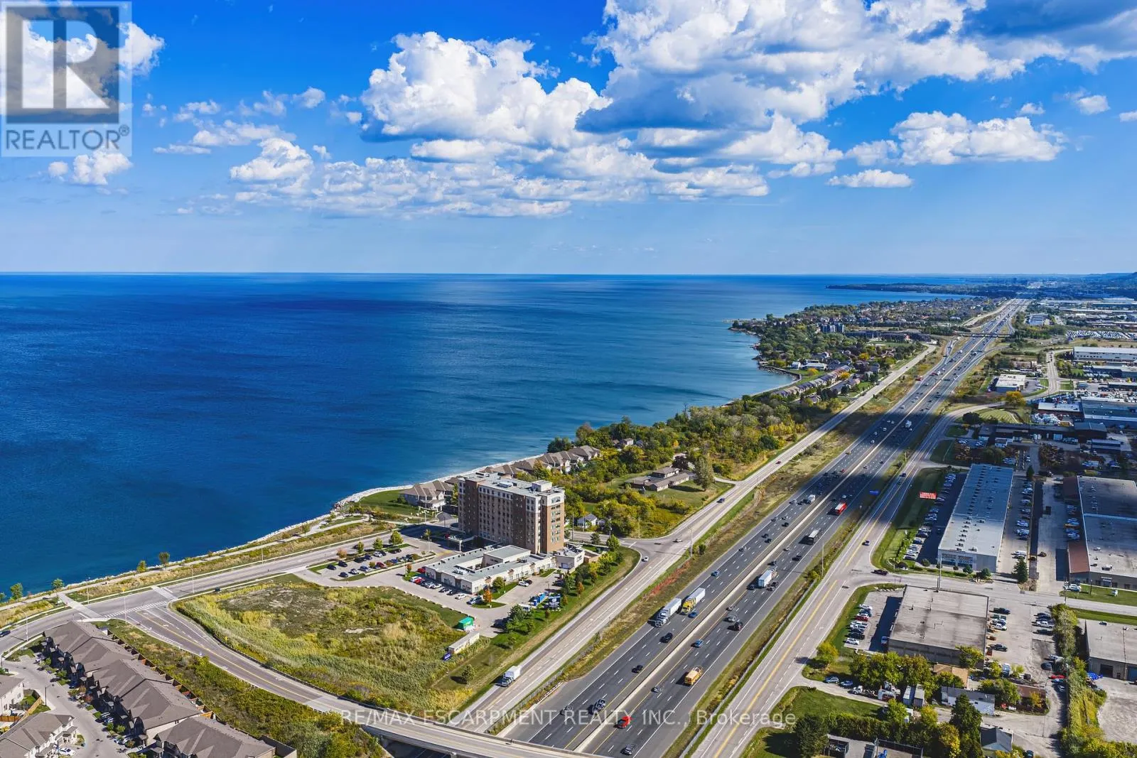 Cross Streets: Millen Road. ** Directions: SHOREVIEW PLACE & MILLED ROAD. This 1 Bed + Den condo offers a modern, open-concept layout with upgrades throughout and an unbeatable spot right along the water. Floor-to-ceiling windows let in tons of natural light and frame stunning views of Lake Ontario, whether you're in the kitchen, living room, or bedroom. The interior is sleek and stylish with a neutral colour scheme, oversized porcelain tile, 9' ceilings, and no carpet just clean, modern finishes like quartz counters, a chevron-tiled backsplash, soft-close cabinets, and stainless steel appliances. The kitchen also includes a large island, deep fridge cabinet, smooth-top stove, and Moen pull-down faucet a solid setup whether you cook a lot or just like the space to entertain. Theres a flexible den space too, perfect for working from home or hosting guests. Step out onto your private balcony to enjoy morning sunrises or an evening glass of wine with nothing but clear lake views ahead. This unit is part of the Sapphire Condos community, backing onto a waterfront trail and private beach that connects to the 8km Hamilton lakeside path ideal for biking, walking, or just getting outside. Amenities include a rooftop patio, gym, party room, secure bike storage, underground parking, and in-suite laundry. Heating and cooling are via energy-efficient geothermal. You're minutes from the QEW, LINC, and the new GO station for easy commuting, and close to local wineries, restaurants, and shopping when you want to unwind. If you're looking for easy, modern living right on the water, this is it! (id:27476)