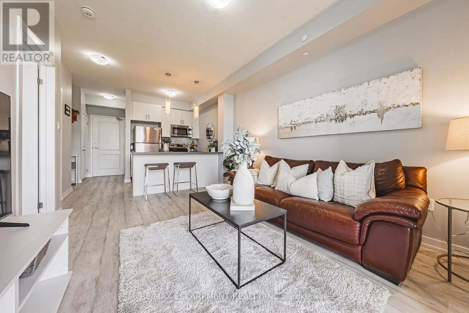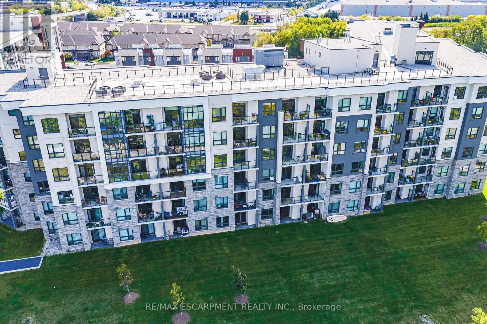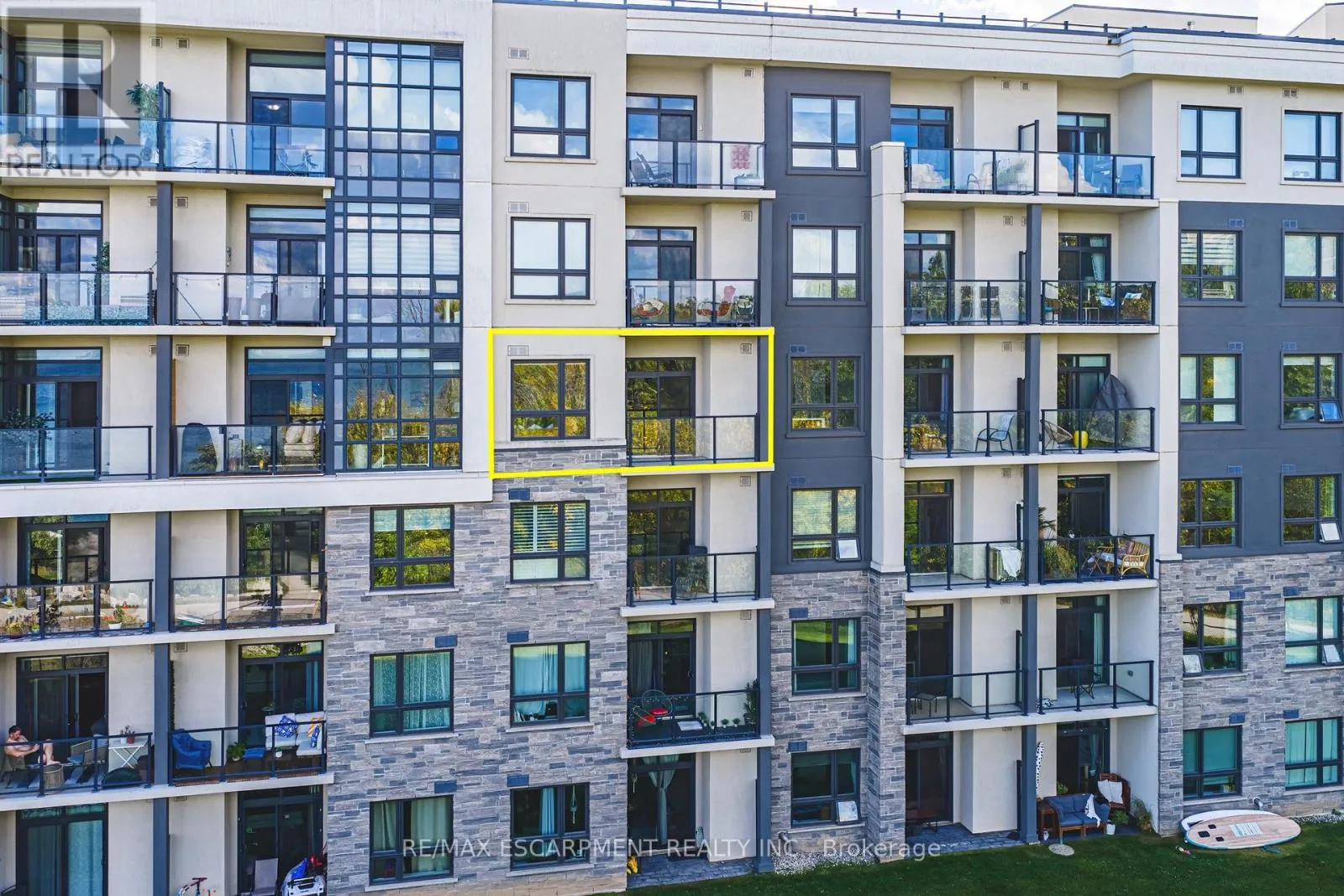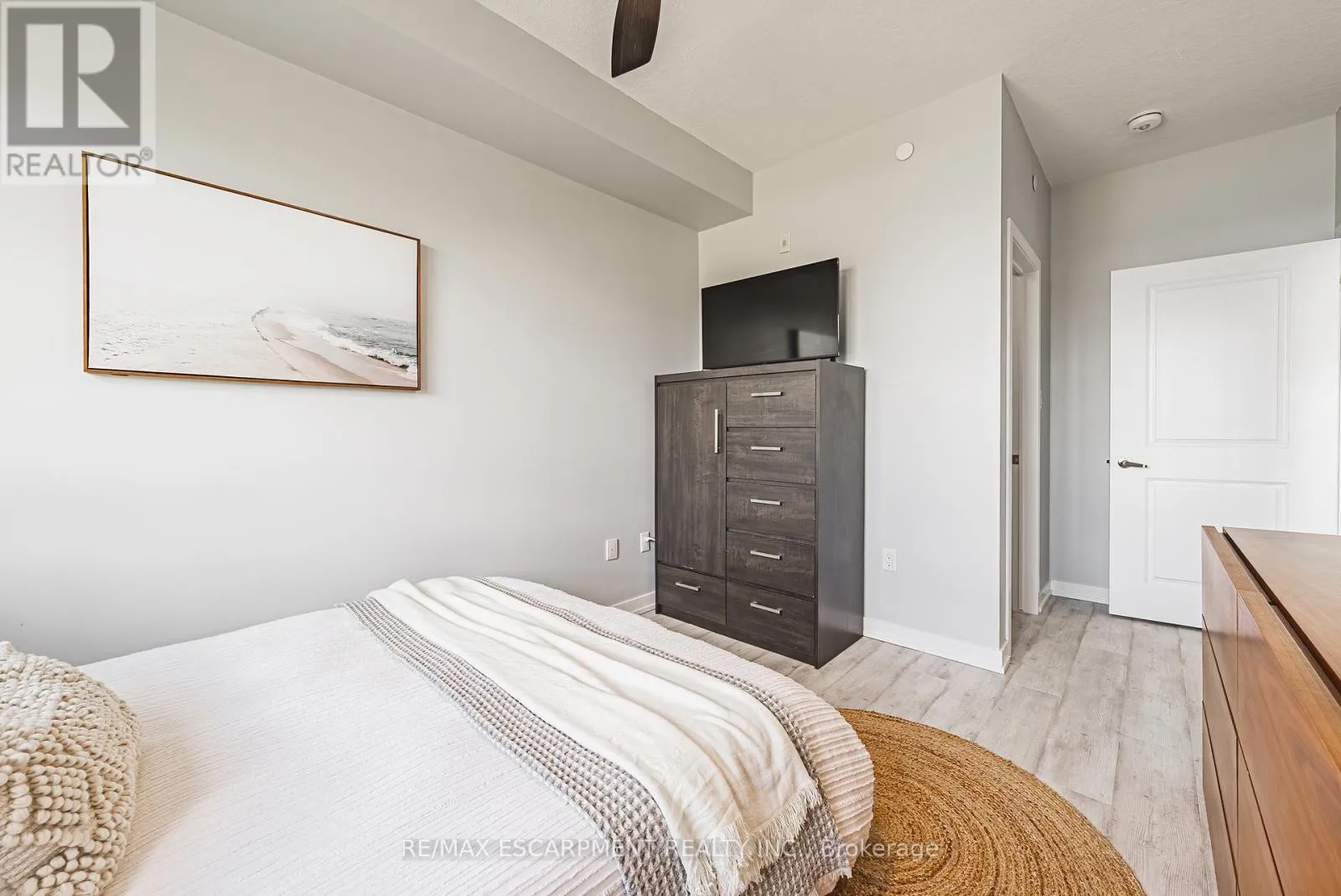 Cross Streets: Millen Road. ** Directions: SHOREVIEW PLACE & MILLED ROAD. This 1 Bed + Den condo offers a modern, open-concept layout with upgrades throughout and an unbeatable spot right along the water. Floor-to-ceiling windows let in tons of natural light and frame stunning views of Lake Ontario, whether you're in the kitchen, living room, or bedroom. The interior is sleek and stylish with a neutral colour scheme, oversized porcelain tile, 9' ceilings, and no carpet just clean, modern finishes like quartz counters, a chevron-tiled backsplash, soft-close cabinets, and stainless steel appliances. The kitchen also includes a large island, deep fridge cabinet, smooth-top stove, and Moen pull-down faucet a solid setup whether you cook a lot or just like the space to entertain. Theres a flexible den space too, perfect for working from home or hosting guests. Step out onto your private balcony to enjoy morning sunrises or an evening glass of wine with nothing but clear lake views ahead. This unit is part of the Sapphire Condos community, backing onto a waterfront trail and private beach that connects to the 8km Hamilton lakeside path ideal for biking, walking, or just getting outside. Amenities include a rooftop patio, gym, party room, secure bike storage, underground parking, and in-suite laundry. Heating and cooling are via energy-efficient geothermal. You're minutes from the QEW, LINC, and the new GO station for easy commuting, and close to local wineries, restaurants, and shopping when you want to unwind. If you're looking for easy, modern living right on the water, this is it! (id:27476)