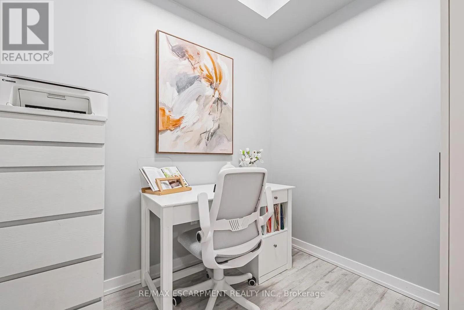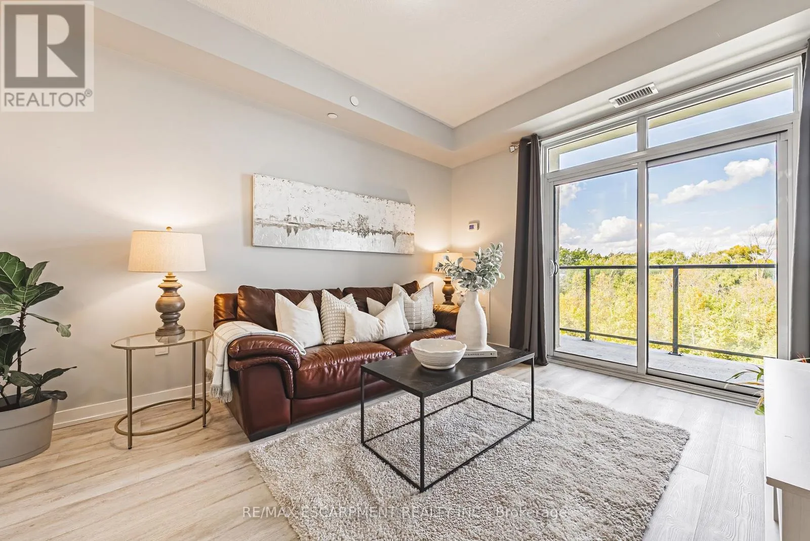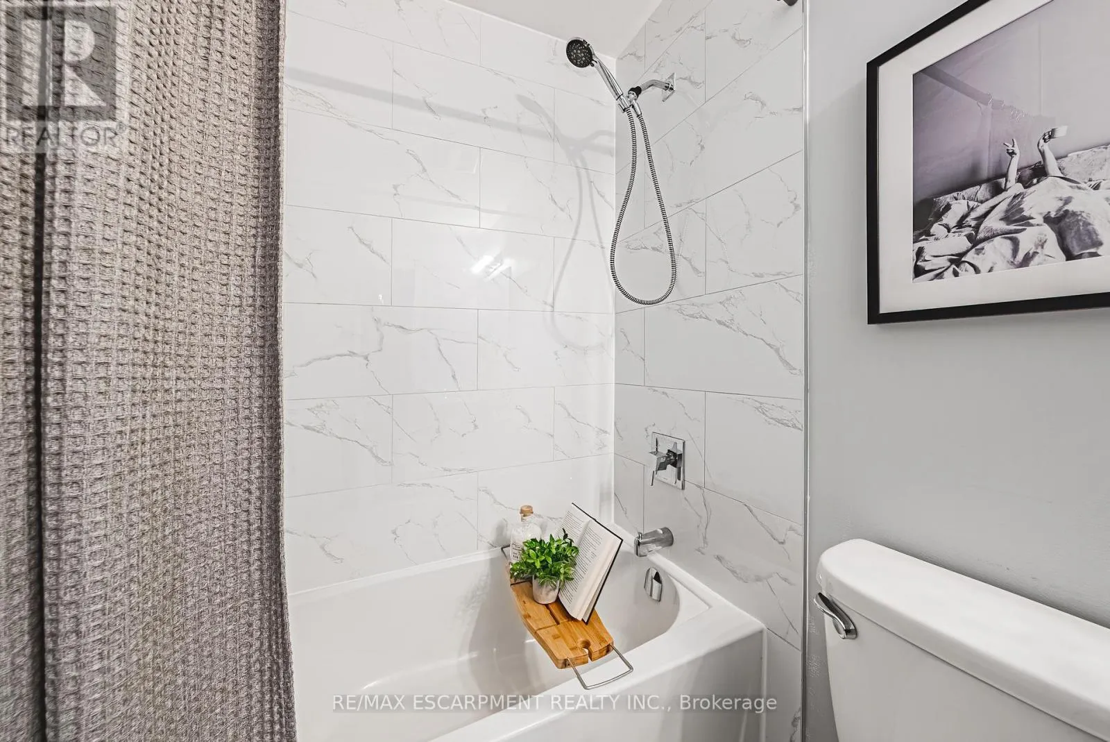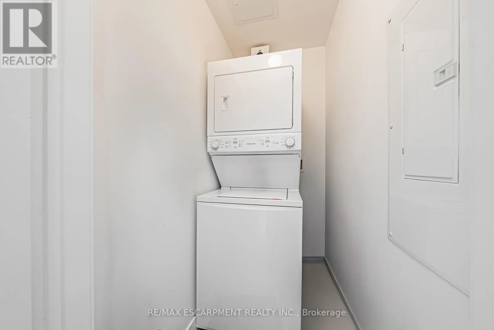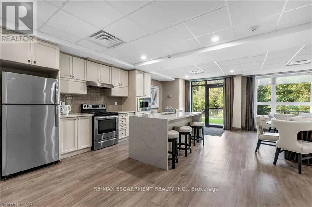 Cross Streets: Millen Road. ** Directions: SHOREVIEW PLACE & MILLED ROAD. This 1 Bed + Den condo offers a modern, open-concept layout with upgrades throughout and an unbeatable spot right along the water. Floor-to-ceiling windows let in tons of natural light and frame stunning views of Lake Ontario, whether you're in the kitchen, living room, or bedroom. The interior is sleek and stylish with a neutral colour scheme, oversized porcelain tile, 9' ceilings, and no carpet just clean, modern finishes like quartz counters, a chevron-tiled backsplash, soft-close cabinets, and stainless steel appliances. The kitchen also includes a large island, deep fridge cabinet, smooth-top stove, and Moen pull-down faucet a solid setup whether you cook a lot or just like the space to entertain. Theres a flexible den space too, perfect for working from home or hosting guests. Step out onto your private balcony to enjoy morning sunrises or an evening glass of wine with nothing but clear lake views ahead. This unit is part of the Sapphire Condos community, backing onto a waterfront trail and private beach that connects to the 8km Hamilton lakeside path ideal for biking, walking, or just getting outside. Amenities include a rooftop patio, gym, party room, secure bike storage, underground parking, and in-suite laundry. Heating and cooling are via energy-efficient geothermal. You're minutes from the QEW, LINC, and the new GO station for easy commuting, and close to local wineries, restaurants, and shopping when you want to unwind. If you're looking for easy, modern living right on the water, this is it! (id:27476)