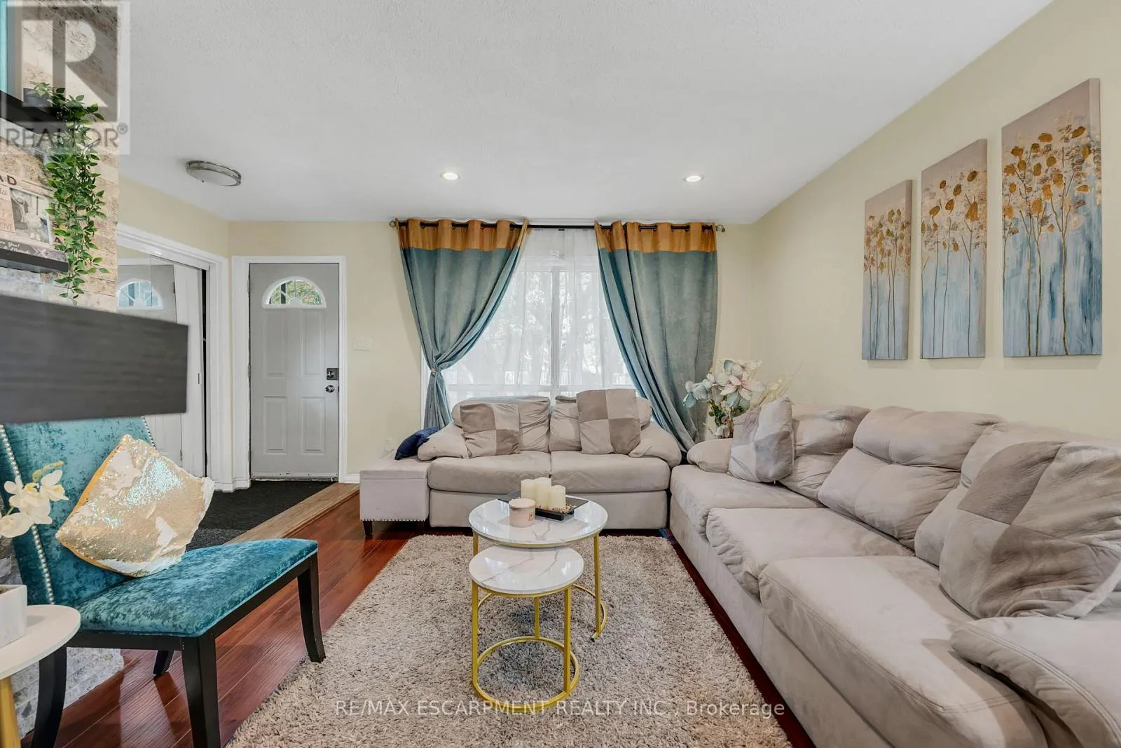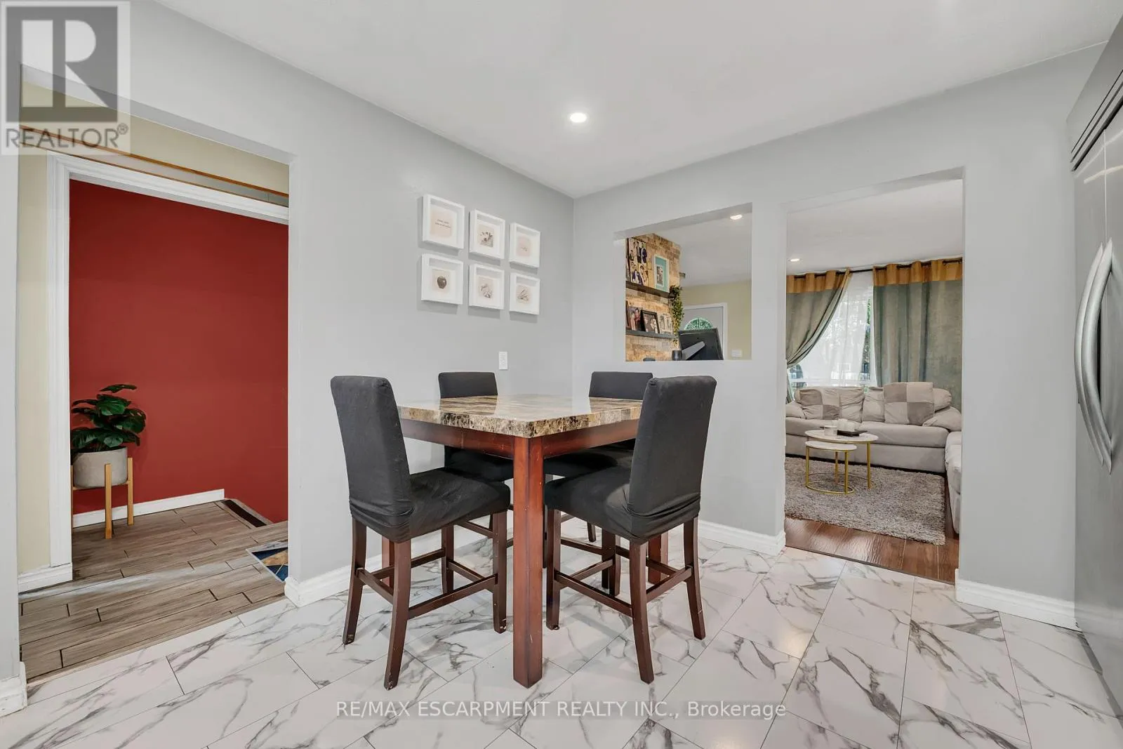 Cross Streets: Queenston Rd. ** Directions: Centennial Pkwy - Queenston Rd - Riverdale Rd. 2-Storey End Unit, 3 bedroom, 2 bathroom Townhome with a finished basement and no rear neighbors! This lovely home offers over 1300 square feet of finished living space featuring an updated kitchen, bathrooms, flooring, and a landscaped backyard patio. Condo fee's cover Roof, windows, doors, fence, cable TV, water, parking, visitor parking & common elements maintenance. Located in a well maintained quiet complex, steps away from the new Centennial Parkway GO Station, shopping malls, schools, parks, library & public transit. 15 minute drive to Burlington, 30 minutes to Mississauga. (id:27476)