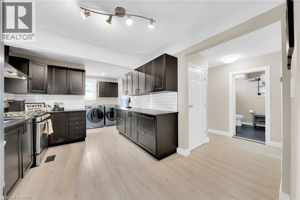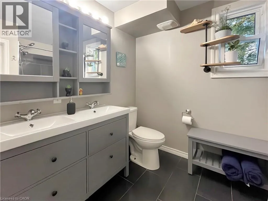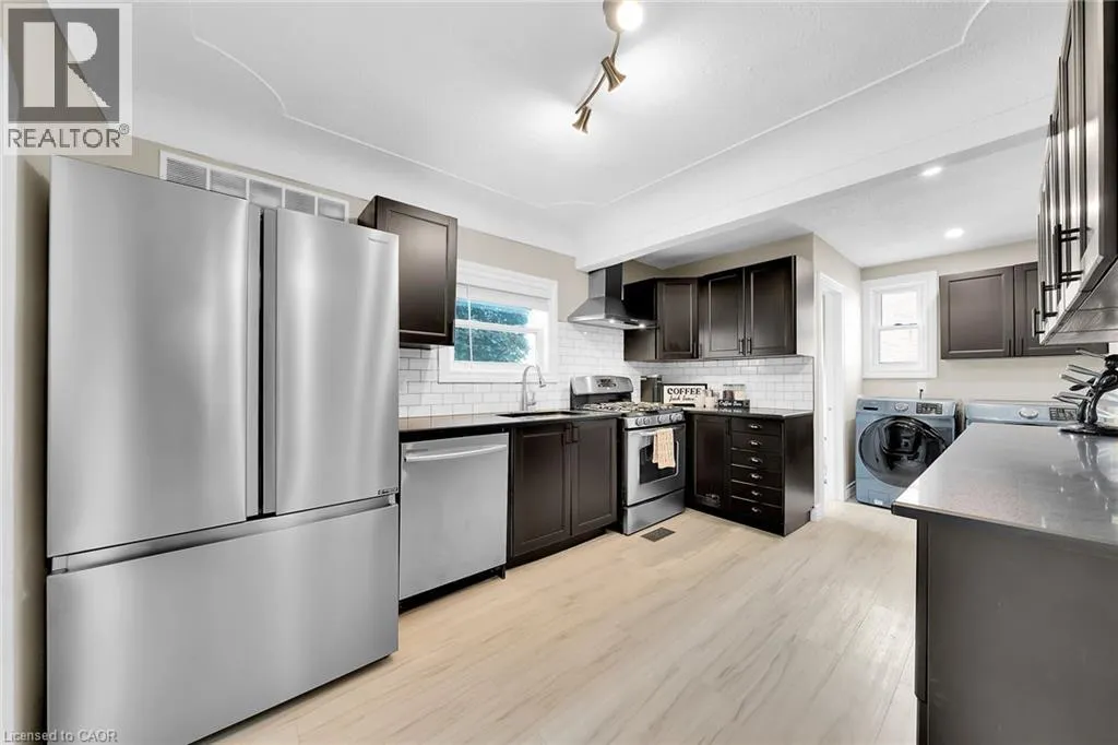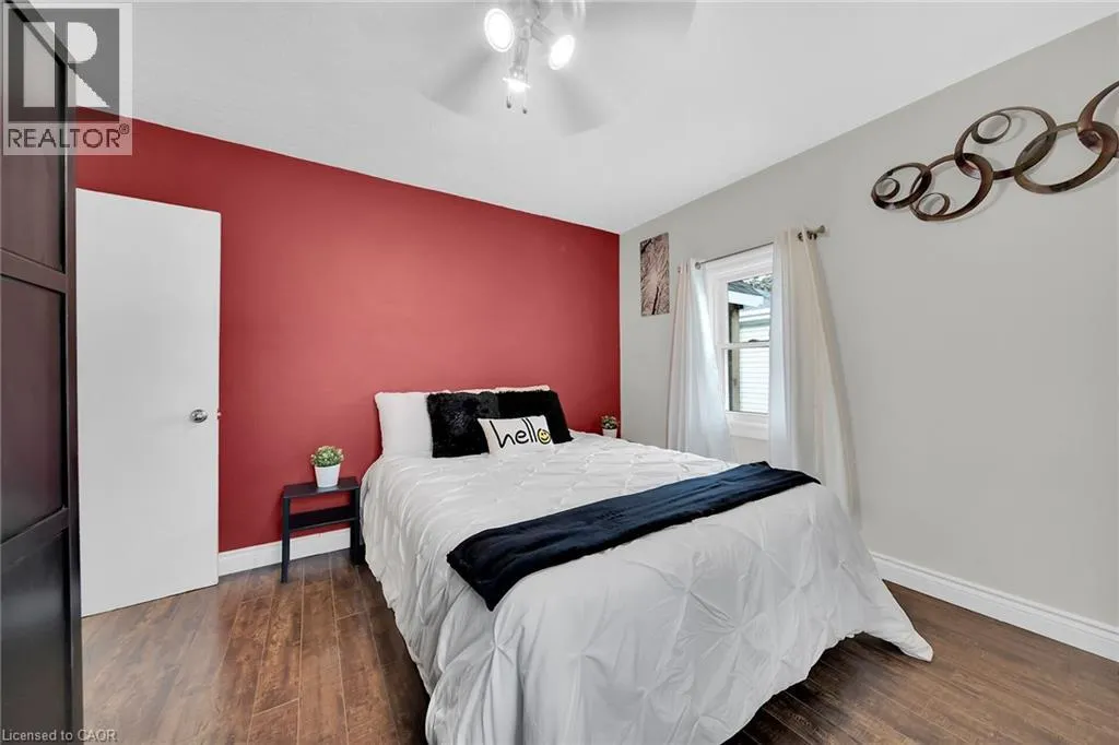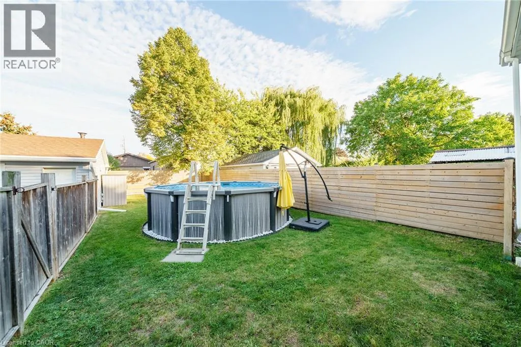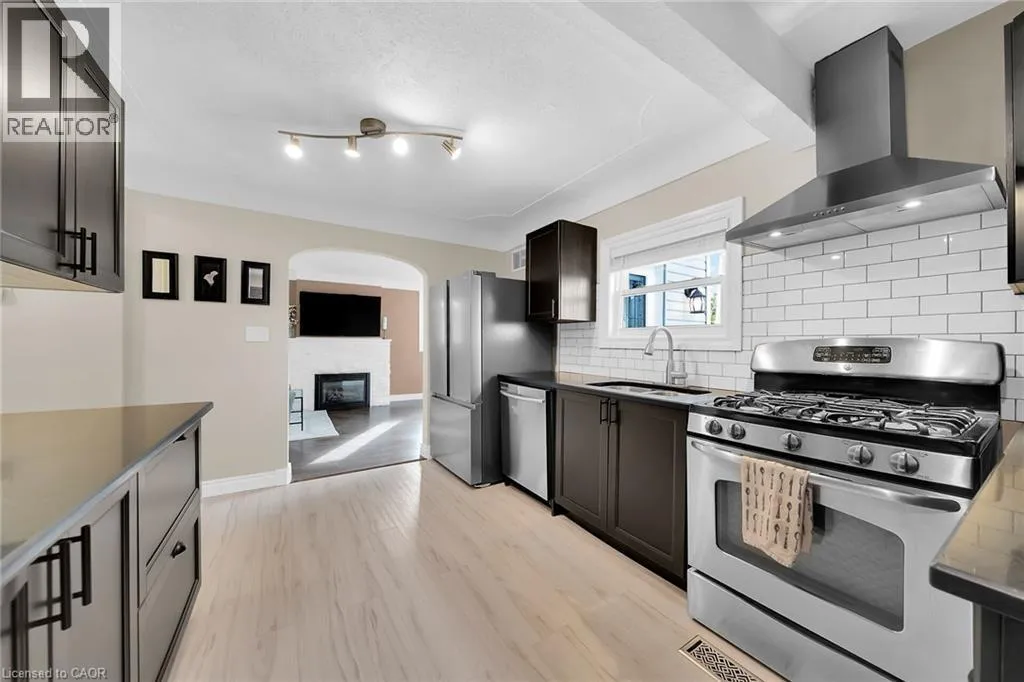 Redhill Valley Parkway, Exit East on Barton, South on Nash, West on Nugent, West on Ede, North on Pottruff Could this be your new home? Charming Detached 1.5 story, 4 bedroom & 3 bathrooms with a 2+ car Garage and parking for an additional 8+ cars. Located in the highly desirable mature Kentley community and situated on a secluded cul-de-sac with close proximity to highway access. On the main floor, the home has 2 bedrooms, a generous 5 pc bath with double sinks, updated large kitchen with a ton of cupboard and counter space, 2 pc powder room, living room/dining room & main floor laundry. Upstairs, relax and unwind in the sizeable, secluded Master Bedroom. The spacious basement has a 3rd bathroom with 4-pcs, a den, an oversized 4th bedroom and a storage area. With a separate side entrance, there is potential for a conversion to an in-law suite with rough-ins for additional washer/dryer. Sitting on a larger lot, 50 ft x 117 the backyard features a 15â above ground pool with heater. The 2+ car garage has its own furnace and workshop space. This home offers both comfort and convenience with endless possibilities. Just a short walk to Eastgate Square, grocery stores and the new Centennial go-train station. A commuters dream being close to the Redhill, Linc and QEW. (id:27476)