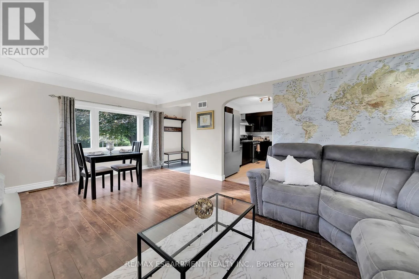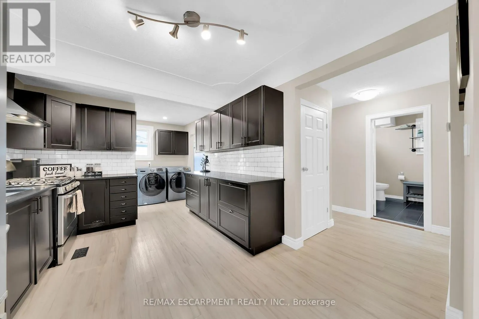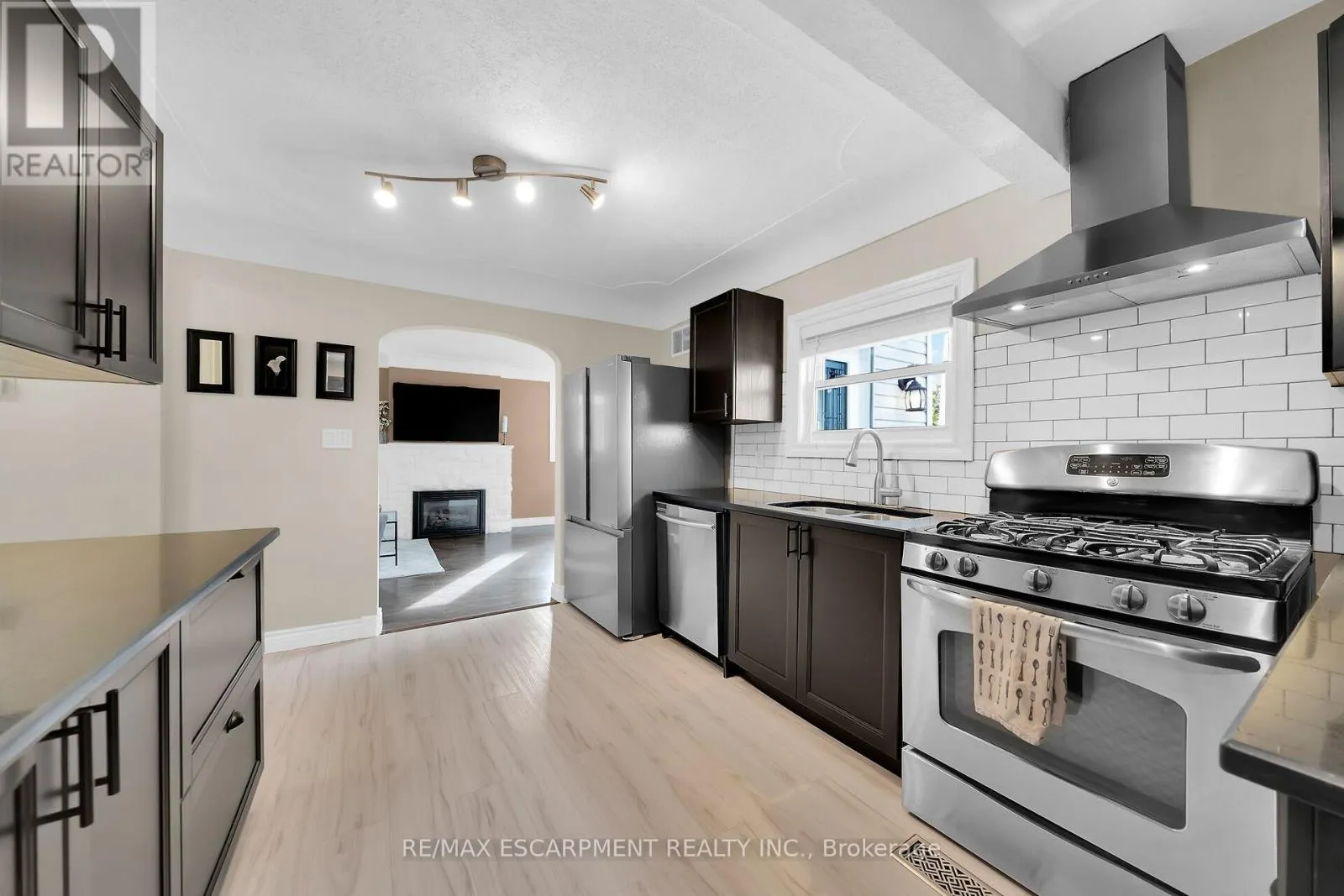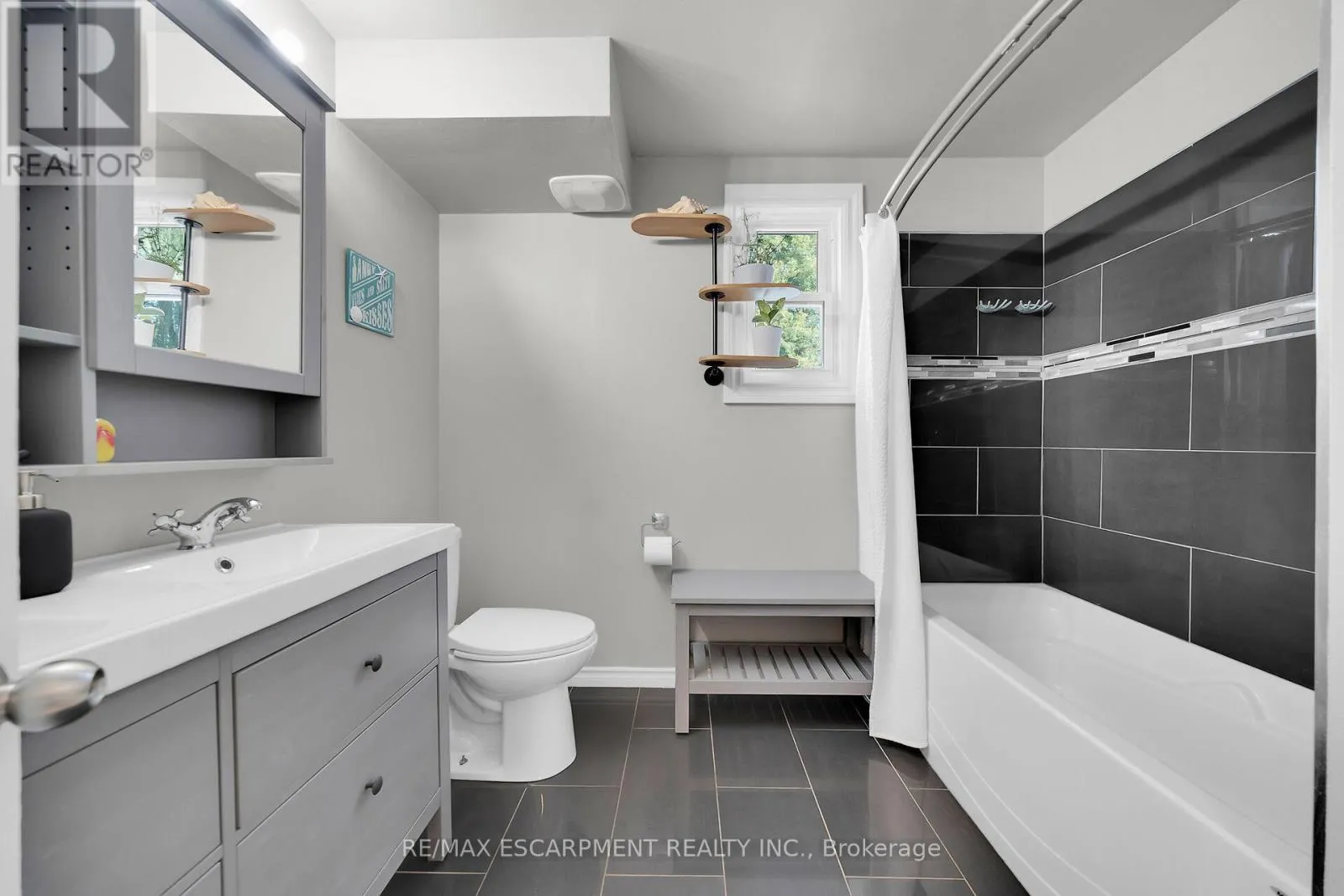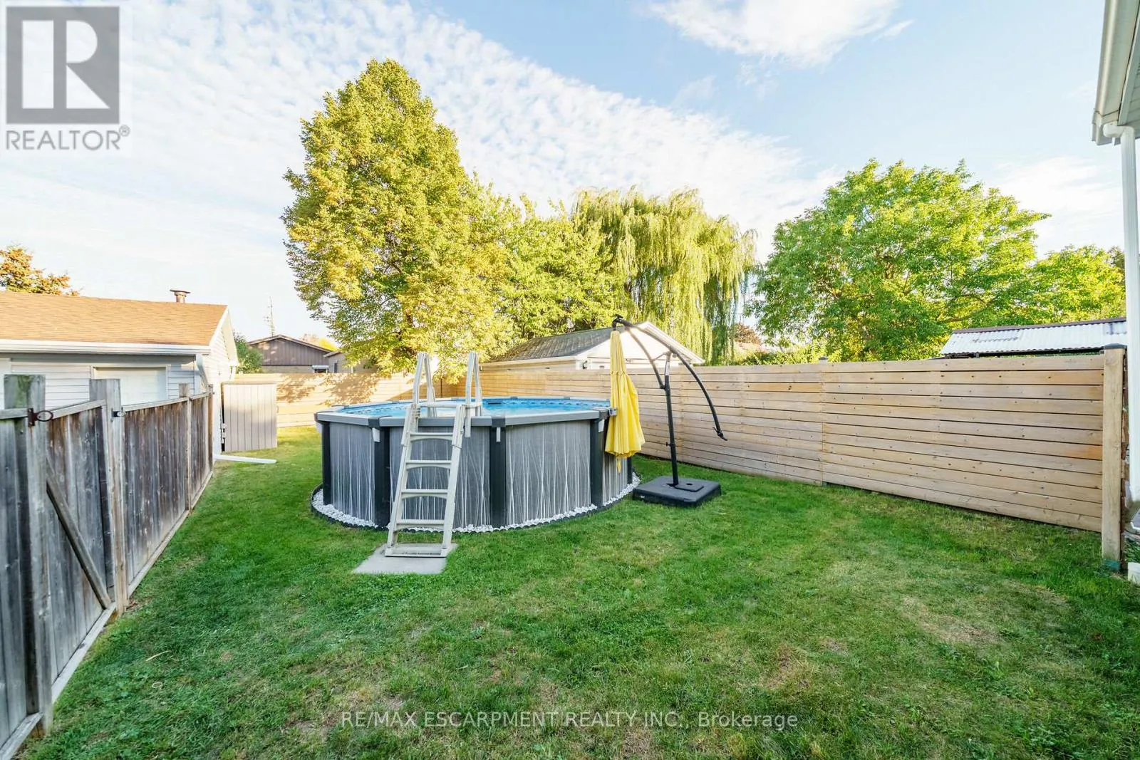 Cross Streets: Barton/Nash. ** Directions: Redhill Valley Parkway, exit East on Barton, South on Nash, West on Nugent, West on Ede, North on Pottruff. Could this be your new home? Charming Detached 1.5 story, 4 bedroom & 3 bathrooms with a 2+ car Garage and parking for an additional 8+ cars. Located in the highly desirable mature Kentley community and situated on a secluded cul-de-sac with close proximity to highway access. On the main floor, the home has 2 bedrooms, a generous 5 pc bath with double sinks, updated large kitchen with a ton of cupboard and counter space, 2 pc powder room, living room/dining room &main floor laundry. Upstairs, relax and unwind in the sizeable, secluded Master Bedroom. The spacious basement has a 3rd bathroom with 4-pcs, a den, an oversized 4th bedroom and a storage area. With a separate side entrance, there is potential for a conversion to an in-law suite with rough-ins for additional washer/dryer. Sitting on a larger lot, 50 ft x 117 the backyard features a 15 above ground pool with heater. The 2+ car garage has its own furnace and workshop space. This home offers both comfort and convenience with endless possibilities. Just a short walk to Eastgate Square, grocery stores and the new Centennial go-train station. A commuters dream being close to the Redhill, Linc and QEW. (id:27476)